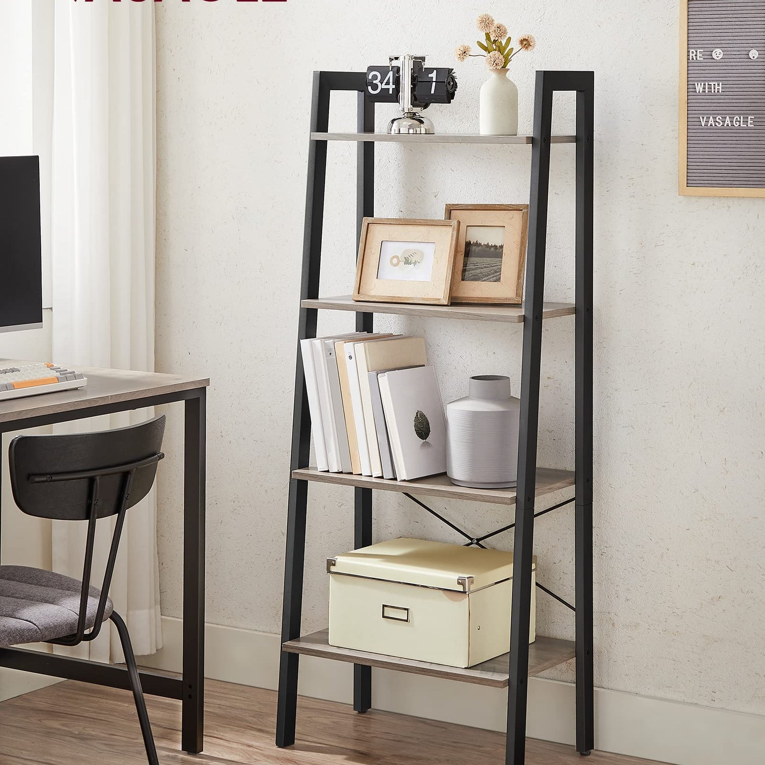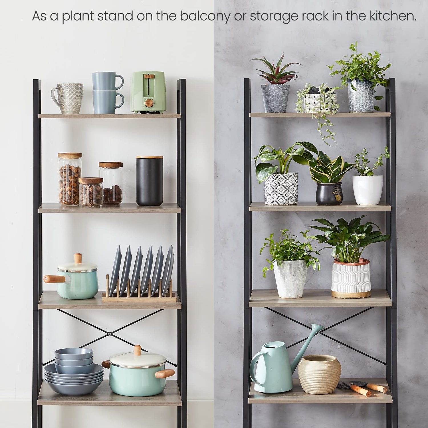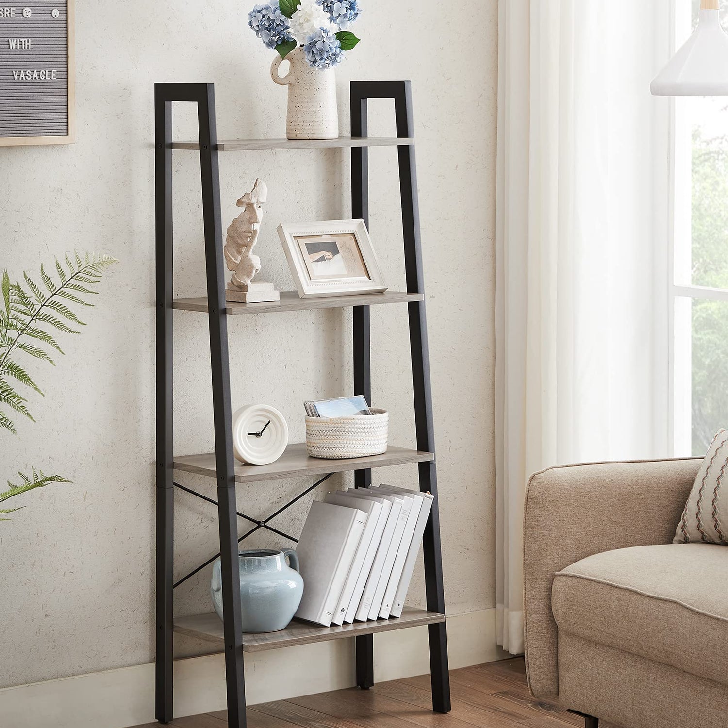 VASAGLE Ladder Shelf, 4-Tier Bookshelf, Storage Rack, Bookcase with Steel Frame, for Living Room, Home Office, Kitchen, Bedroom, Industrial Style, Greige and Black ULLS44MB