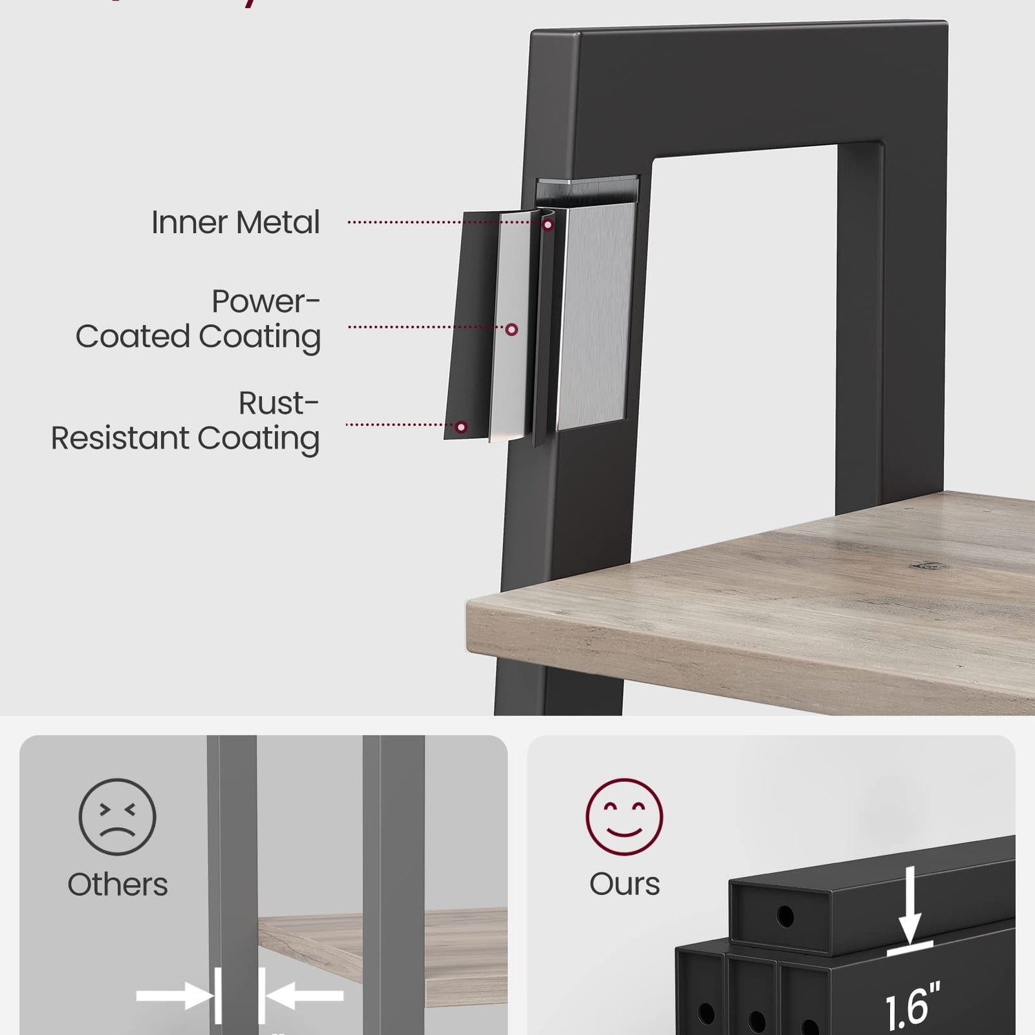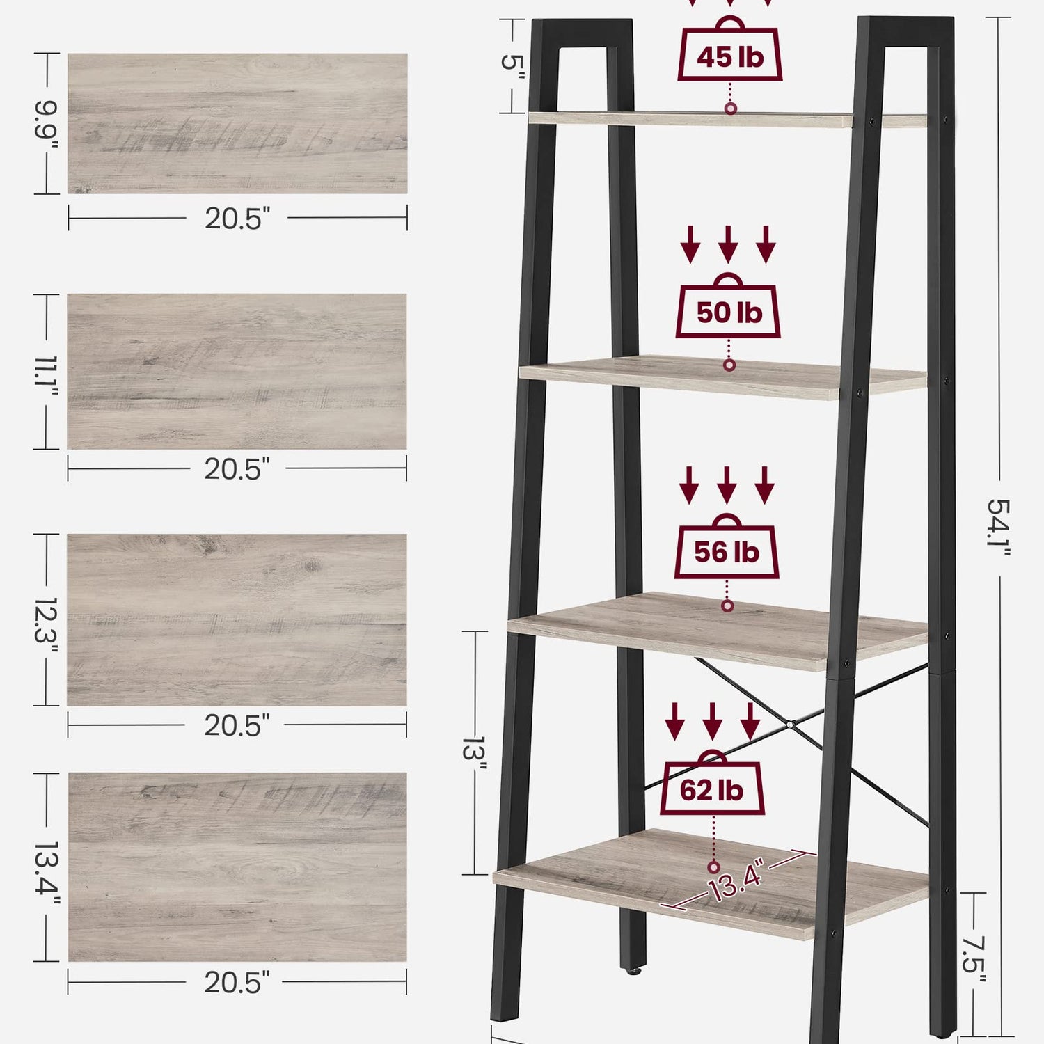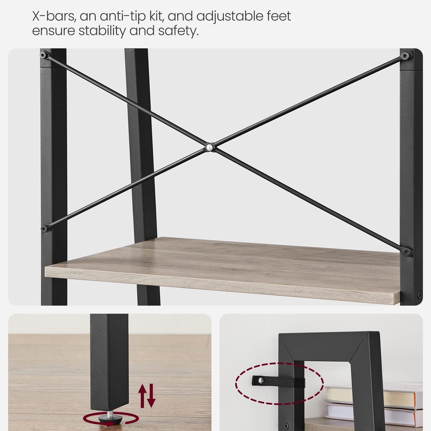 VASAGLE Ladder Shelf, 4-Tier Bookshelf, Storage Rack, Bookcase with Steel Frame, for Living Room, Home Office, Kitchen, Bedroom, Industrial Style, Greige and Black ULLS44MB