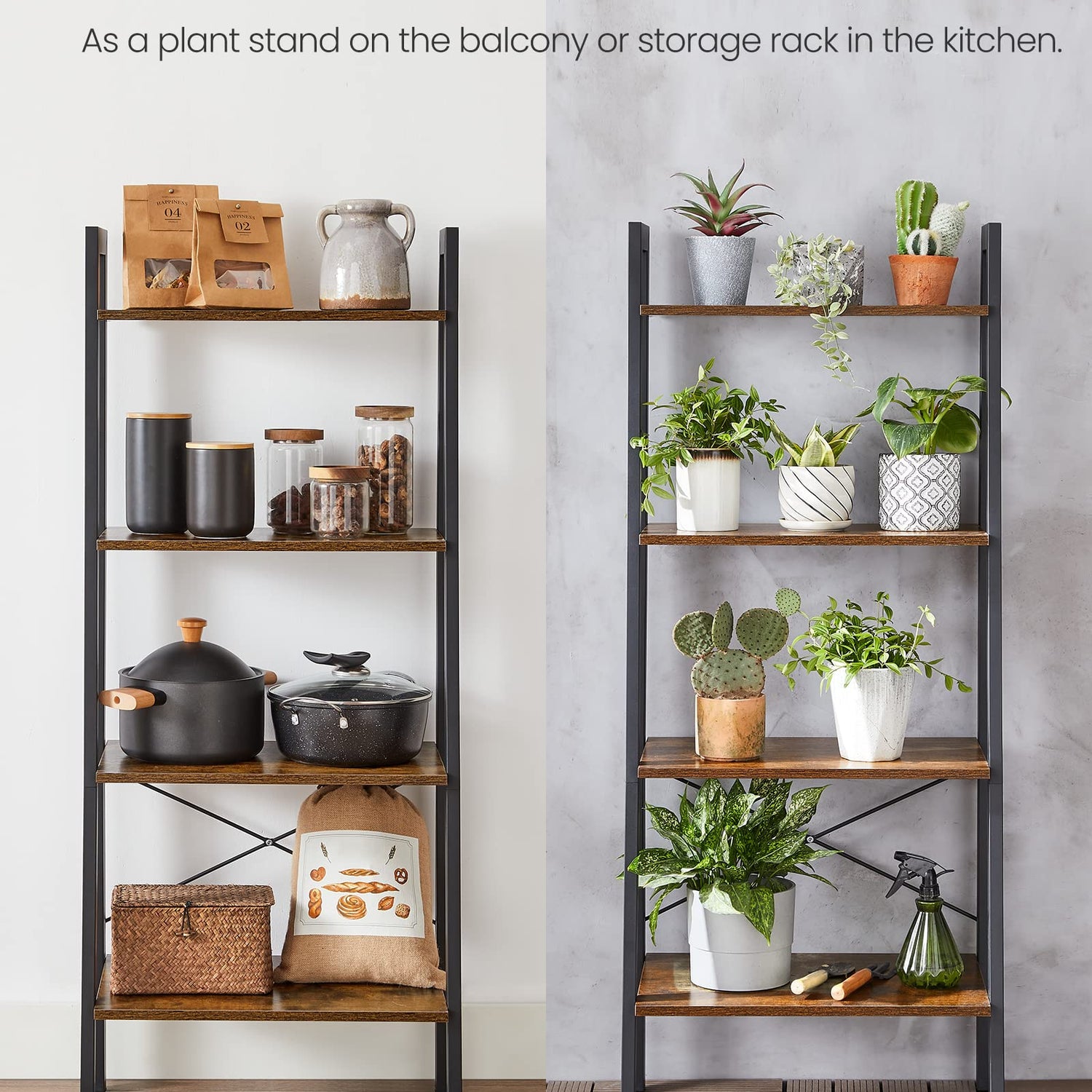 - [One Rack, Many Uses] Display trinkets in the living room, prop up plants on the balcony, store books in the home office, hold cooking utensils in the kitchen—this 4-tier storage rack fits all your purposes