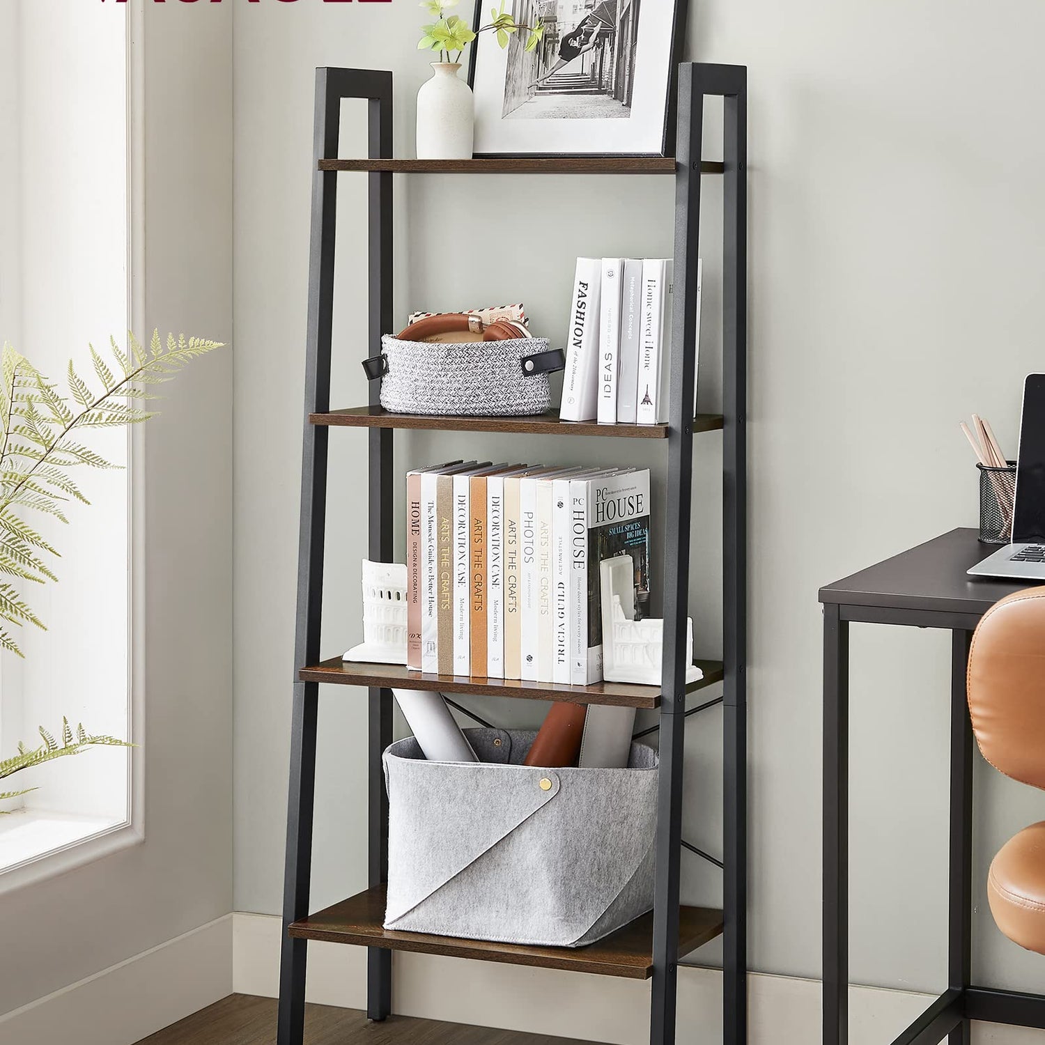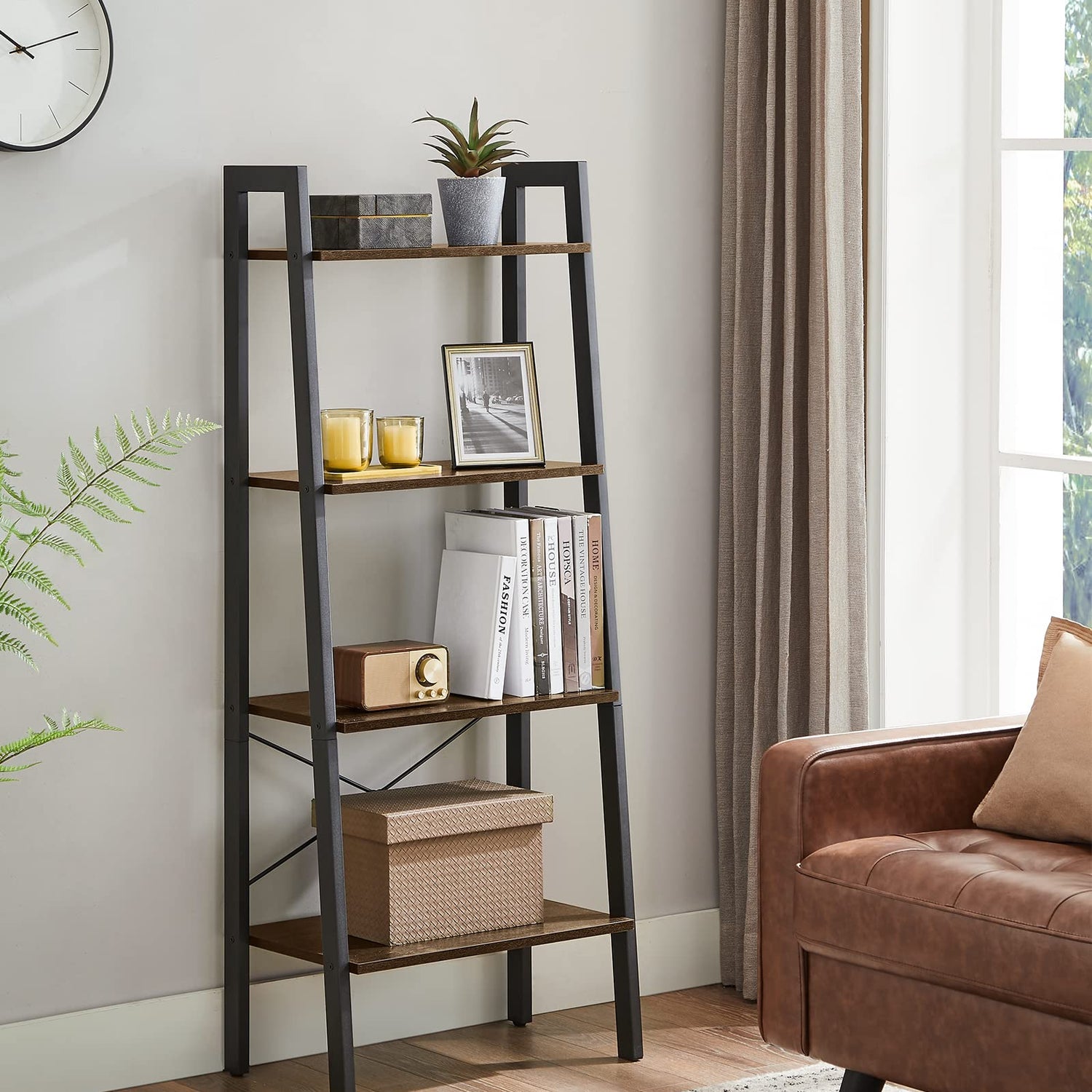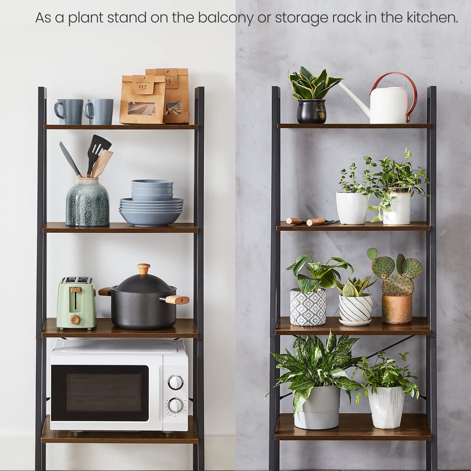 VASAGLE Ladder Shelf, 4-Tier Bookshelf, Storage Rack, Bookcase with Steel Frame, for Living Room, Home Office, Kitchen, Bedroom, Industrial Style, Rustic Dark Brown and Black ULLS44BF