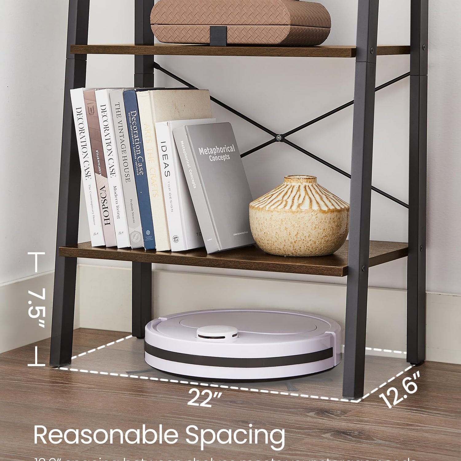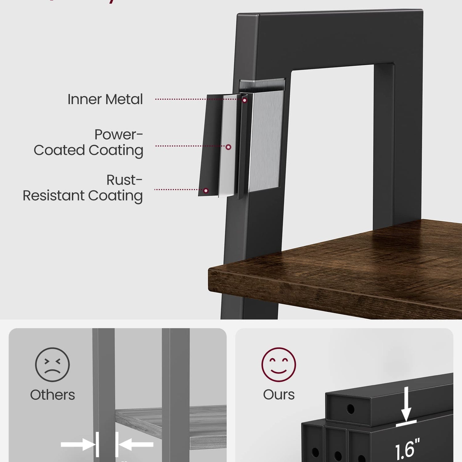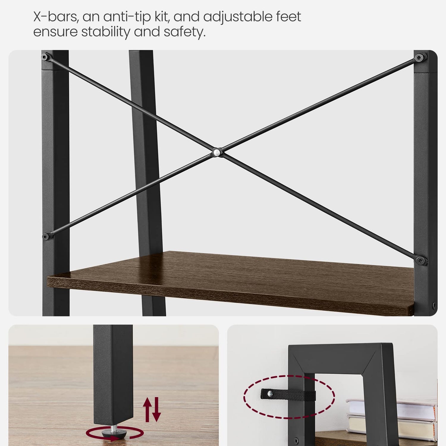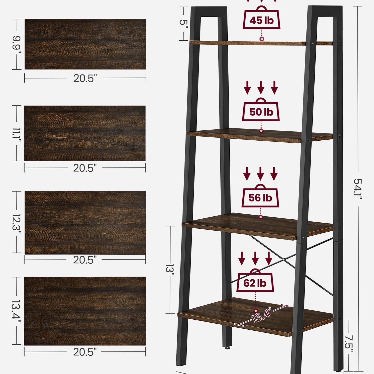VASAGLE Ladder Shelf, 4-Tier Bookshelf, Storage Rack, Bookcase with Steel Frame, for Living Room, Home Office, Kitchen, Bedroom, Industrial Style, Rustic Dark Brown and Black ULLS44BF