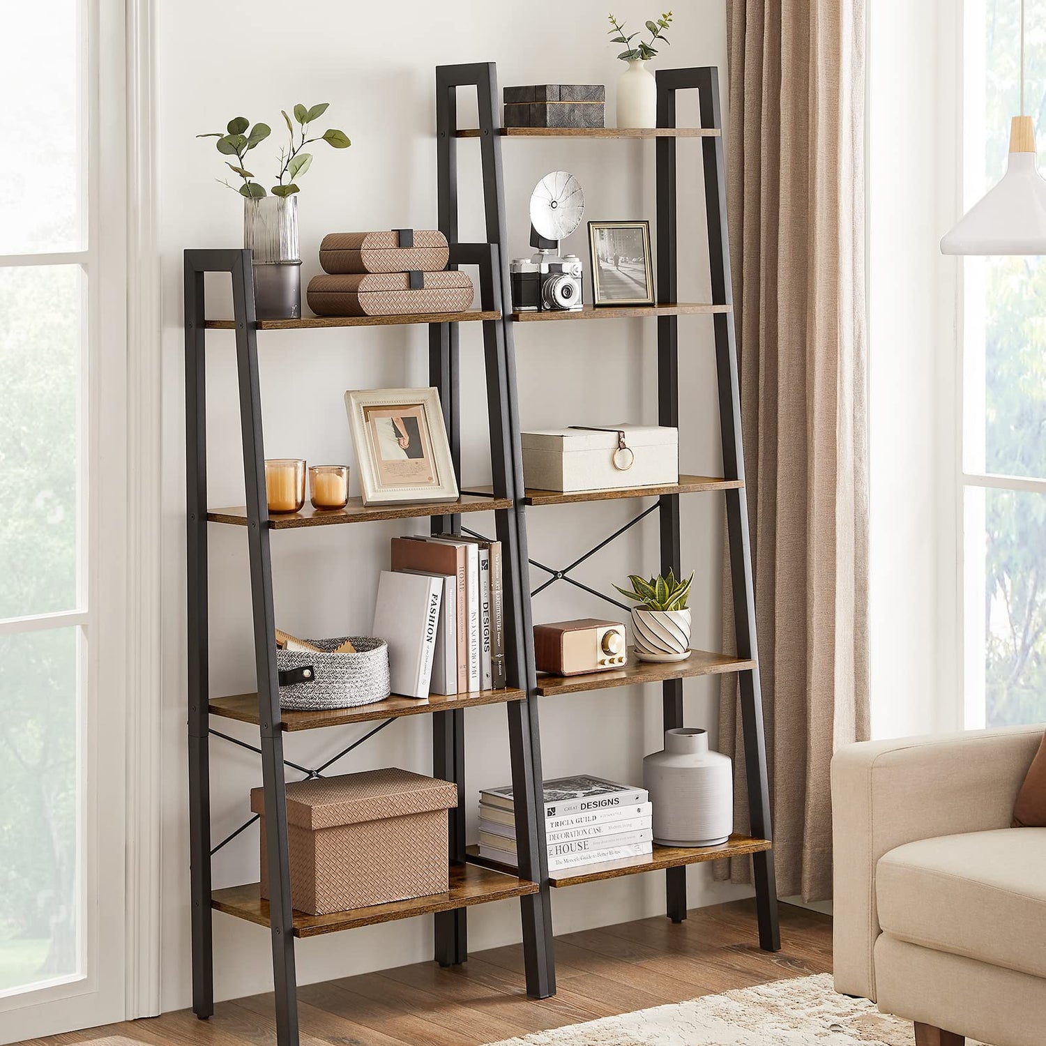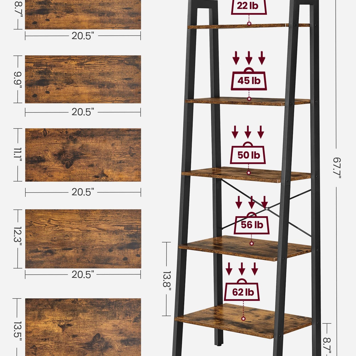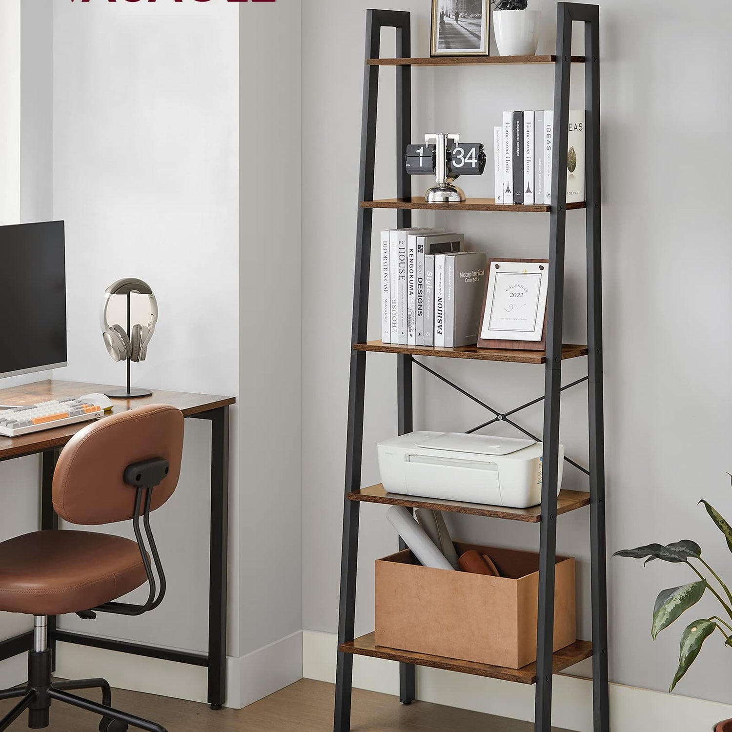 Discover the perfect addition to your interior with the VASAGLE Rustic Brown 5-Tier Ladder Shelf and make your space stylishly functional.