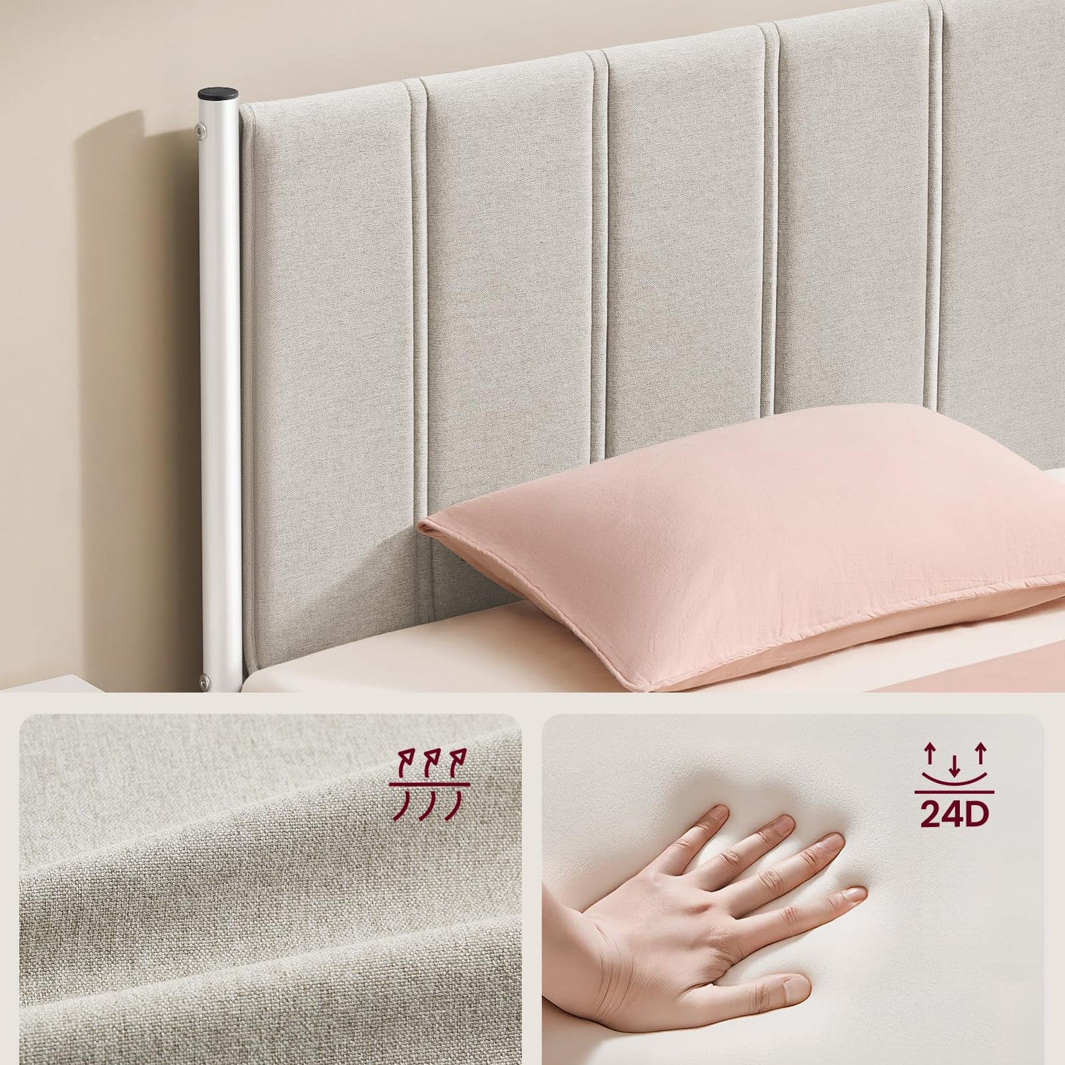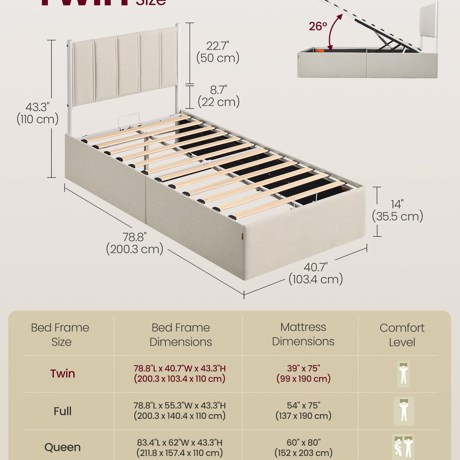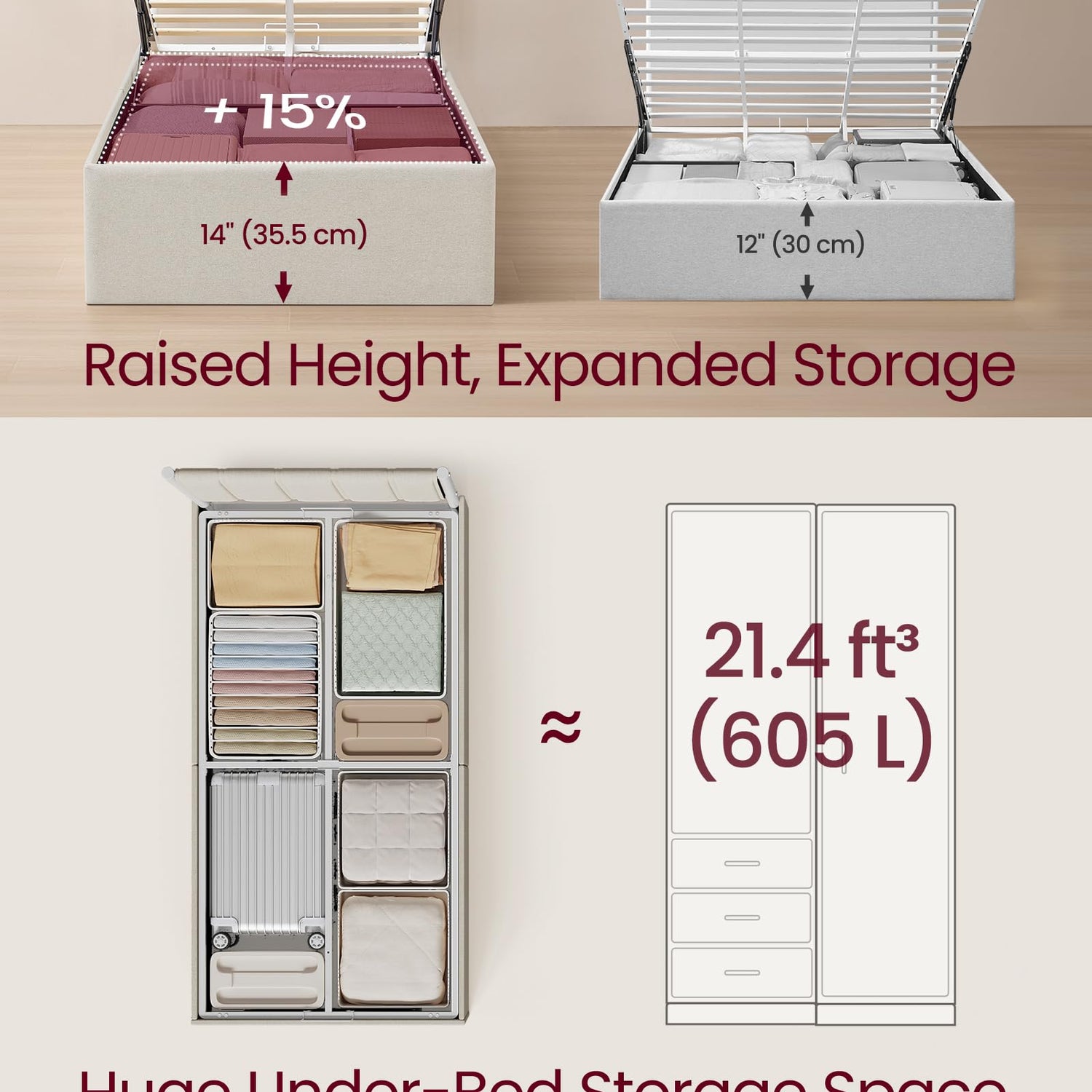 - Comfortable Upholstered Headboard: High-density foam wrapped in breathable, linen-like upholstery allows this lift-up storage bed frame to deliver optimal support and cushioning for bedtime reading or binge-watching