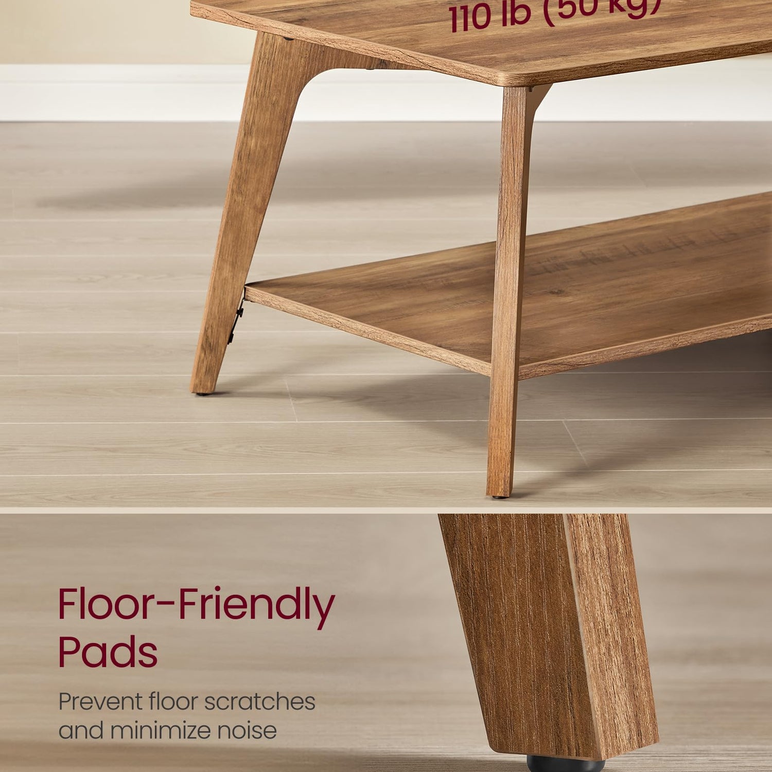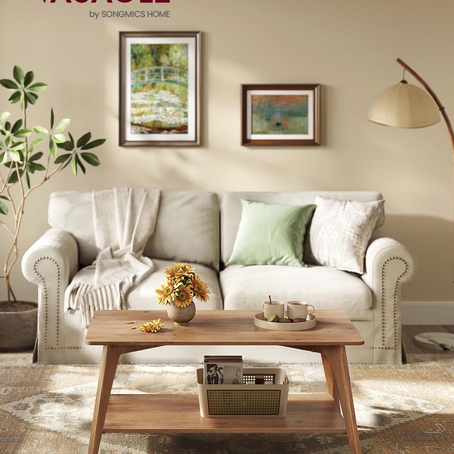 VASAGLE MAEZO Collection - Coffee Table, 2-Tier Center Table with Storage, Tapered Legs, Curved Transitions, 21.7 x 39.4 x 17.7 Inches, Easy to Assemble, for Living Room, Honey Brown ULCT249K01