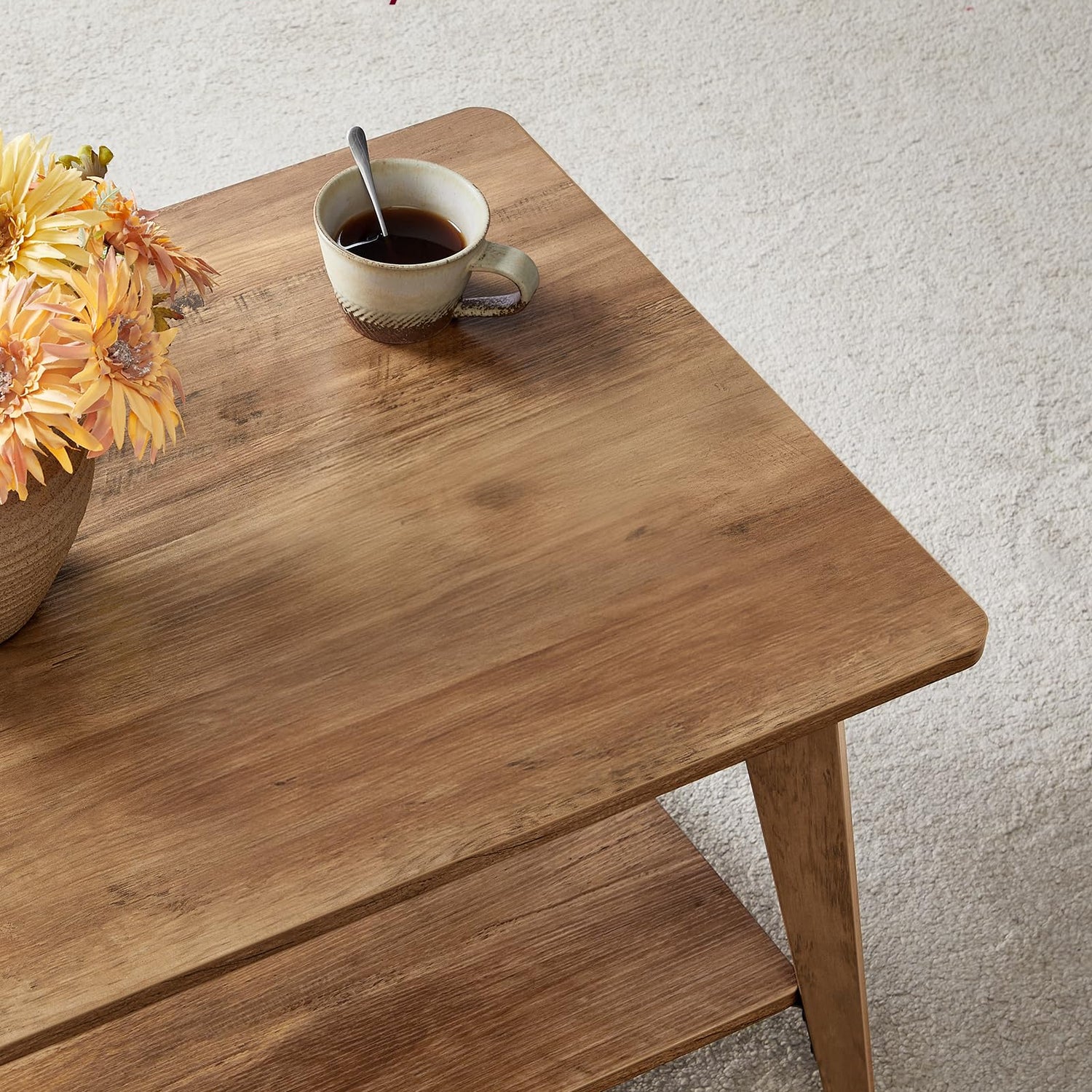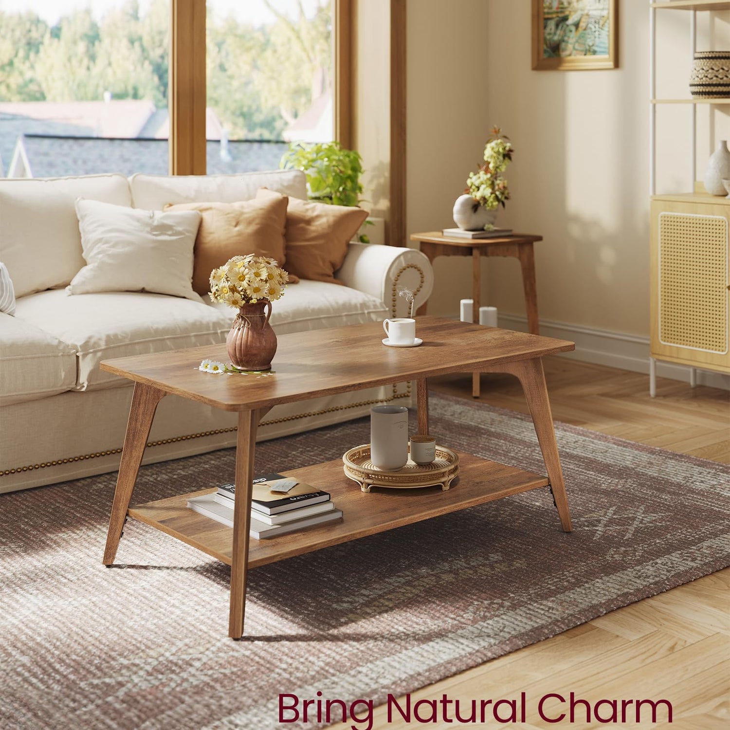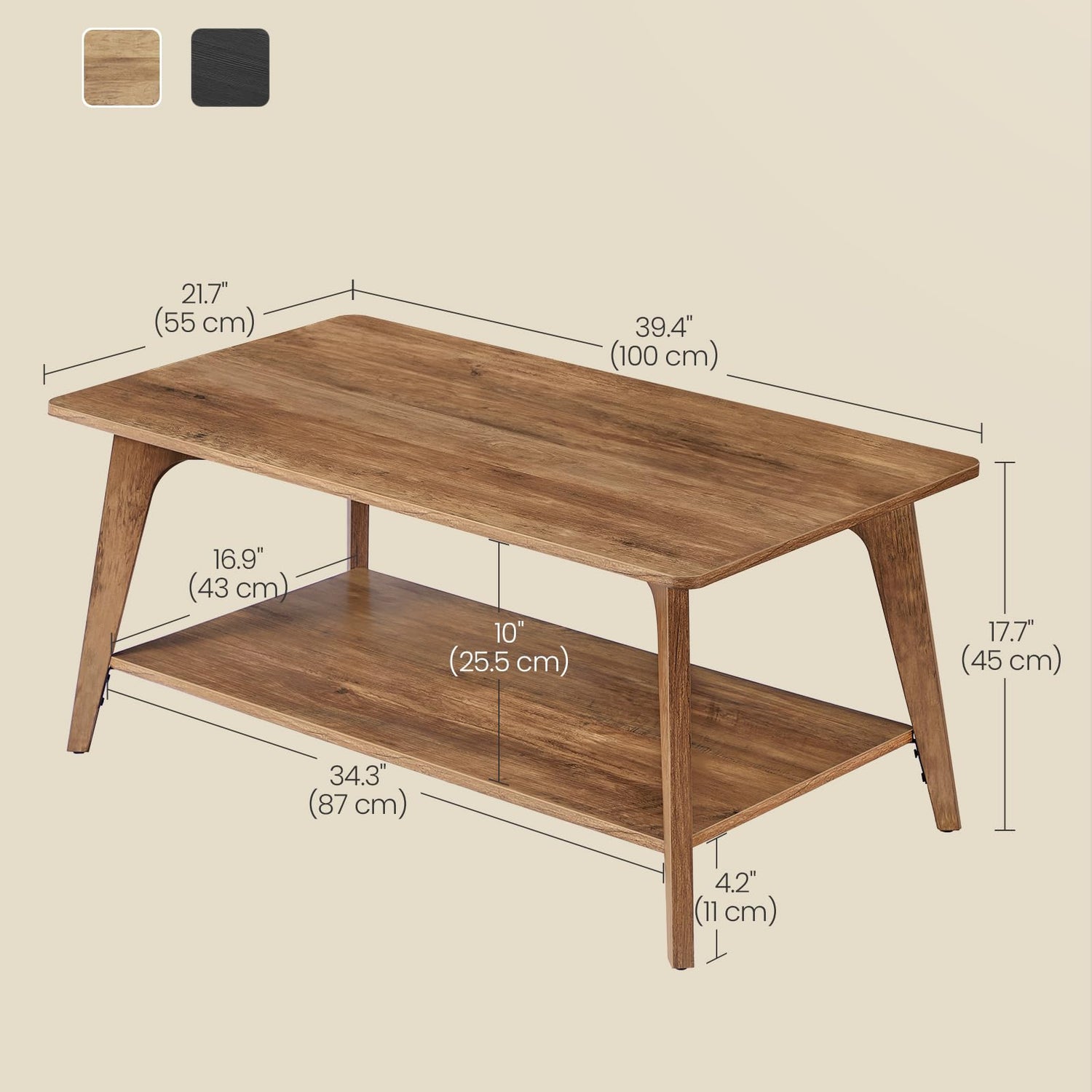 - 2-Tier Storage: Measuring 21.7"D x 39.4"W x 17.7"H, this 2-tier coffee table offers ample space with a tabletop for vases and a lower shelf for books or magazines, keeping your daily items organized and within easy reach.