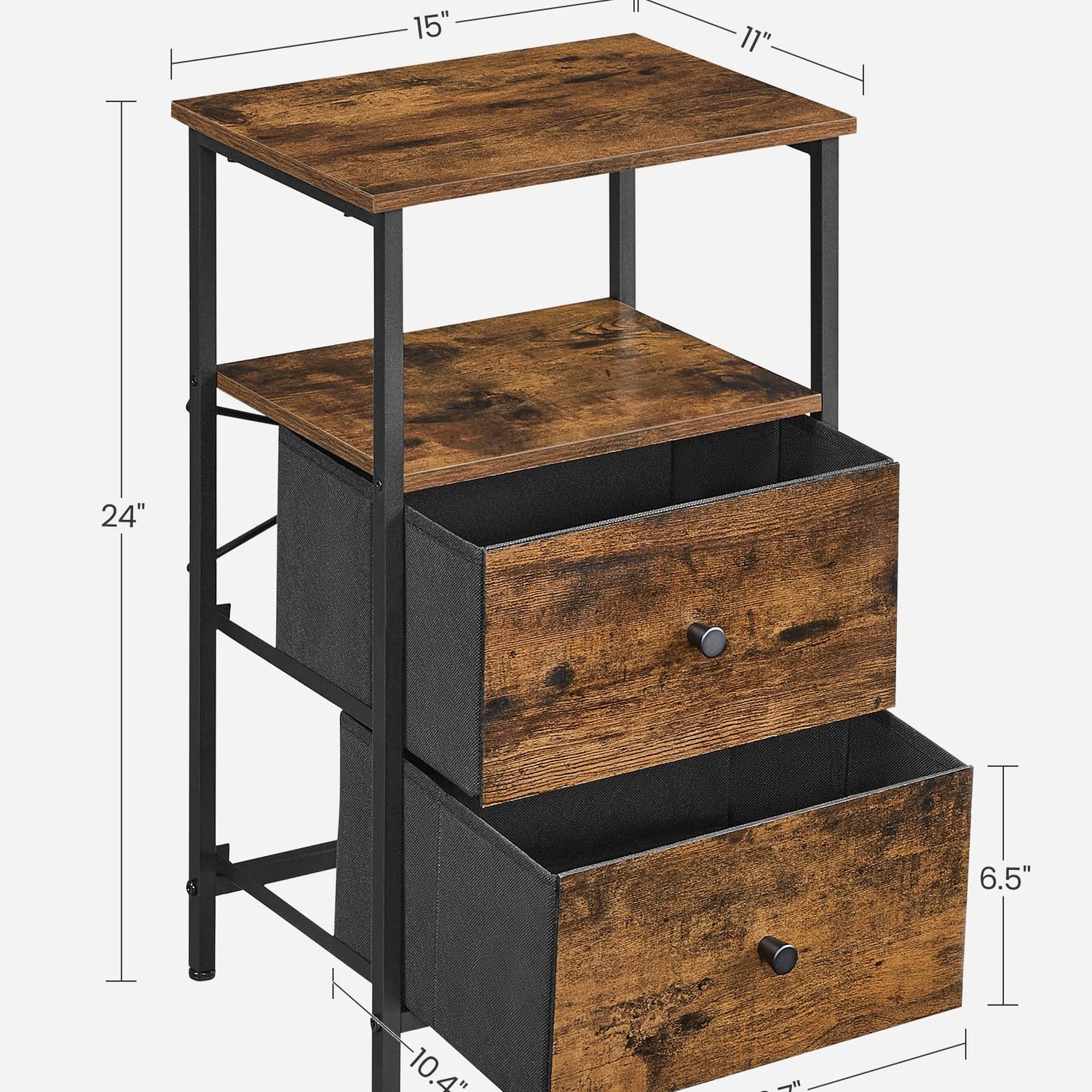 VASAGLE Nightstand, 24-Inch Tall Side Table with 2 Fabric Drawers and Storage Shelf, for Bedroom, Rustic Brown and Black ULGS025B01