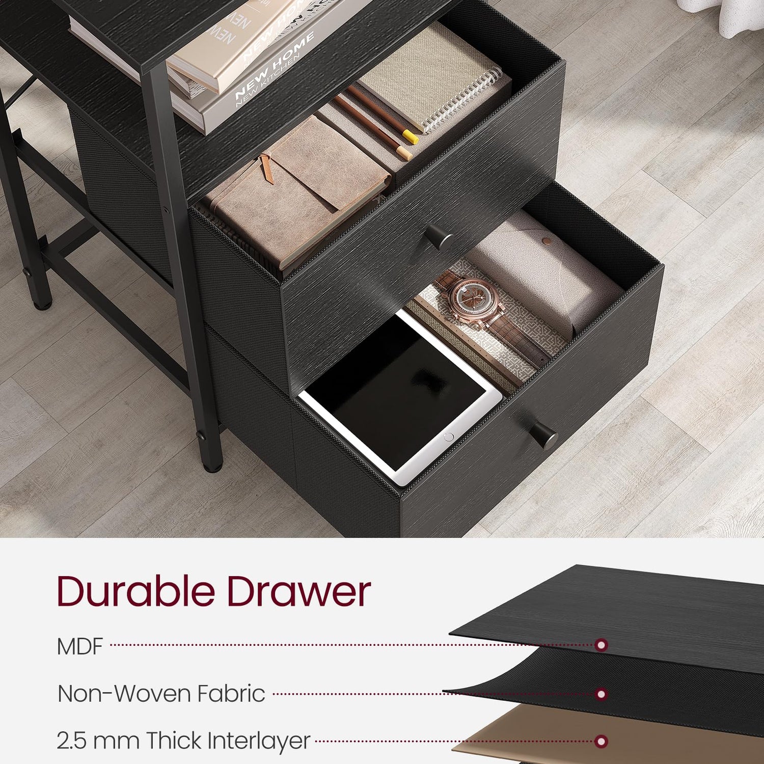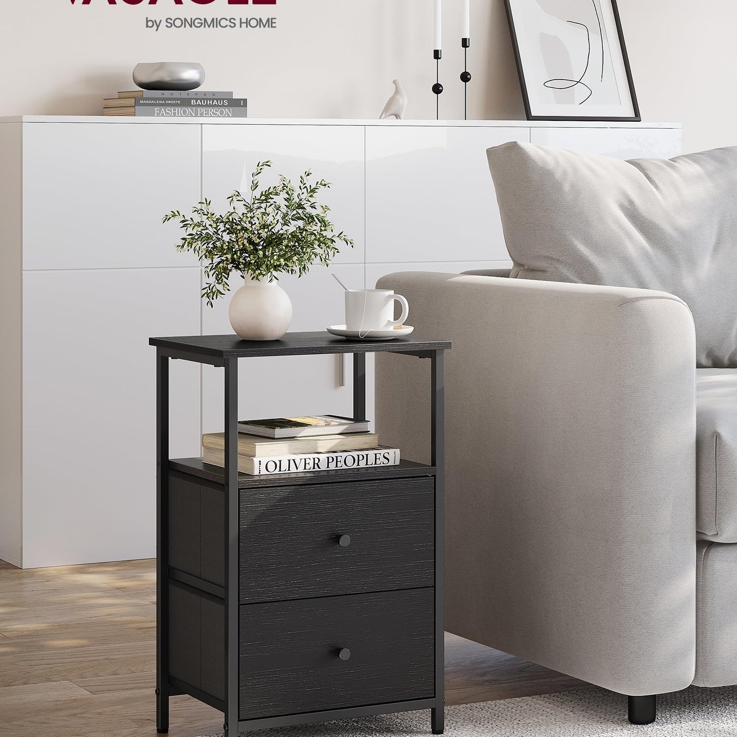 VASAGLE Nightstand Set of 2, Side Tables with 2 Fabric Drawers, 24-Inch Tall End Tables with Storage Shelf, Bedroom, Ash Black and Black ULGS225B21
