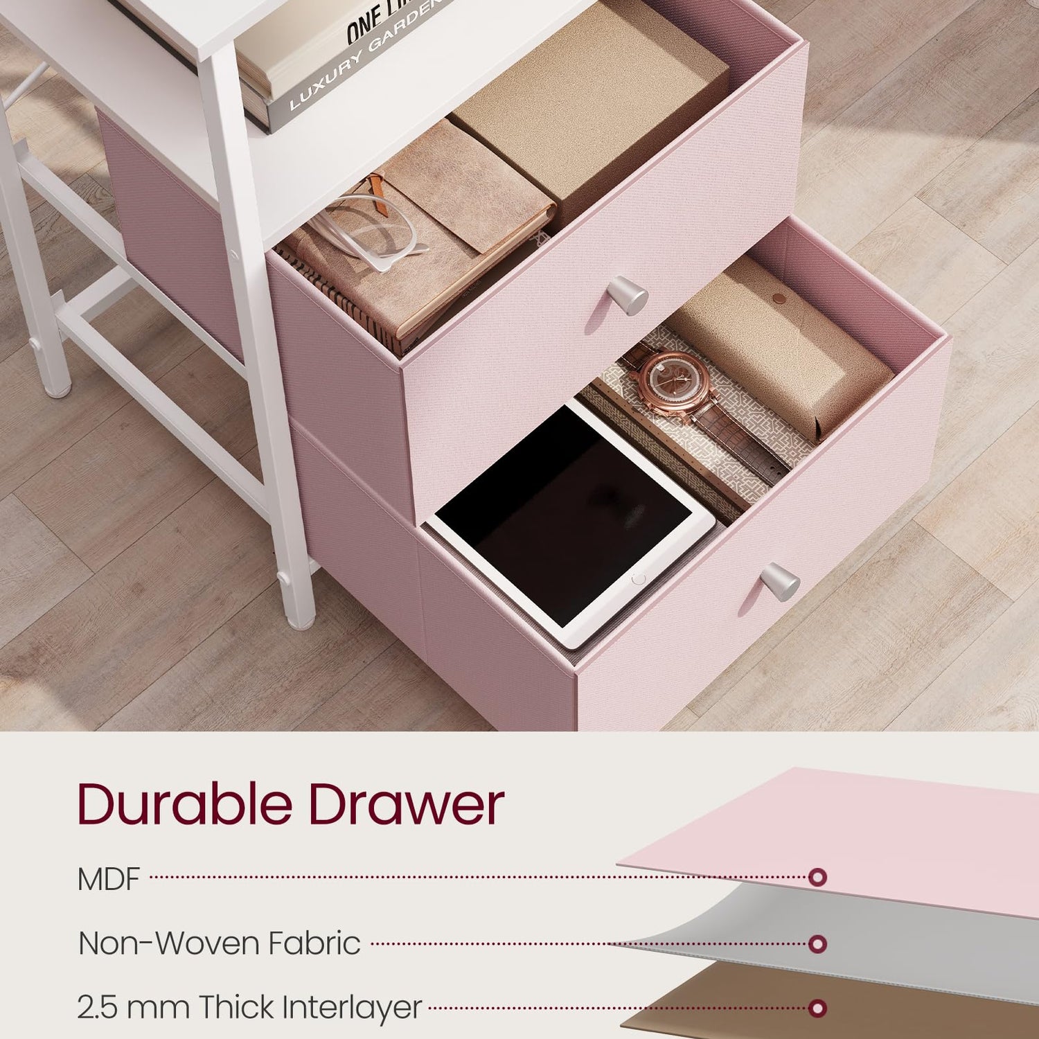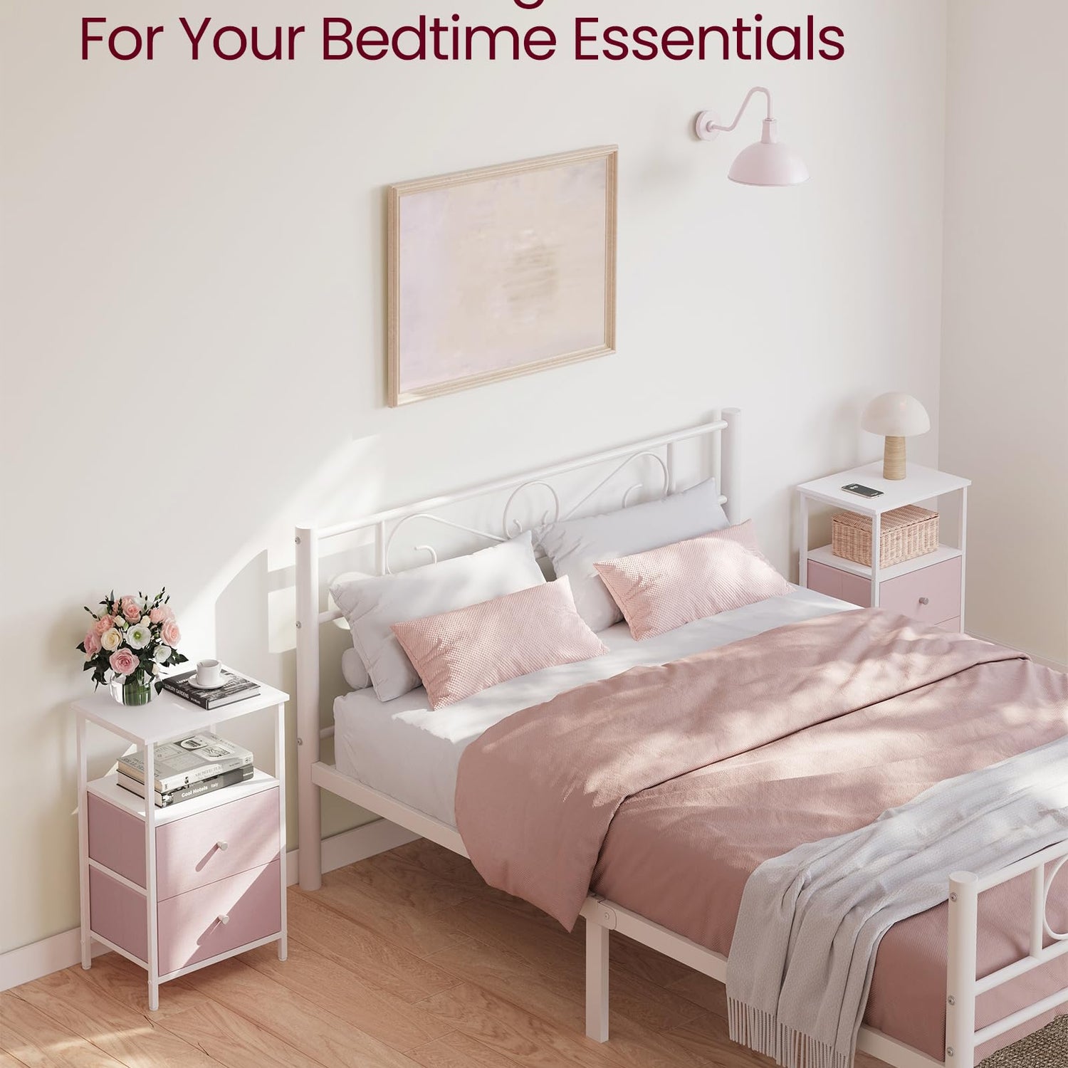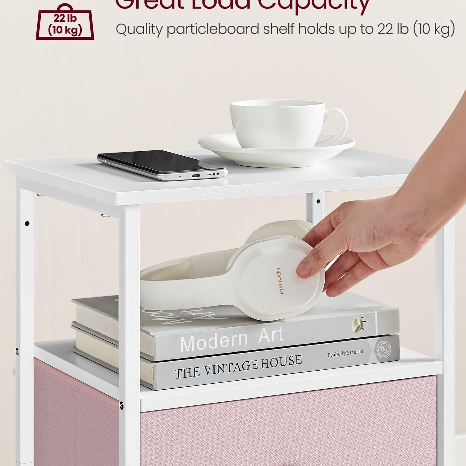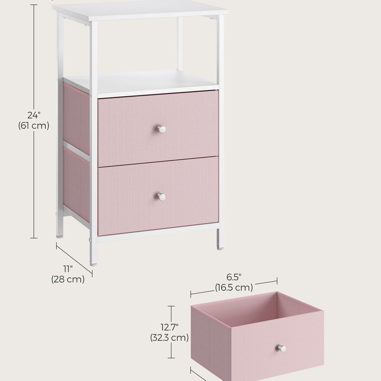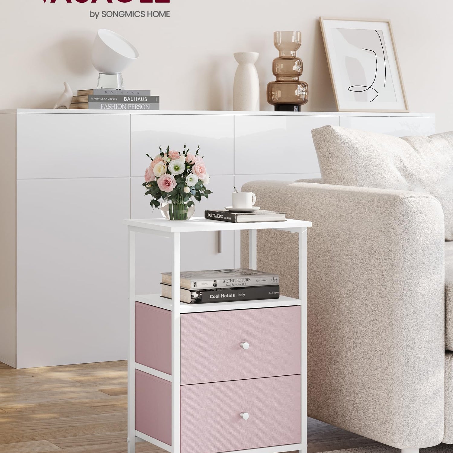 VASAGLE Nightstand, Side Table with 2 Fabric Drawers, 24-Inch Tall End Table with Storage Shelf, Bedroom, Jelly Pink and White ULGS025R05