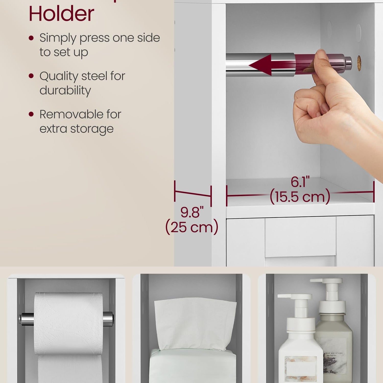 - 【SPACIOUS YET SPACE-SAVING】Featuring shelves for toiletries, a small bottom cabinet, and a toilet paper roll holder in the compartment, this bathroom shelf keeps everything within easy reach. It occupies minimal floor space, optimizing your bathroom space