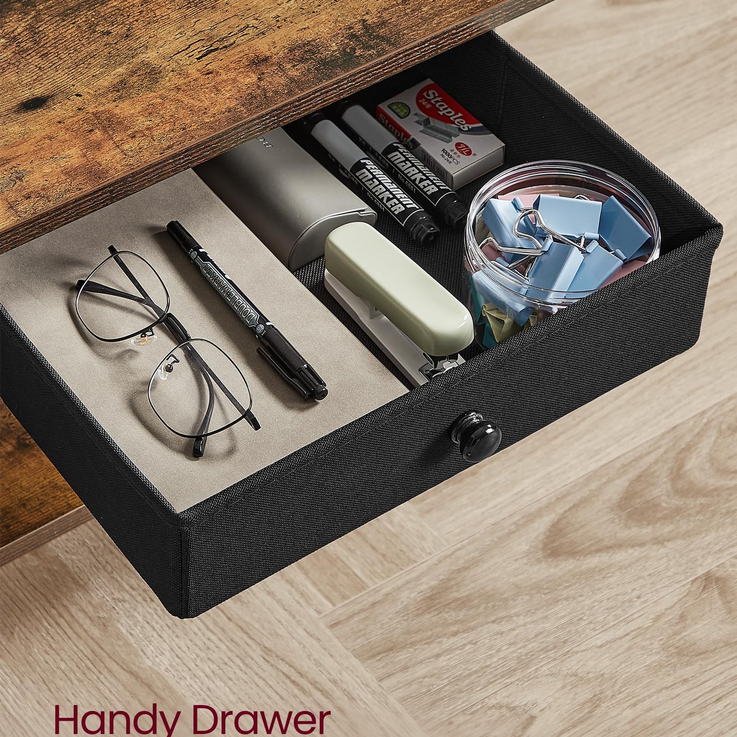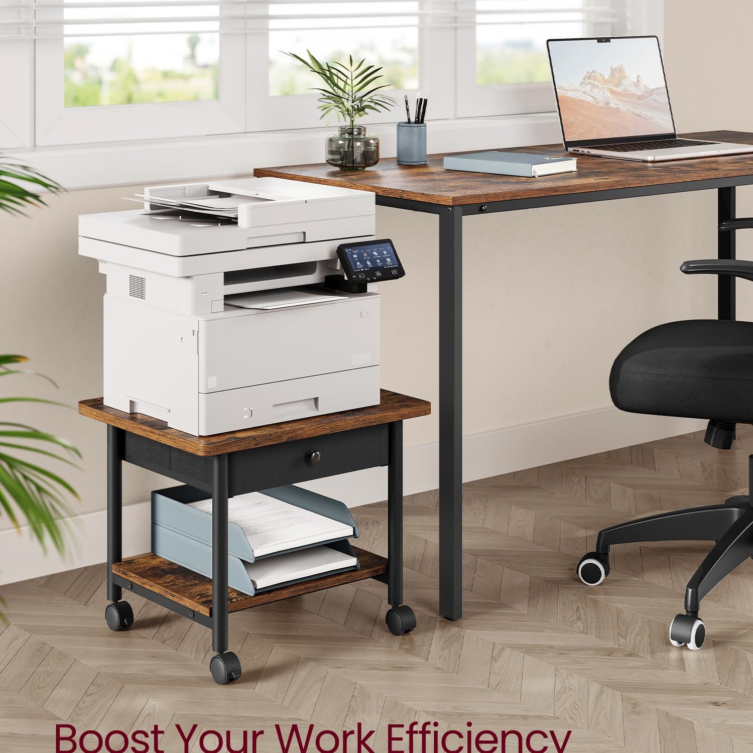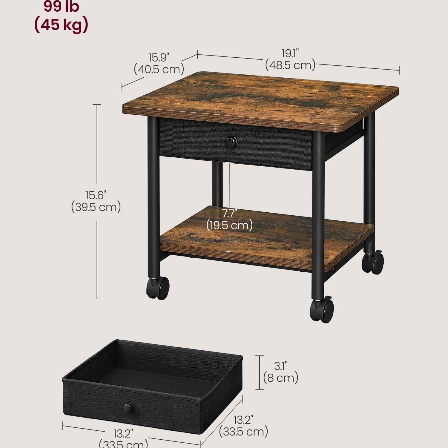 - [A Fusion of Style & Convenience] The rustic brown particleboard panels add a delightful vintage charm to your home office. Complemented by a steel frame and fabric drawer, the rolling printer cart boasts a simple structure, making assembly a breeze