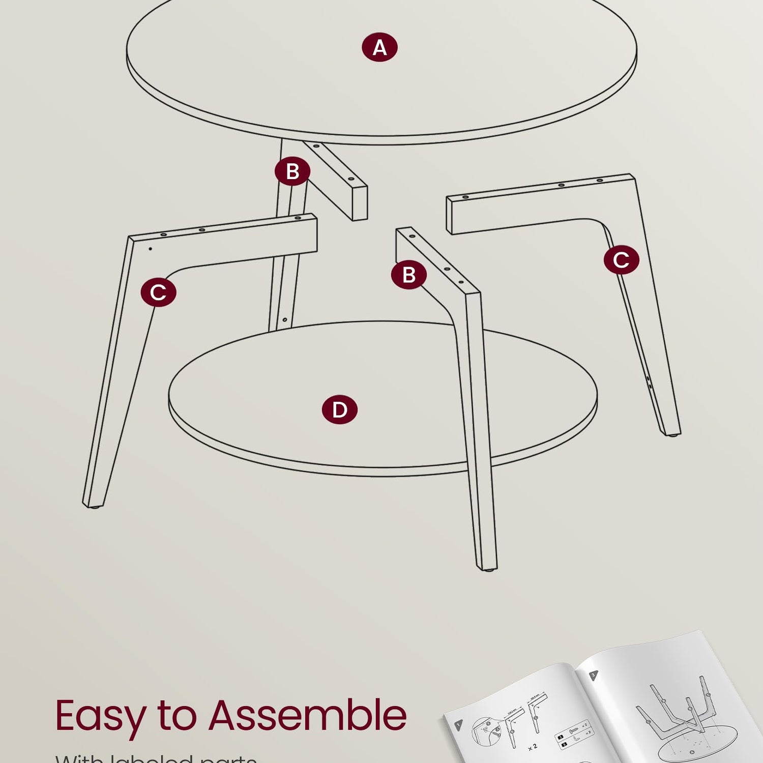 - 【HASSLE-FREE ASSEMBLY】With labeled parts, clear instructions, and a simple structure, you can easily assemble this round coffee table in about 20 minutes