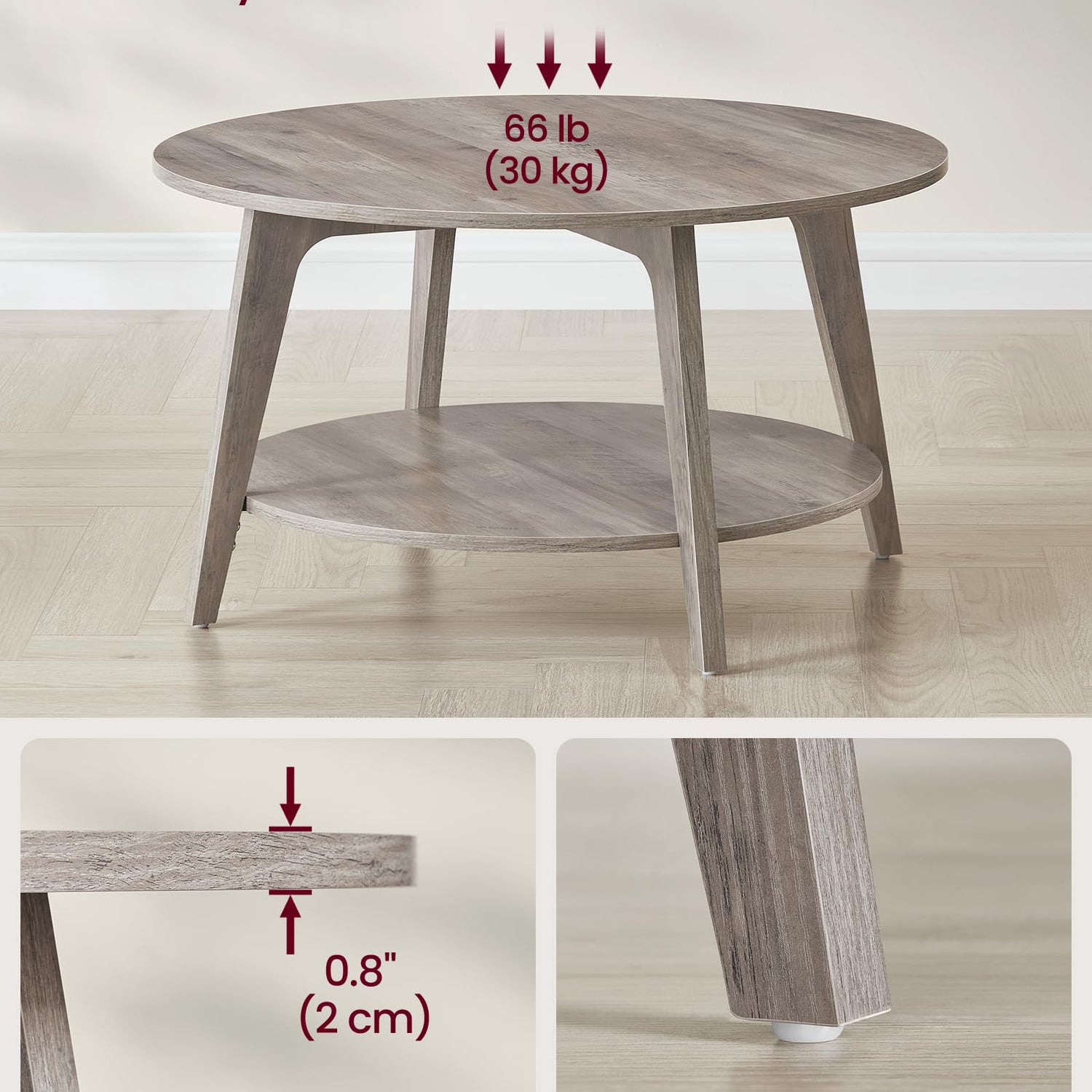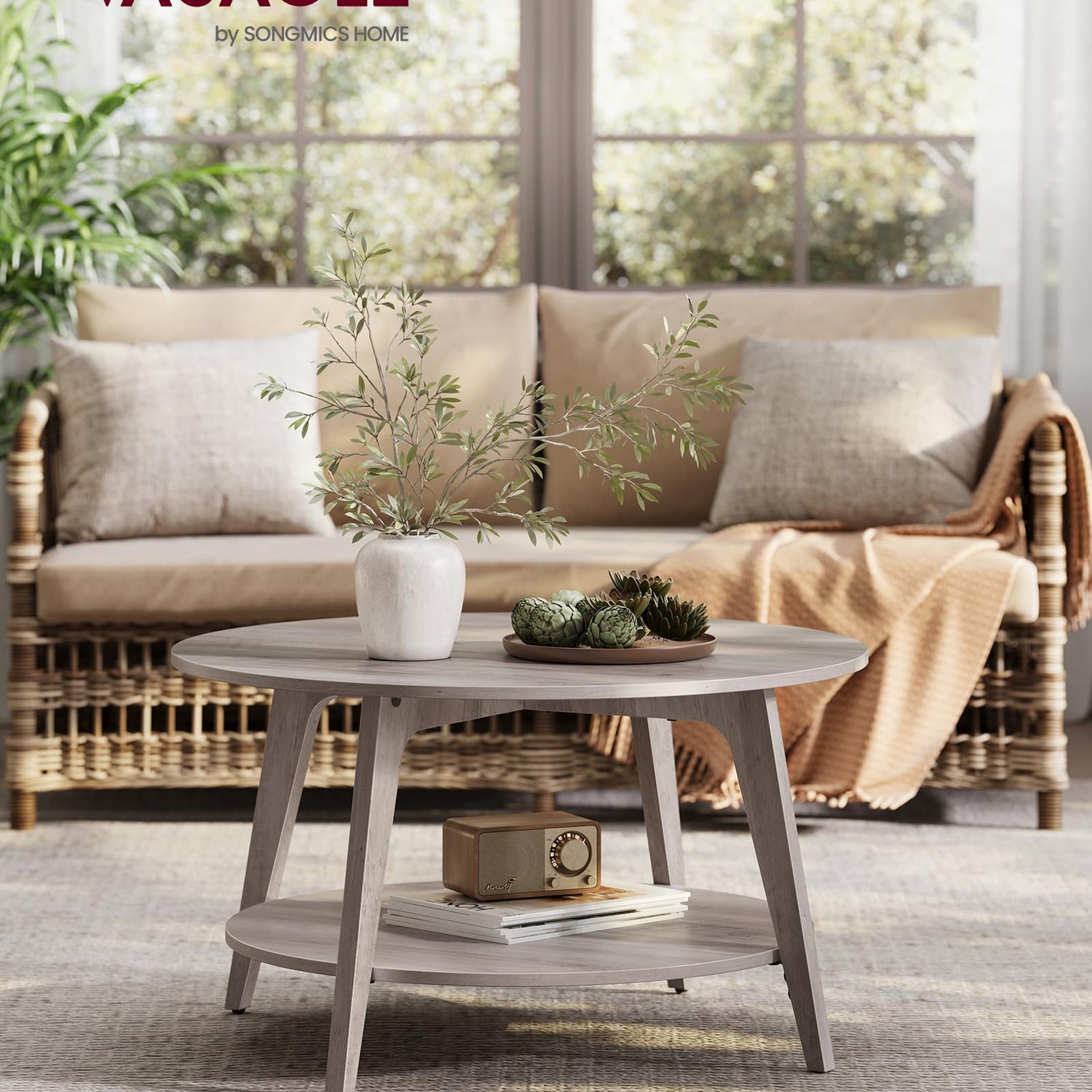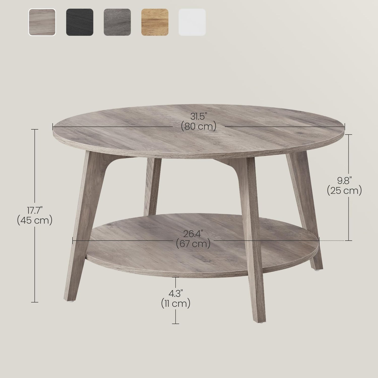 VASAGLE Round Coffee Table, 2 Tier Coffee Table with Storage, for Living Room, 31.5 x 17.7 Inches, Easy to Assemble, Heather Greige ULCT243K02