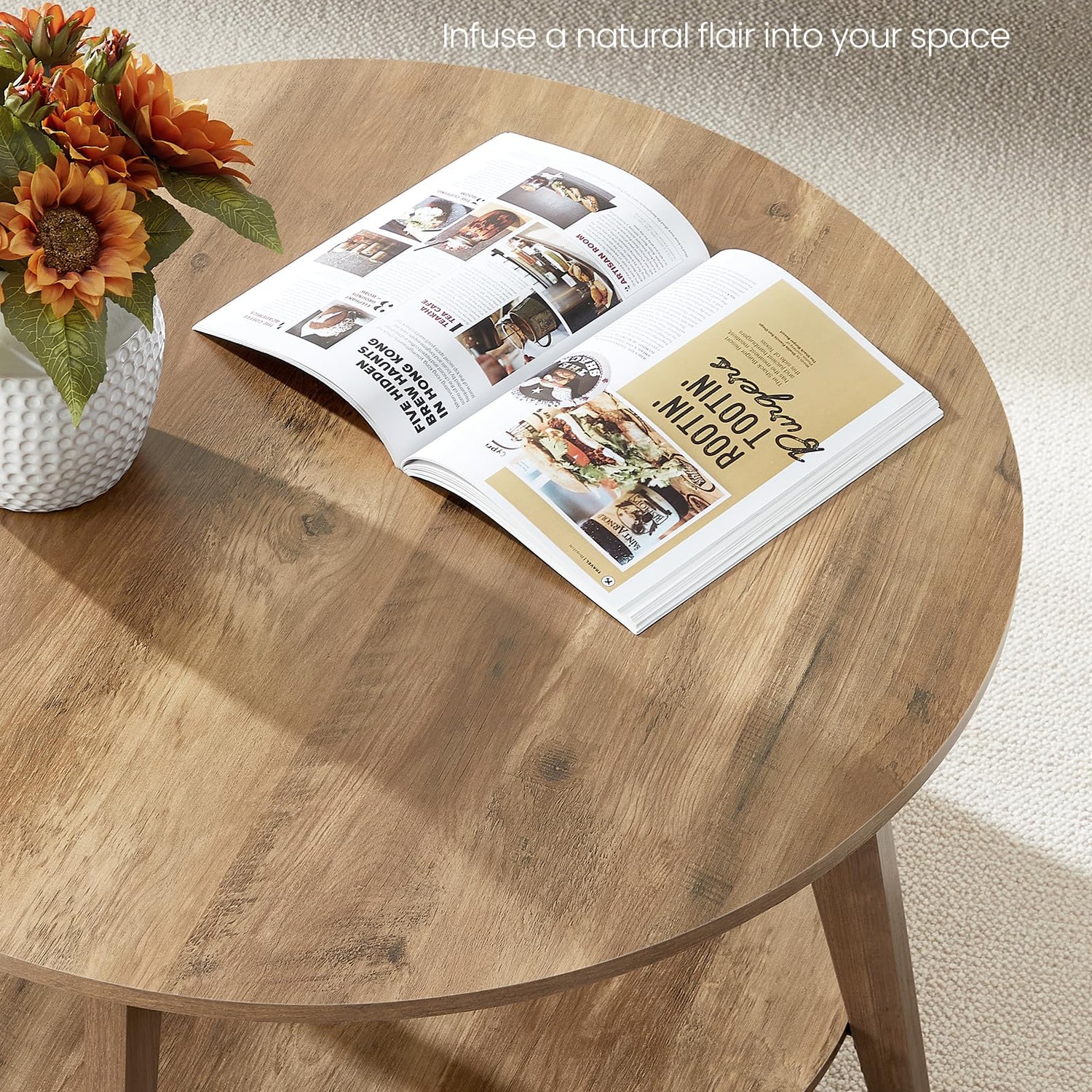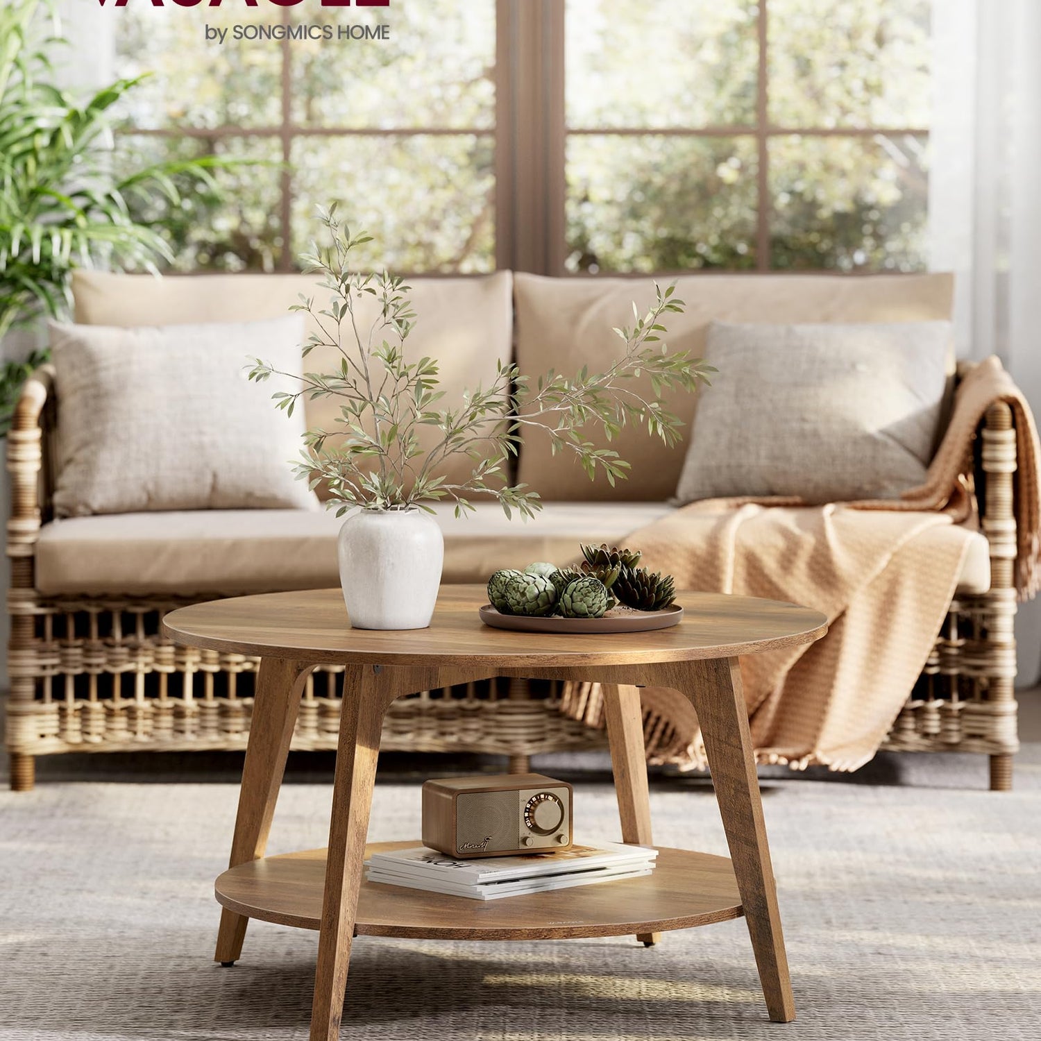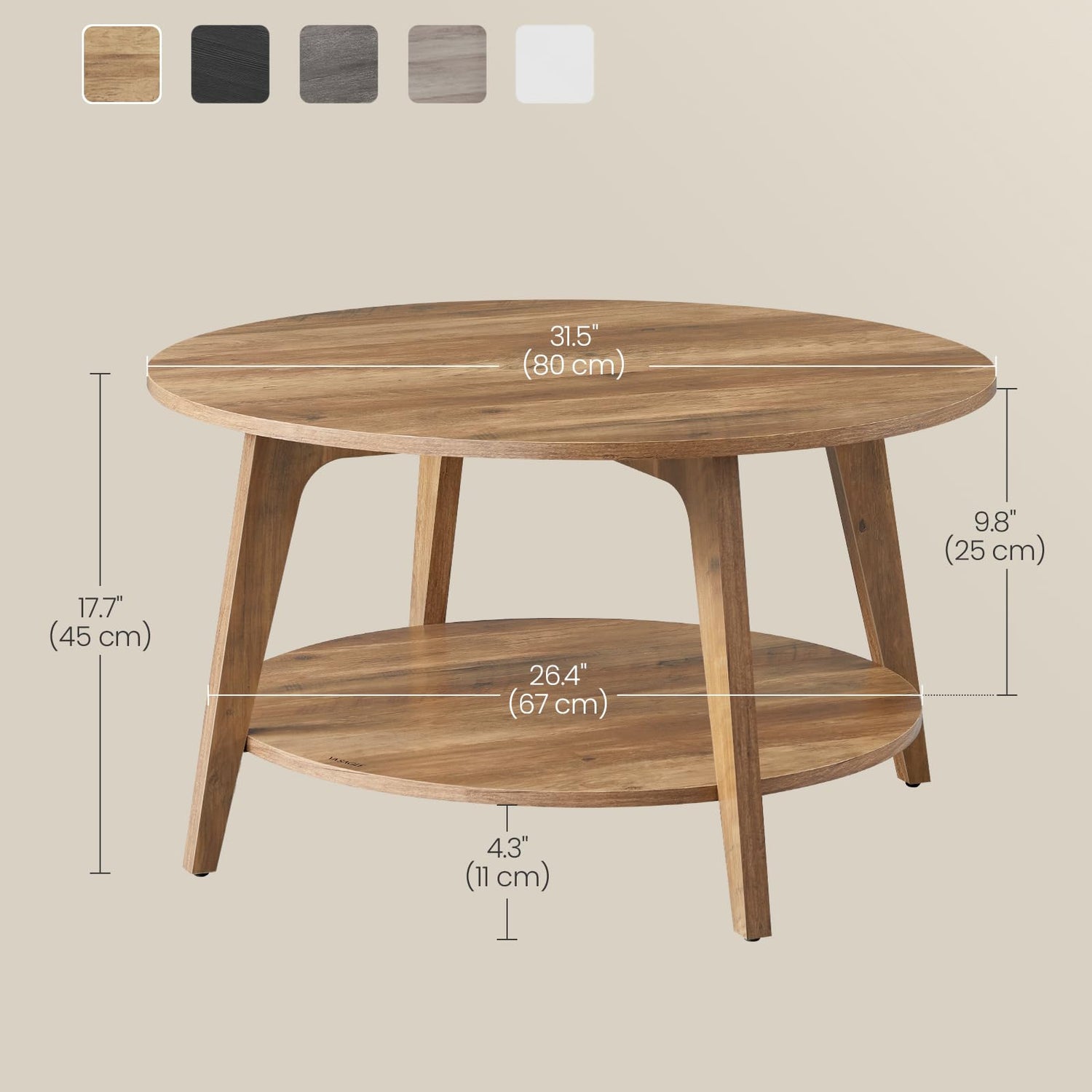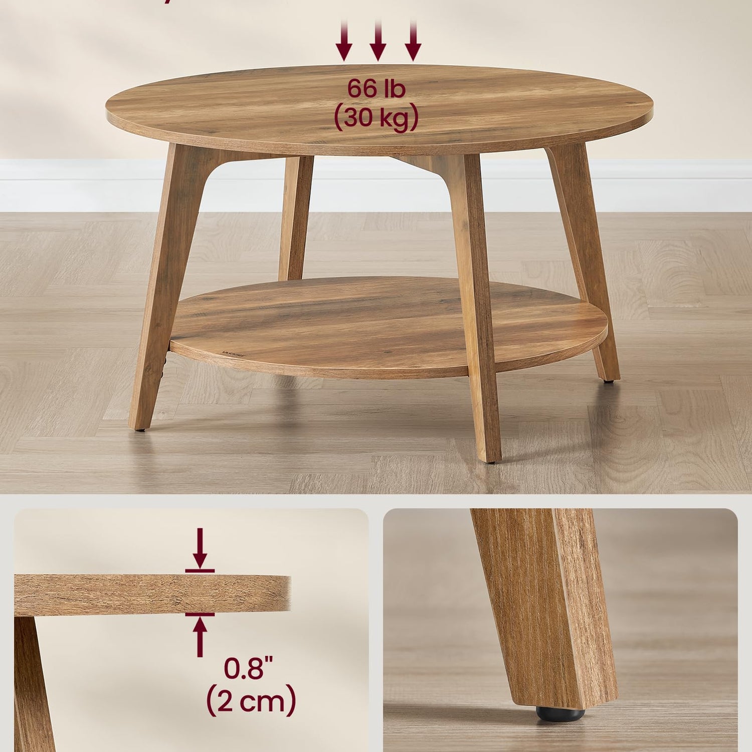 VASAGLE Round Coffee Table, 2 Tier Coffee Table with Storage, for Living Room, 31.5 x 17.7 Inches, Easy to Assemble, Honey Brown ULCT243K41