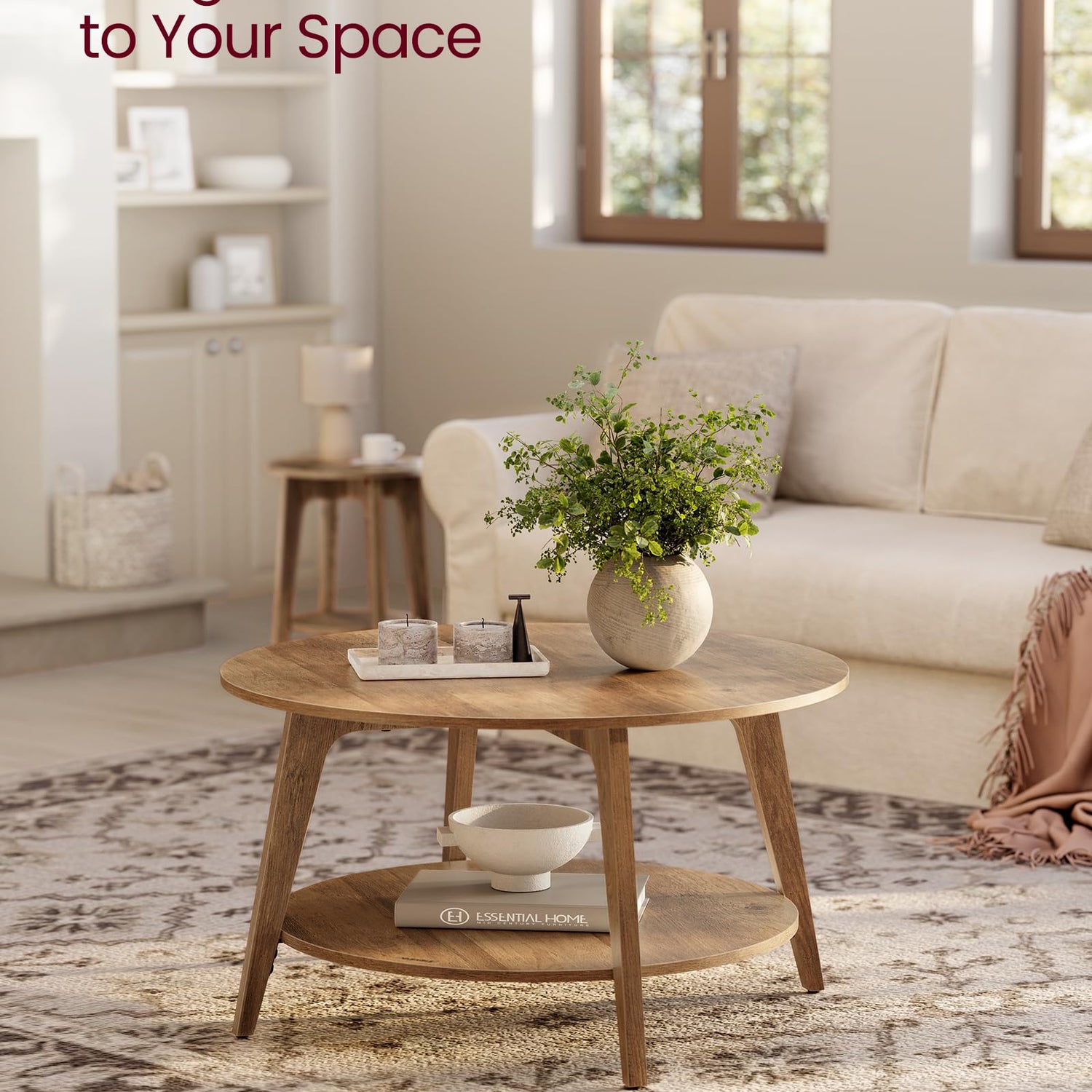 - 【2-TIER COFFEE TABLE】Measuring 31.5" dia. x 17.7"H, this 2-tier coffee table offers ample space to keep your living room essentials organized and within reach