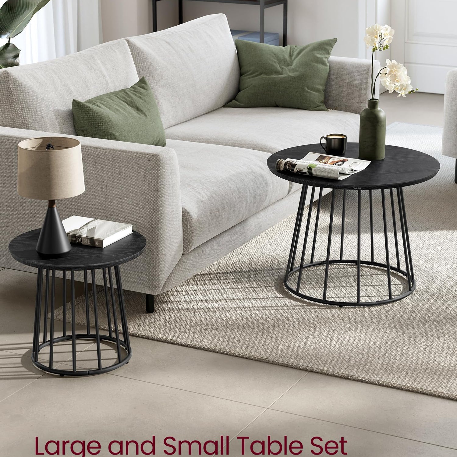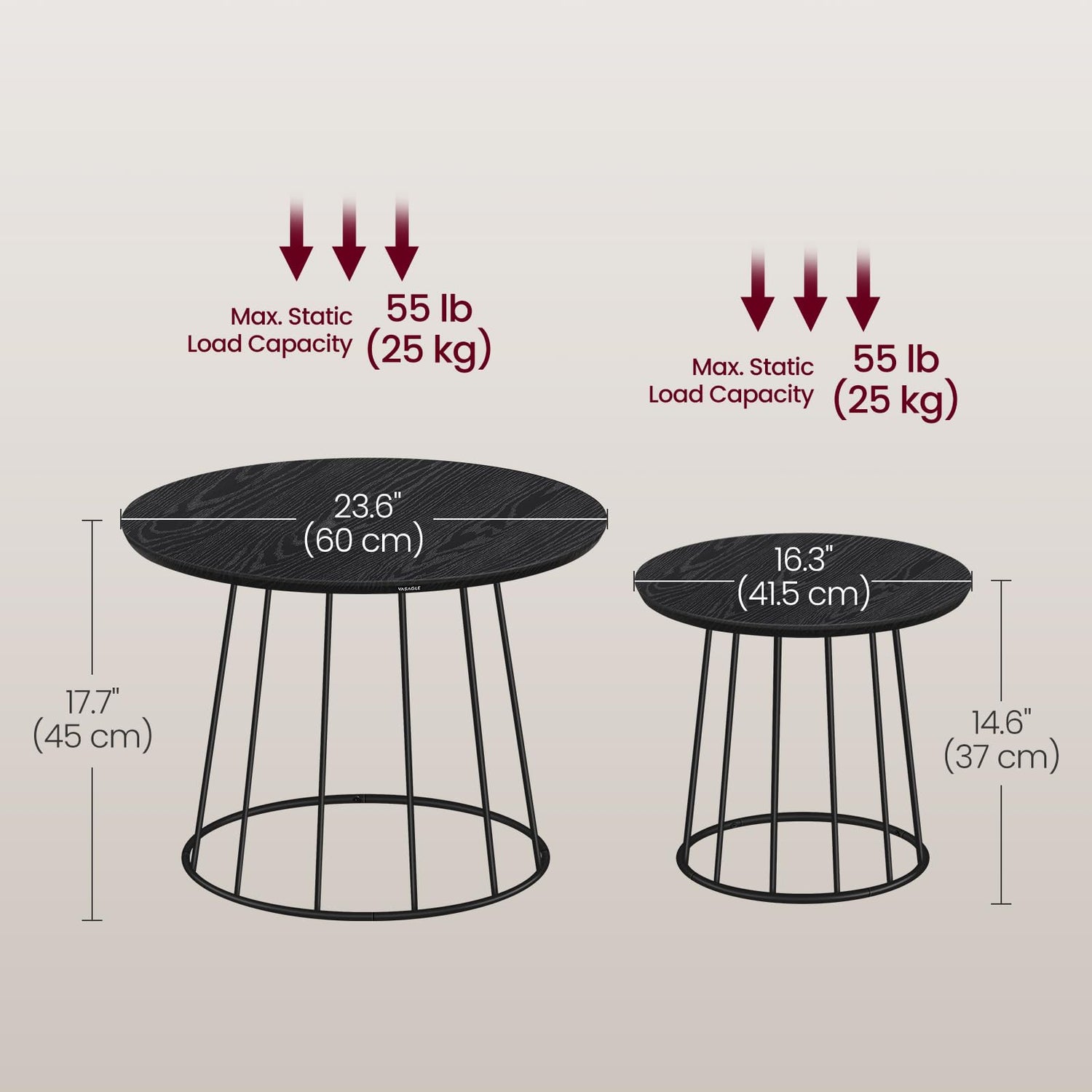 VASAGLE Round Coffee Tables, Set of 2, Modern Circle Side Tables with Steel Frame, for Living Room, Bedroom, Ebony Black ULCT045B56