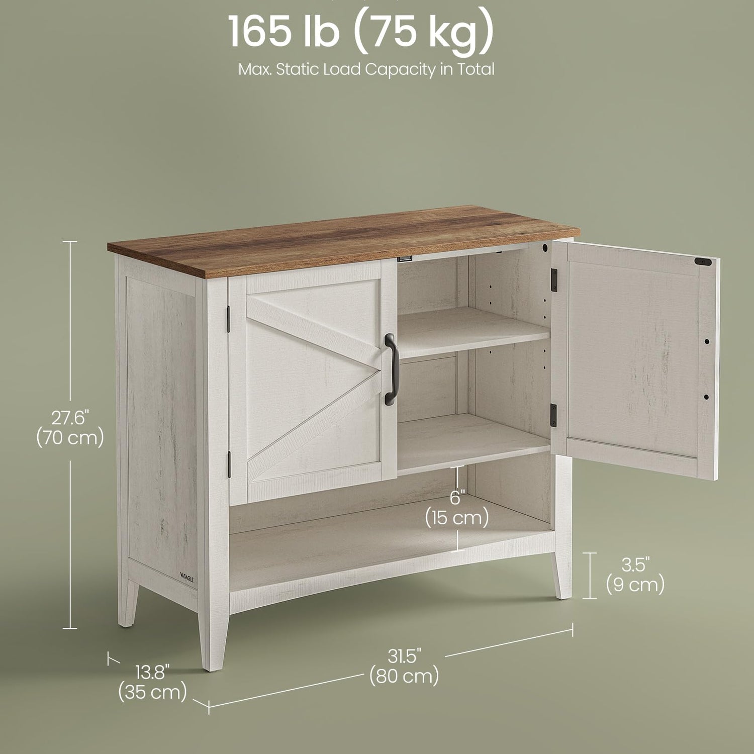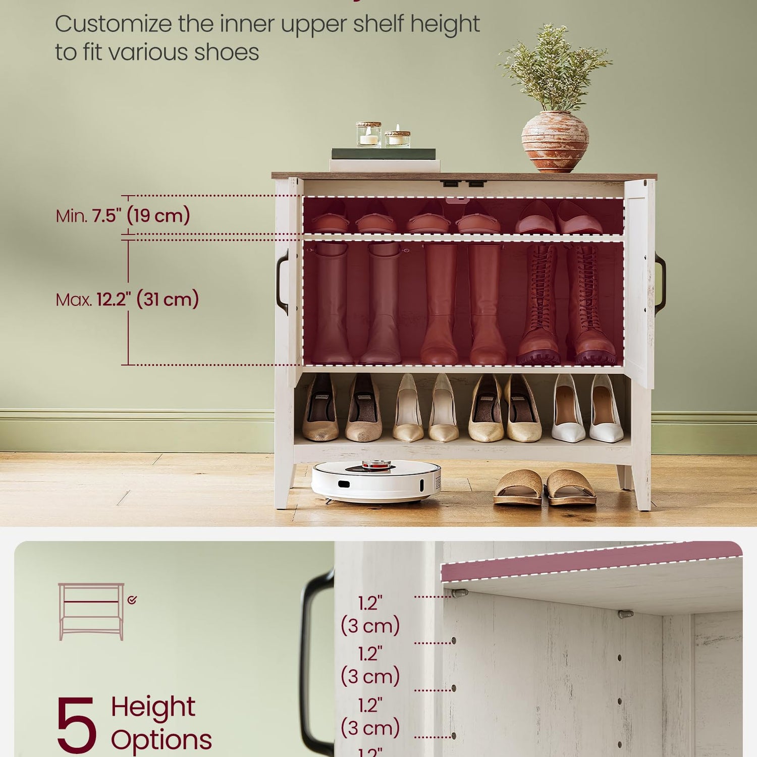 VASAGLE Shoe Cabinet, 3-Tier Shoe Storage Organizer, Farmhouse Freestanding Cabinet with Height-Adjustable Shelf, 13.8 x 31.5 x 27.6 Inches, Entryway, Rustic White ULBC038W01