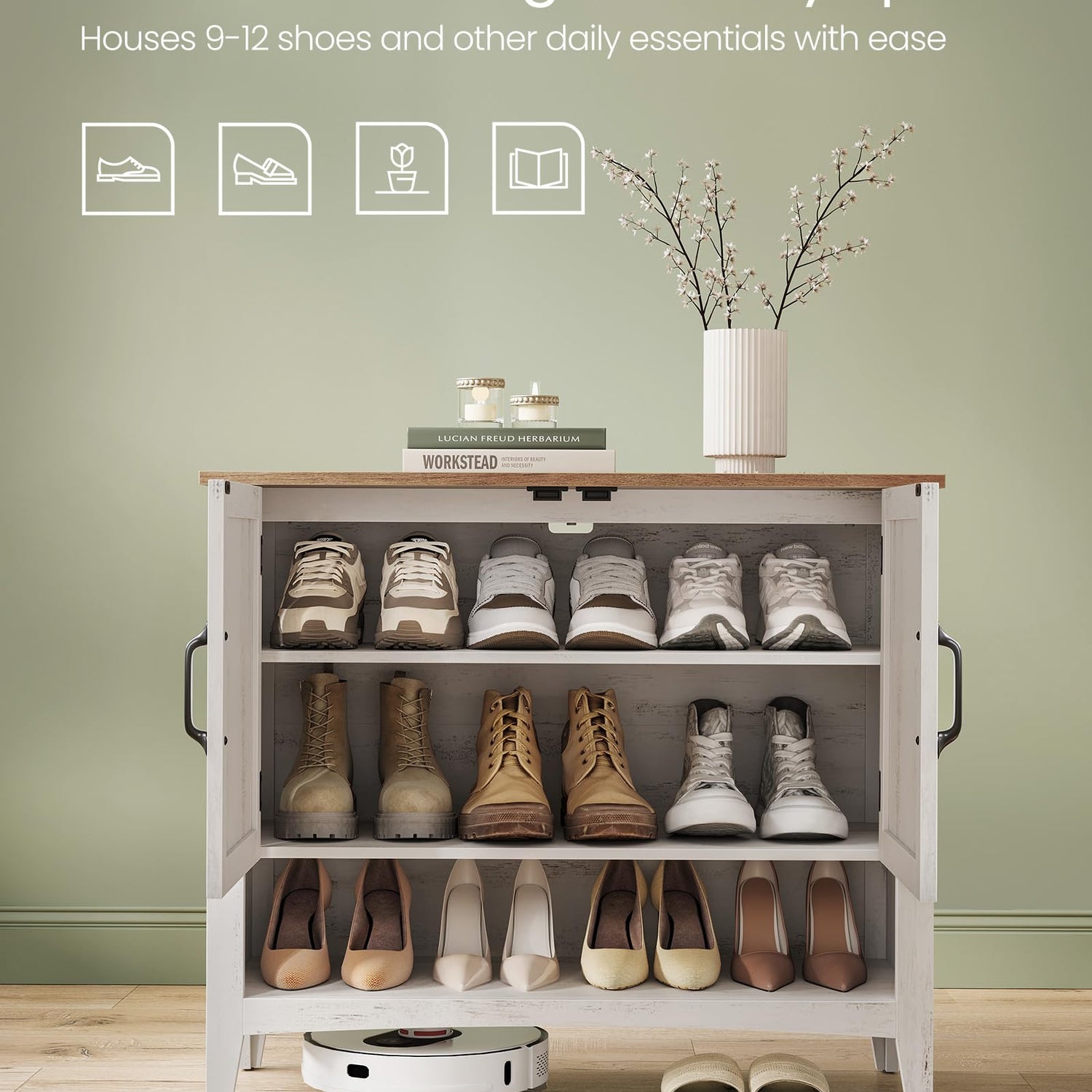 - Farmhouse Style: Featuring a timeless design and a rustic white finish, this shoe cabinet not only provides a practical storage solution but also enhances the aesthetic appeal of your entryway, making every return home a delightful experience