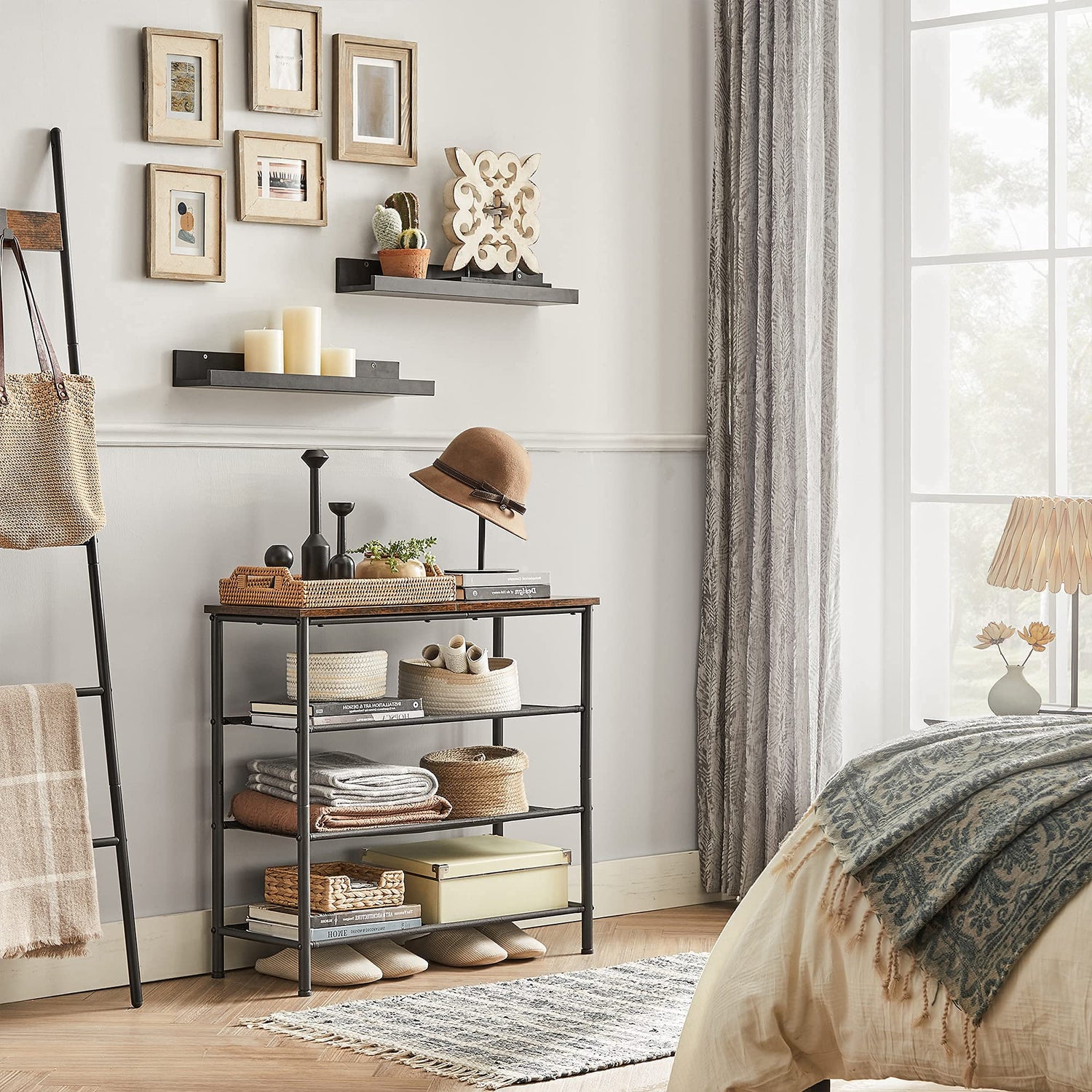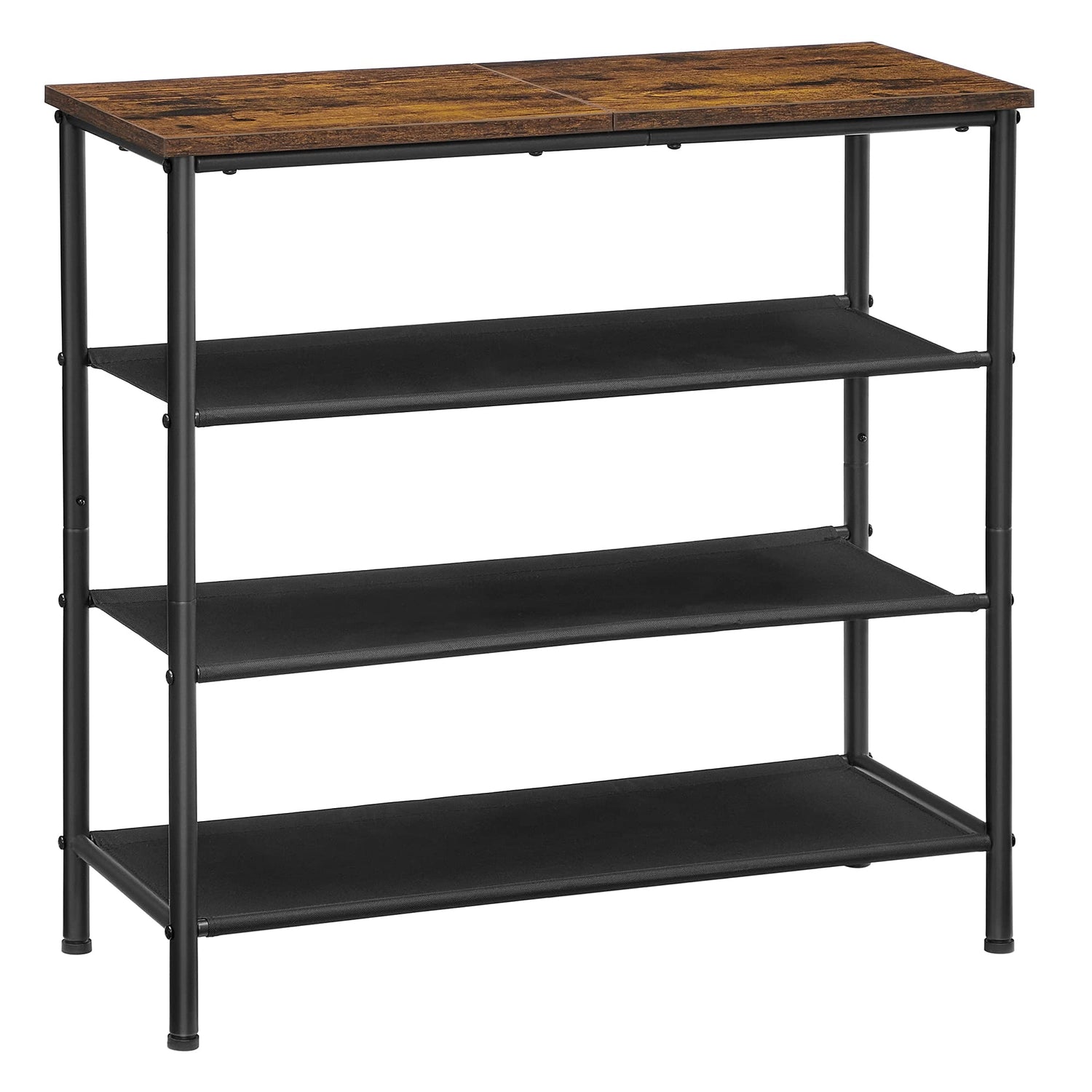 VASAGLE Shoe Rack, 4 Tier Shoe Storage Rack for 9-12 Pairs of Shoes, Shoe Organizer for Entryway, with 3 Fabric Shelves and Wooden Top, Steel Frame, Industrial, Rustic Brown and Black ULBS035B01