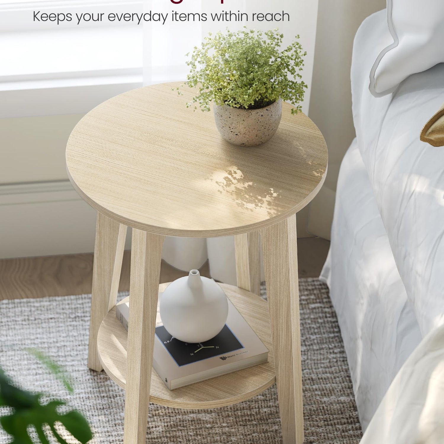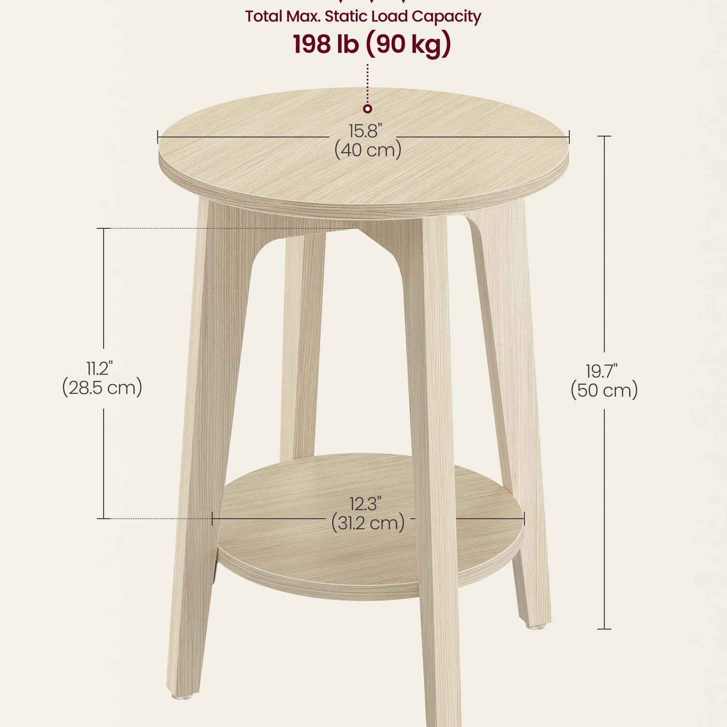 VASAGLE Side Table, Small Round End Table with Lower Shelf, Nightstand for Small Spaces, Living Room, Bedroom, Natural Beige ULET283N01