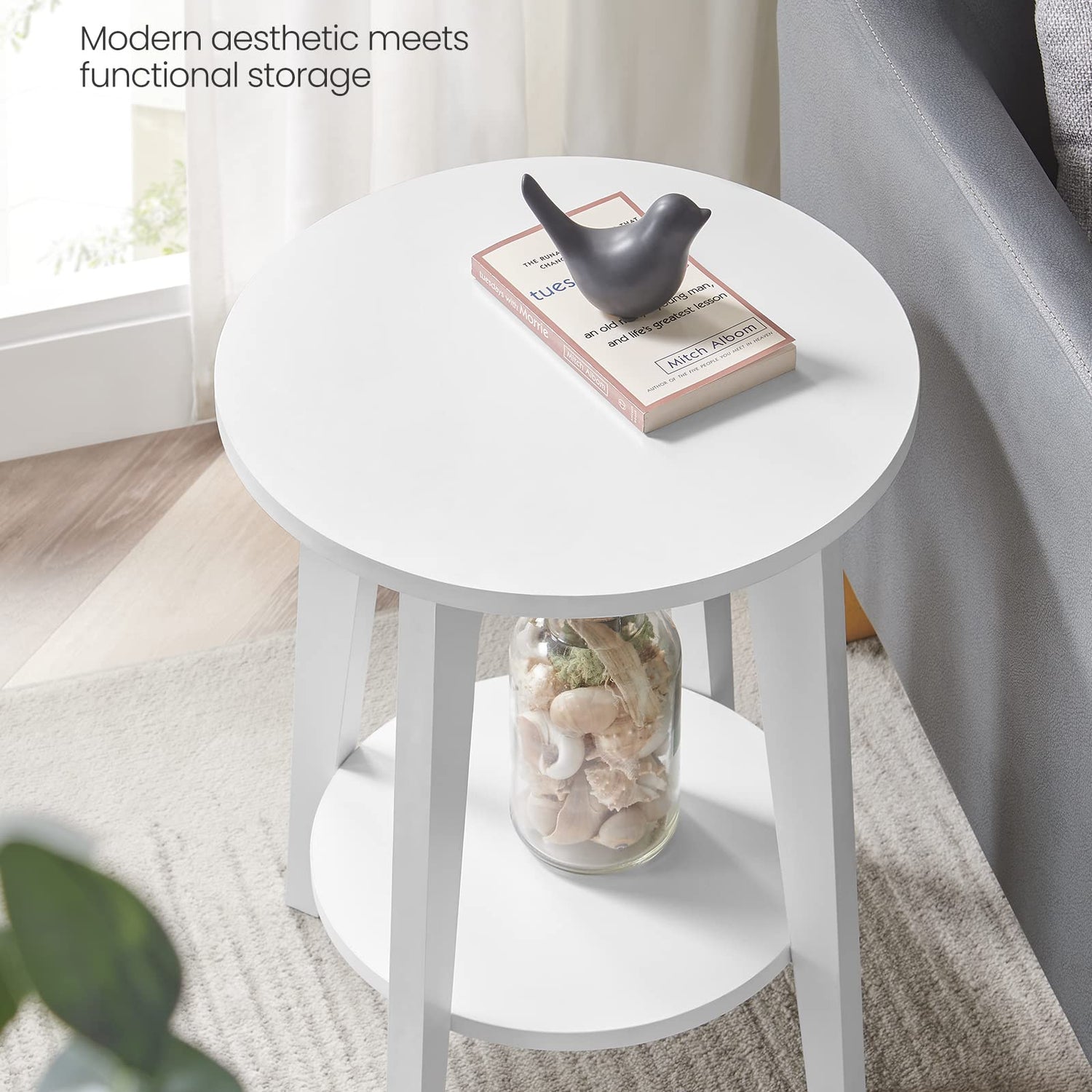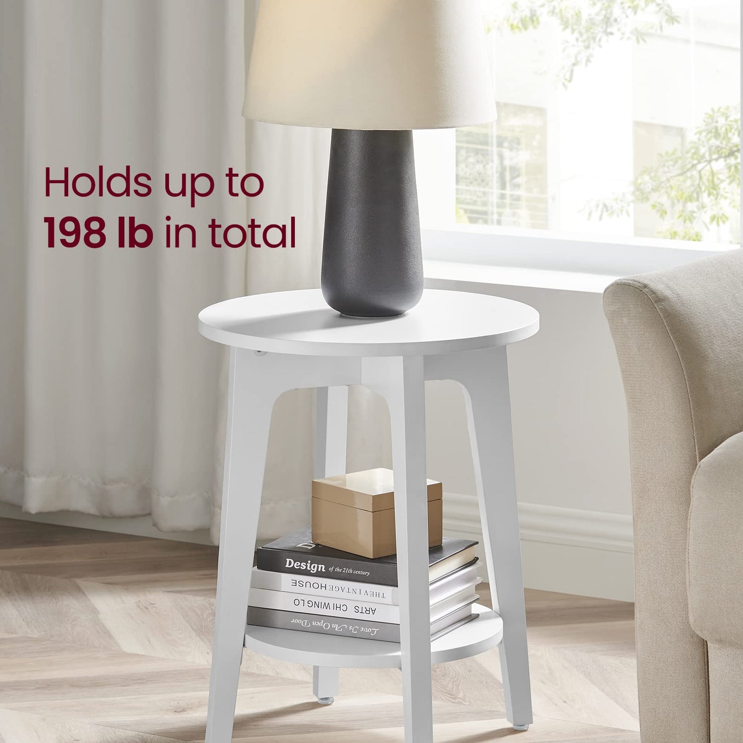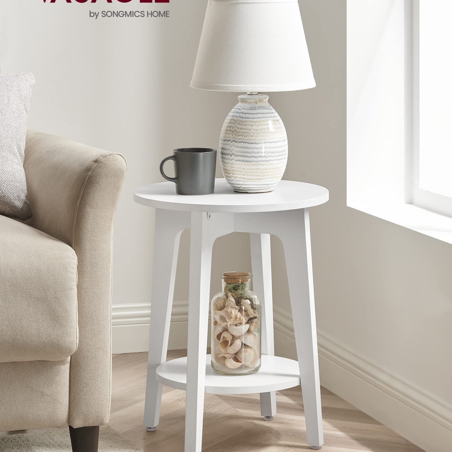 VASAGLE Side Table, Small Round End Table with Lower Shelf, Nightstand for Small Spaces, Living Room, Bedroom, White ULET283T14