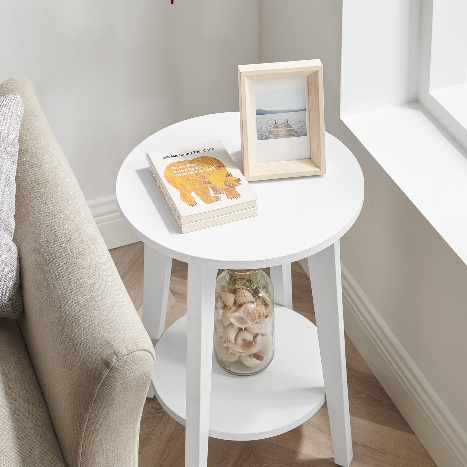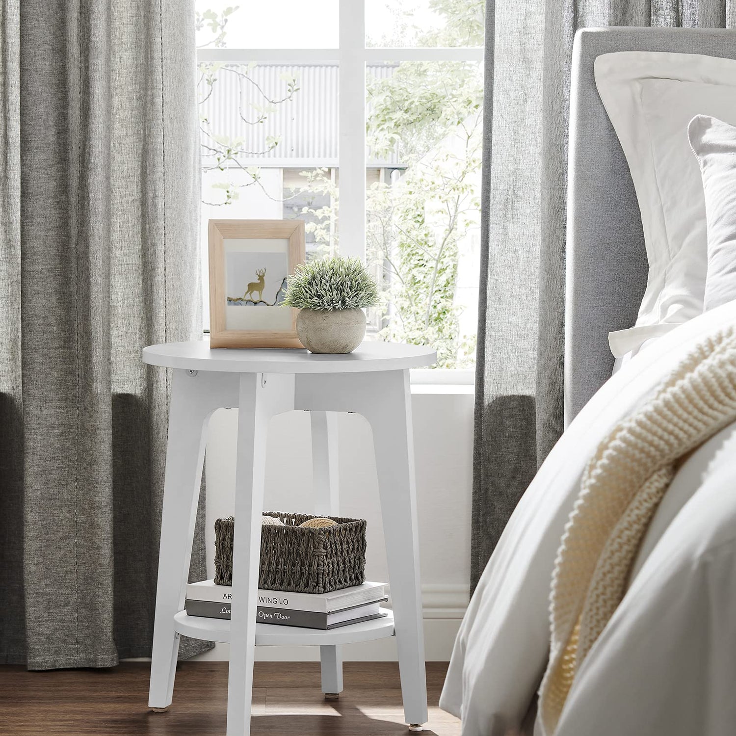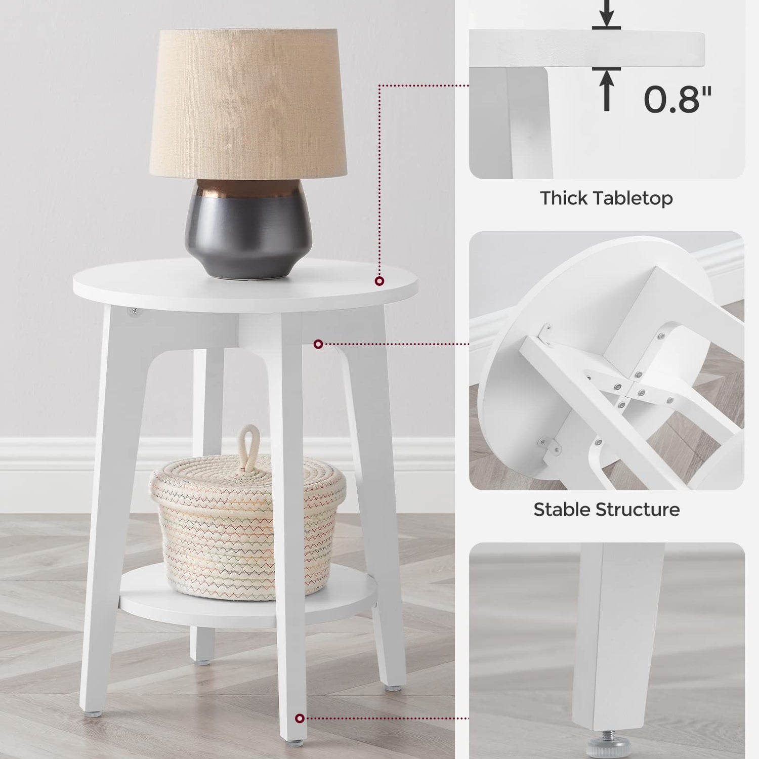 VASAGLE Side Table, Small Round End Table with Lower Shelf, Nightstand for Small Spaces, Living Room, Bedroom, White ULET283T14