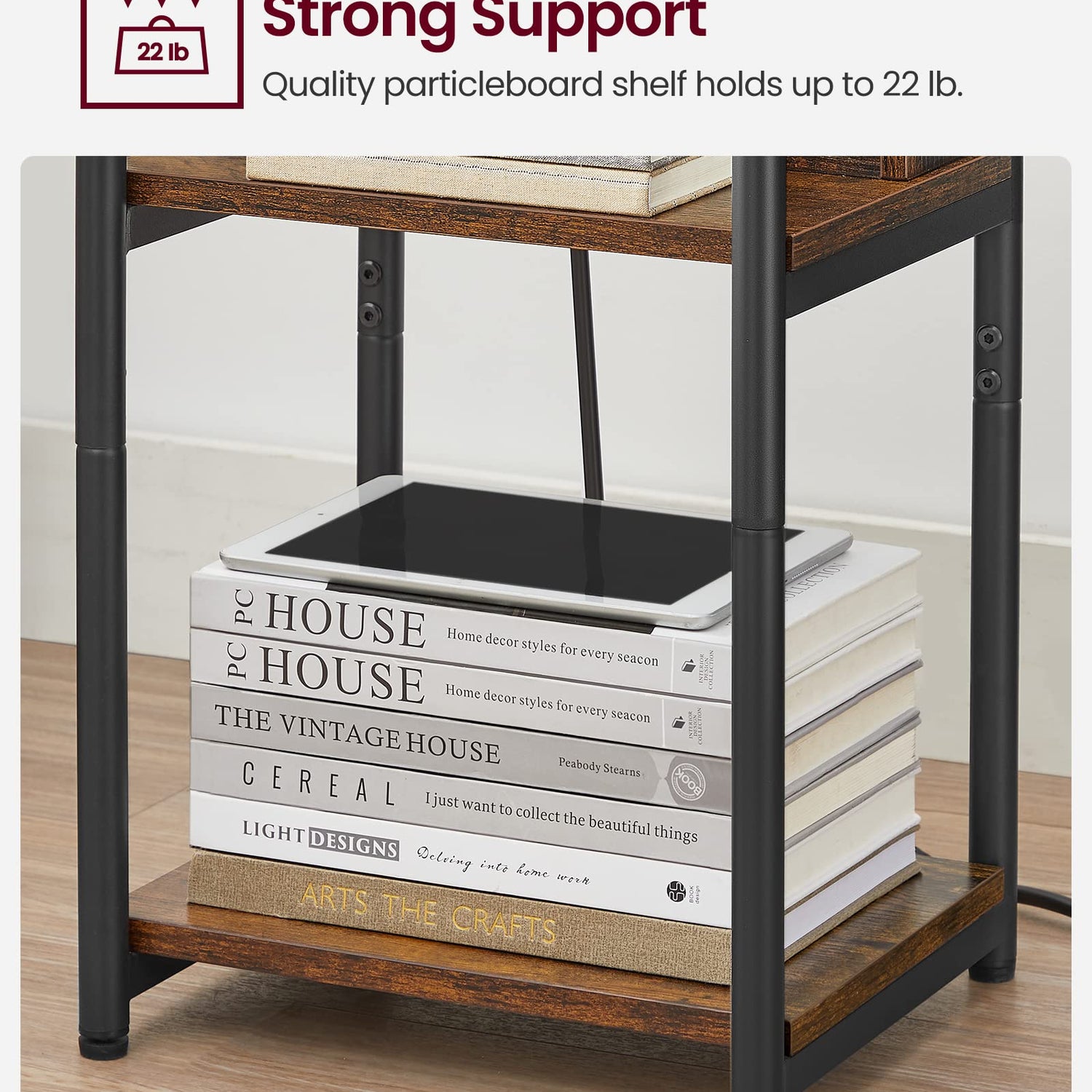- [Stable and Strong] With a robust steel frame, premium particleboard panels, and adjustable feet, this side table will support items firmly and reliably (max. load 22 lb for table top, 22 lb for each shelf)