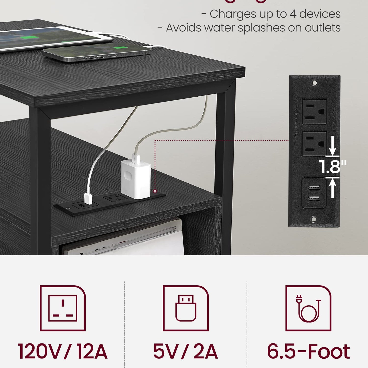- [Attached Power Strip] Power up your devices with our side table featuring a built-in charging station with 2 AC outlets, 2 USB ports, and a 6.5 ft cable, keeping your space organized and free from messy cords