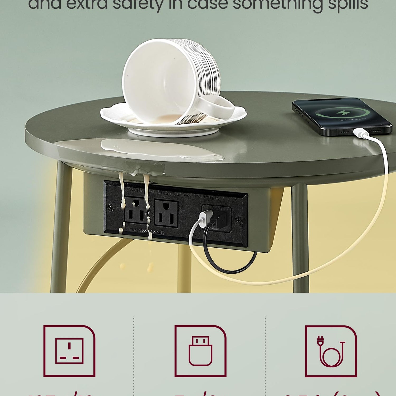 - [Built-in Charging Station] This small side table is equipped with 2 AC outlets and 2 USB ports under the top, allowing you to charge your lamp, phone, tablet, and other devices conveniently without having to search for outlets