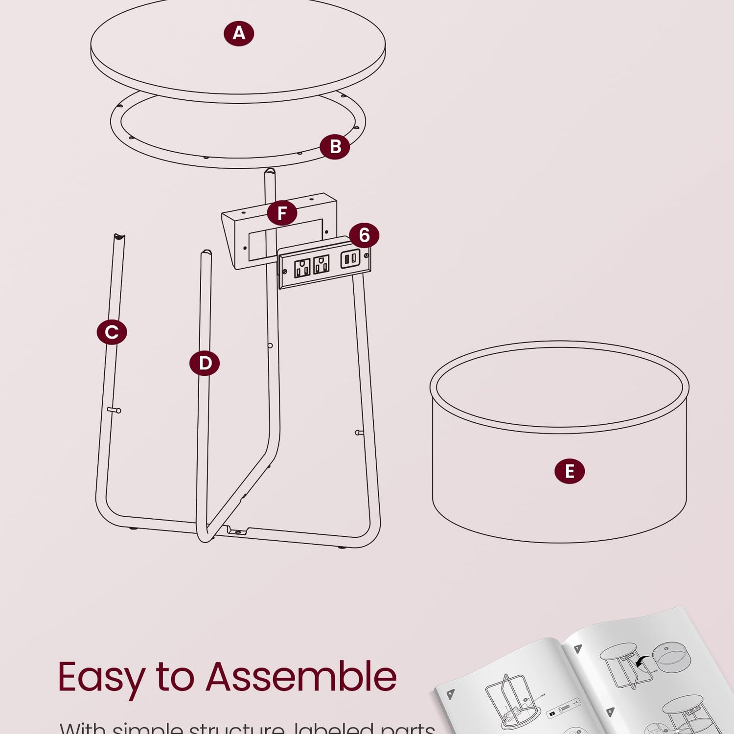 - [Easy Assembly] With its intuitive design, clear instructions, and numbered parts, this side table with charging station can be set up in just 10-15 minutes
