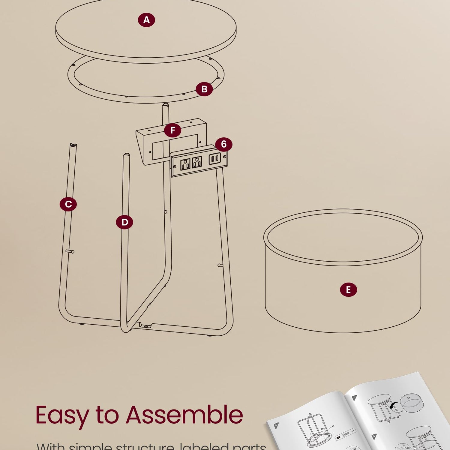 - [Easy Assembly] With its intuitive design, clear instructions, and numbered parts, this side table with charging station can be set up in just 10-15 minutes