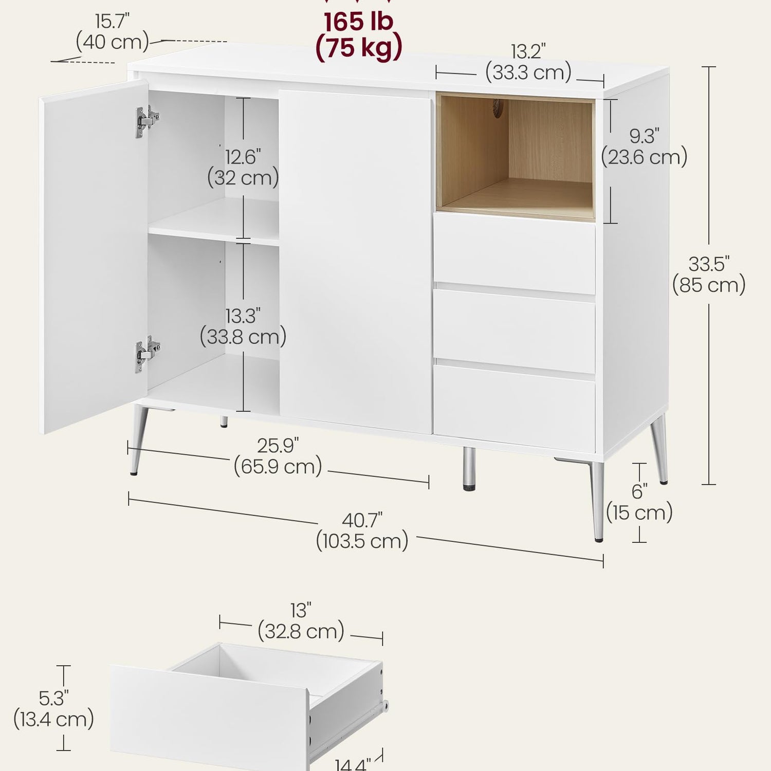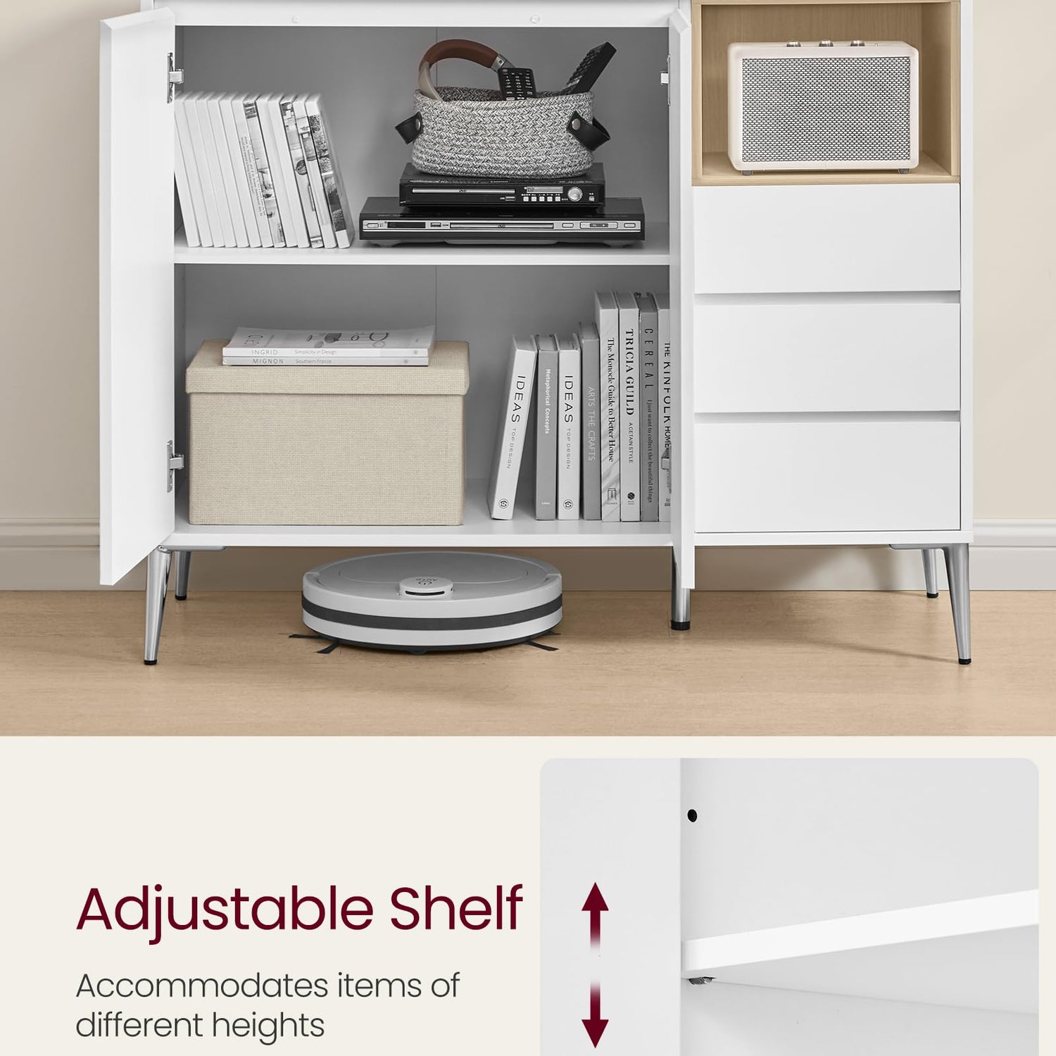 VASAGLE Sideboard, Buffet Cabinet with Doors and Height Adjustable Shelf, 3 Drawers, Open Compartment, Modern, 15.7 x 40.7 x 33.5 Inches, for Living Room, Kitchen, Study, Cloud White UBBK273W11