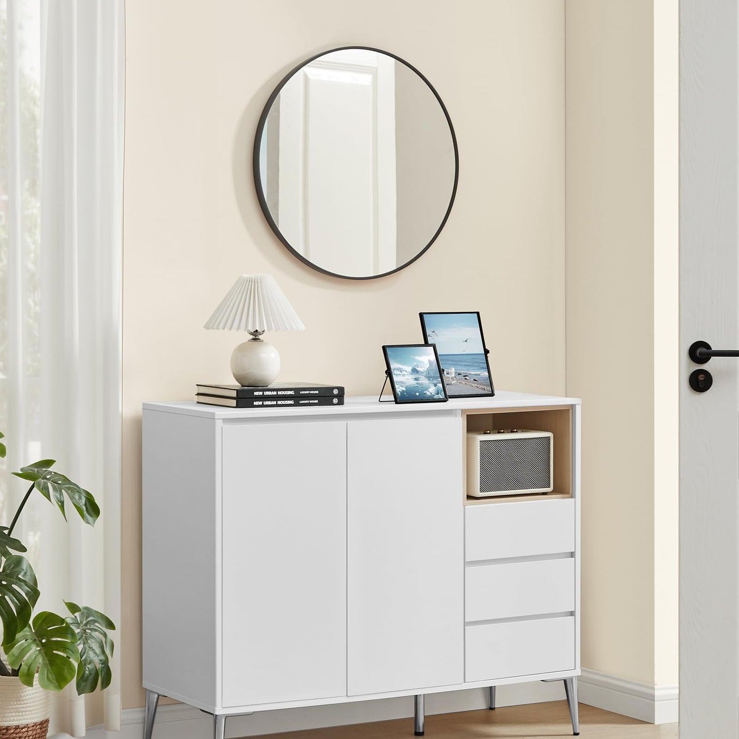 - [Minimalist Aesthetic] Sleek lines and clean white color lend this storage cabinet a minimalist, modern appeal that fits seamlessly into a variety of decor styles and rooms, including the living room, entryway, dining room, or study