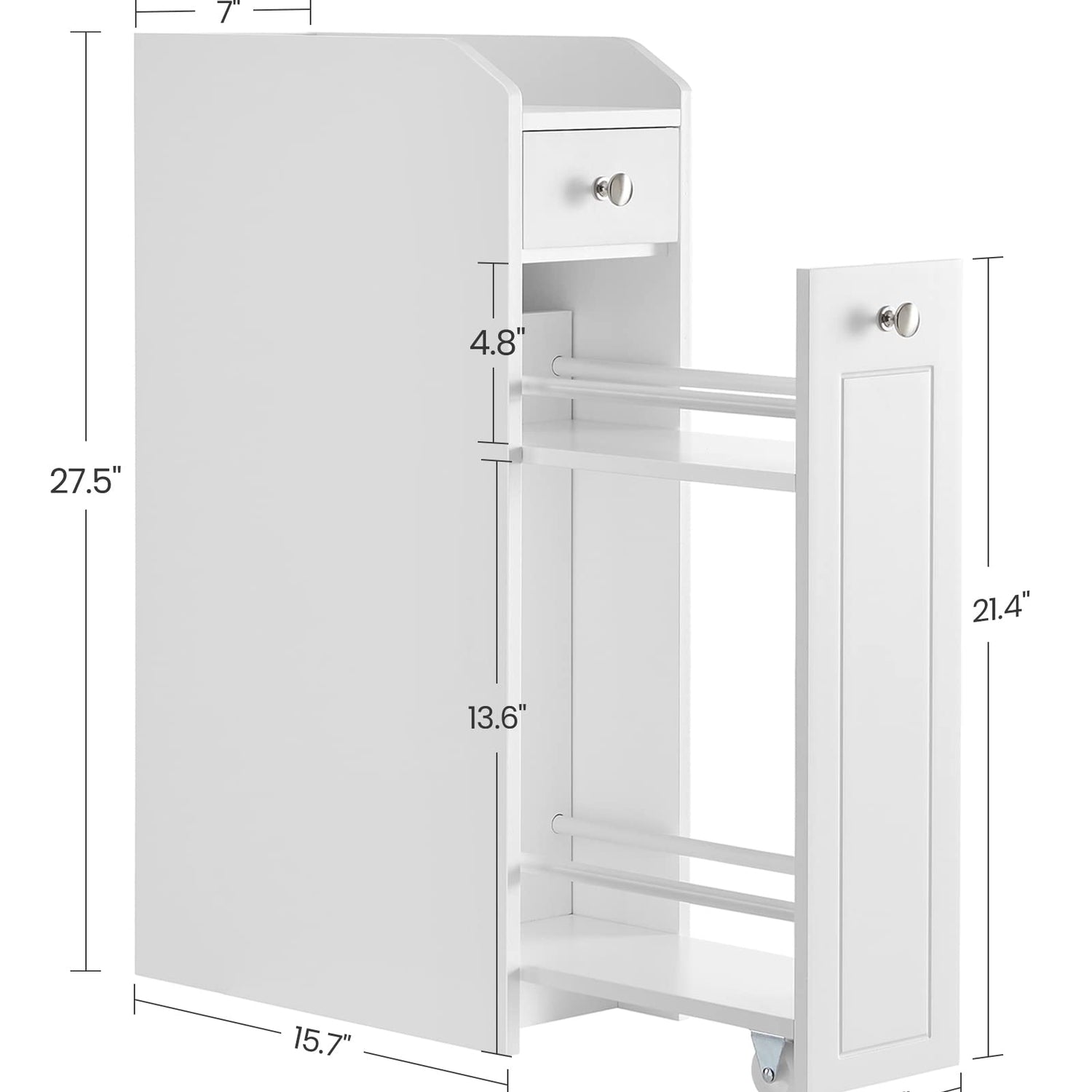 - [Versatile for Small Spaces] This 15.7"D x 7"W x 27.5"H small storage cabinet can easily fit the narrow space between the toilet and the wall in your bathroom or tight spaces in your kitchen to add extra storage
