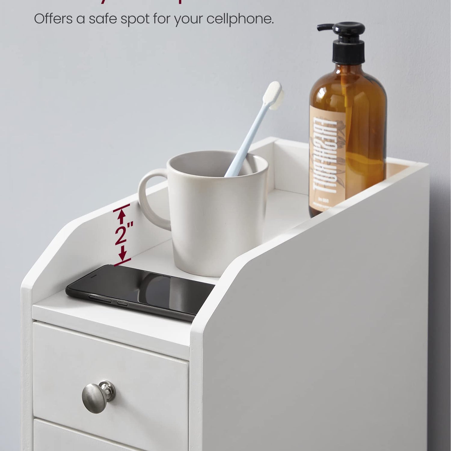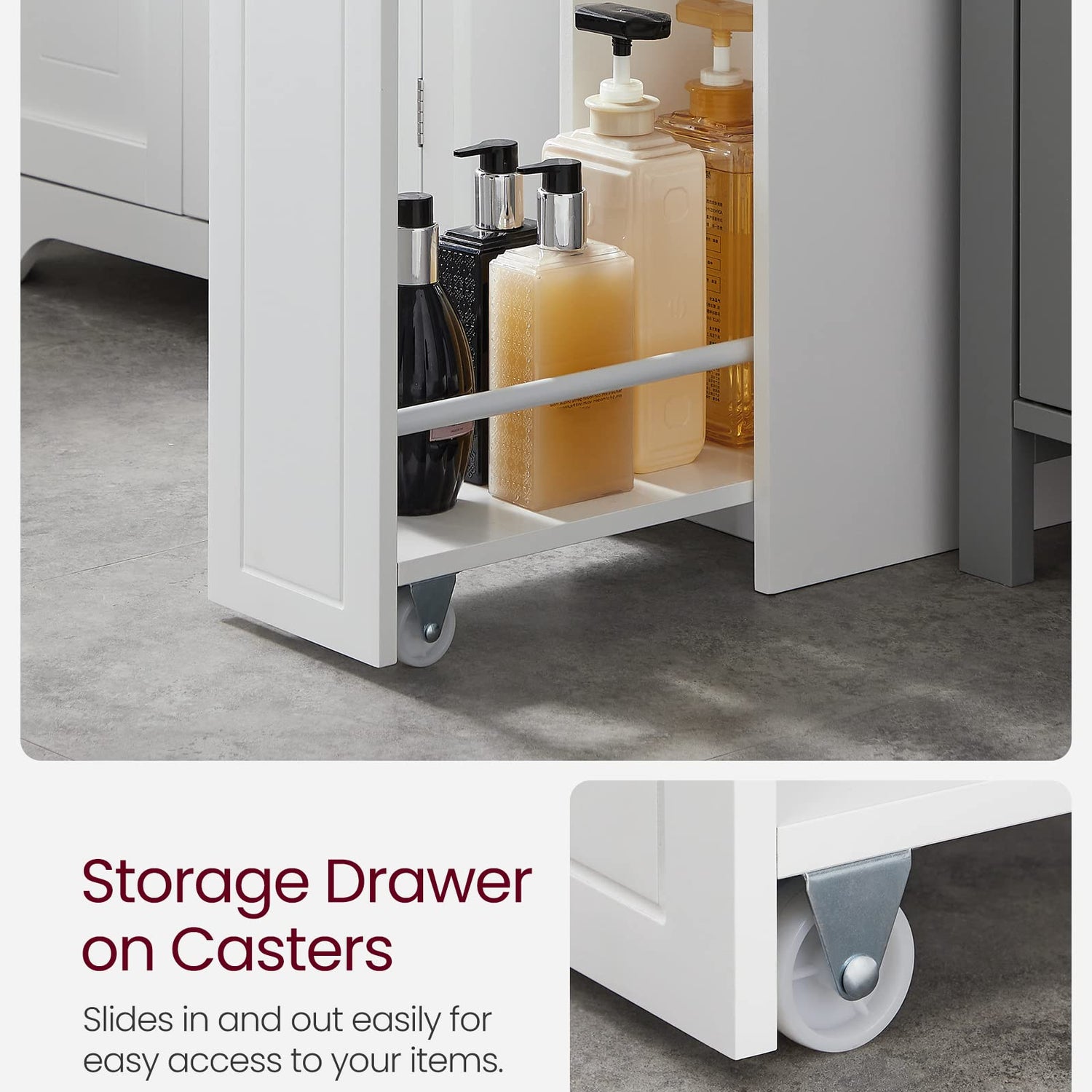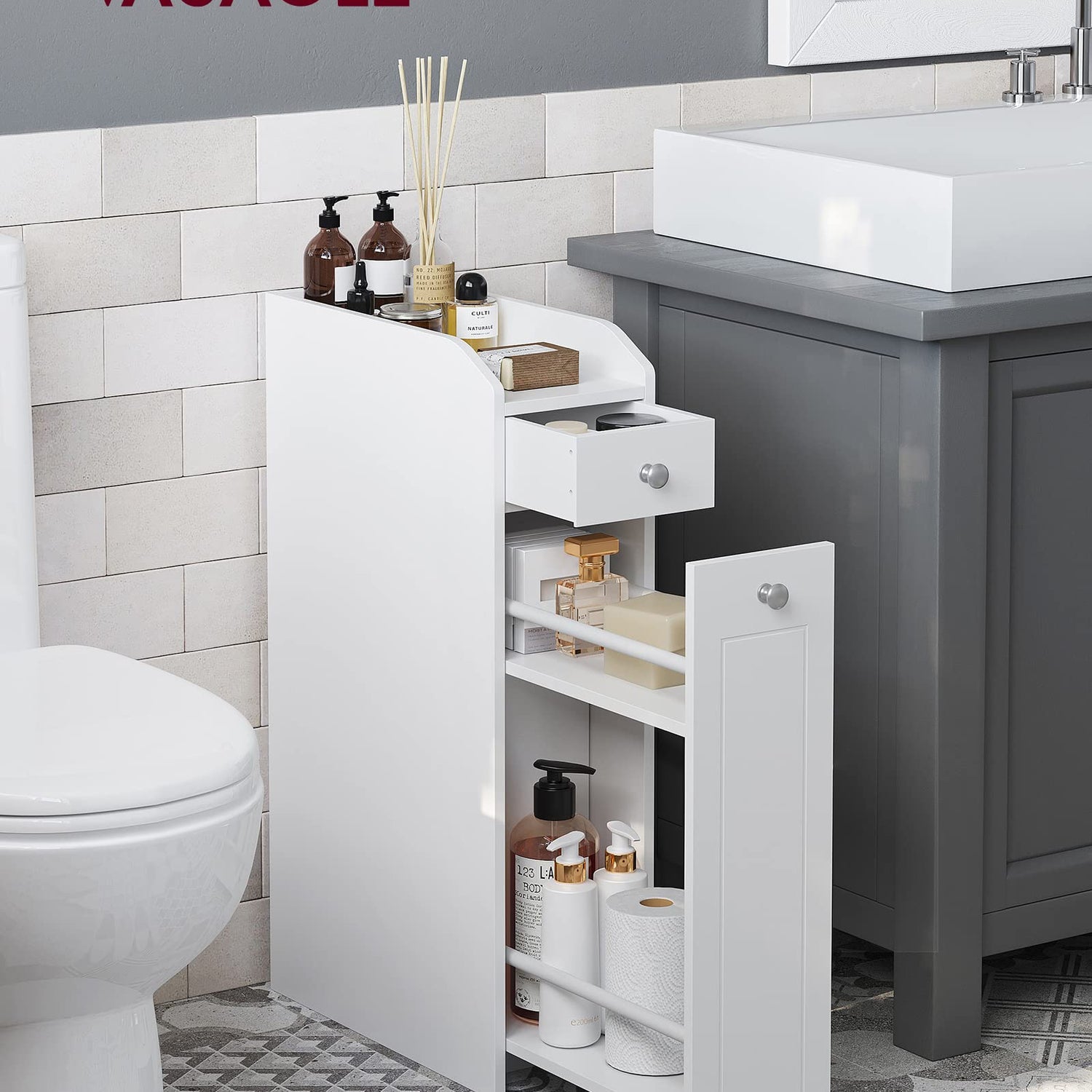 VASAGLE Small Bathroom Storage Cabinet, Slim Bathroom Storage Organizer, Toilet Paper Holder with Storage, Toilet Paper Storage Cabinet with Slide Out Drawers, for Small Spaces, White UBBC847P31