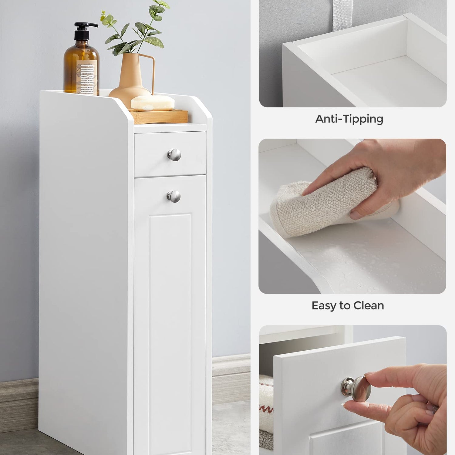 - [Stable and Durable] Quality MDF is sturdy and durable and the anti-tip kit prevents the cabinet from tipping over to ensure safe use—this is a robust slim bathroom storage cabinet you can trust!