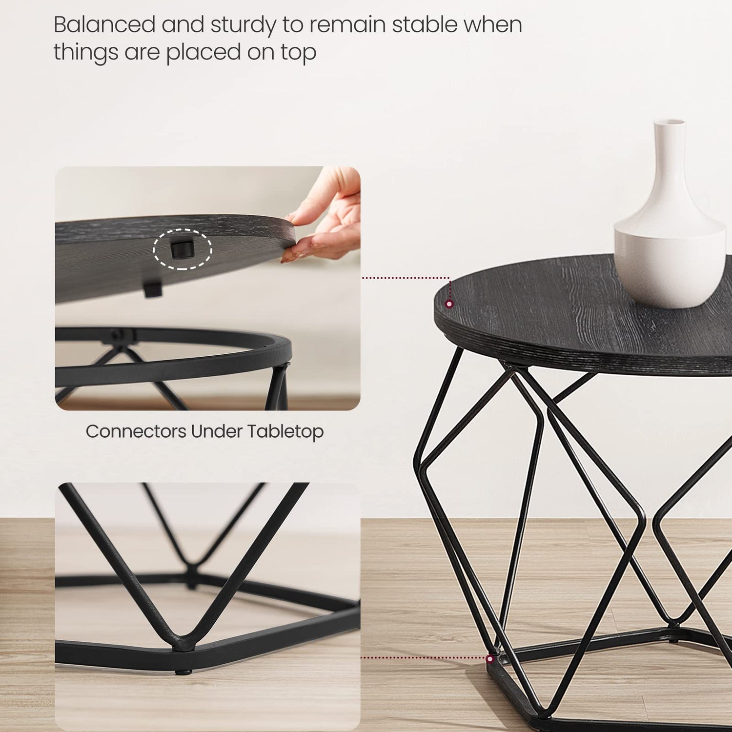 VASAGLE Small Coffee Table Set of 2, Round Coffee Table with Steel Frame, Side End Table for Living Room, Bedroom, Office, Charcoal Gray and Ink Black