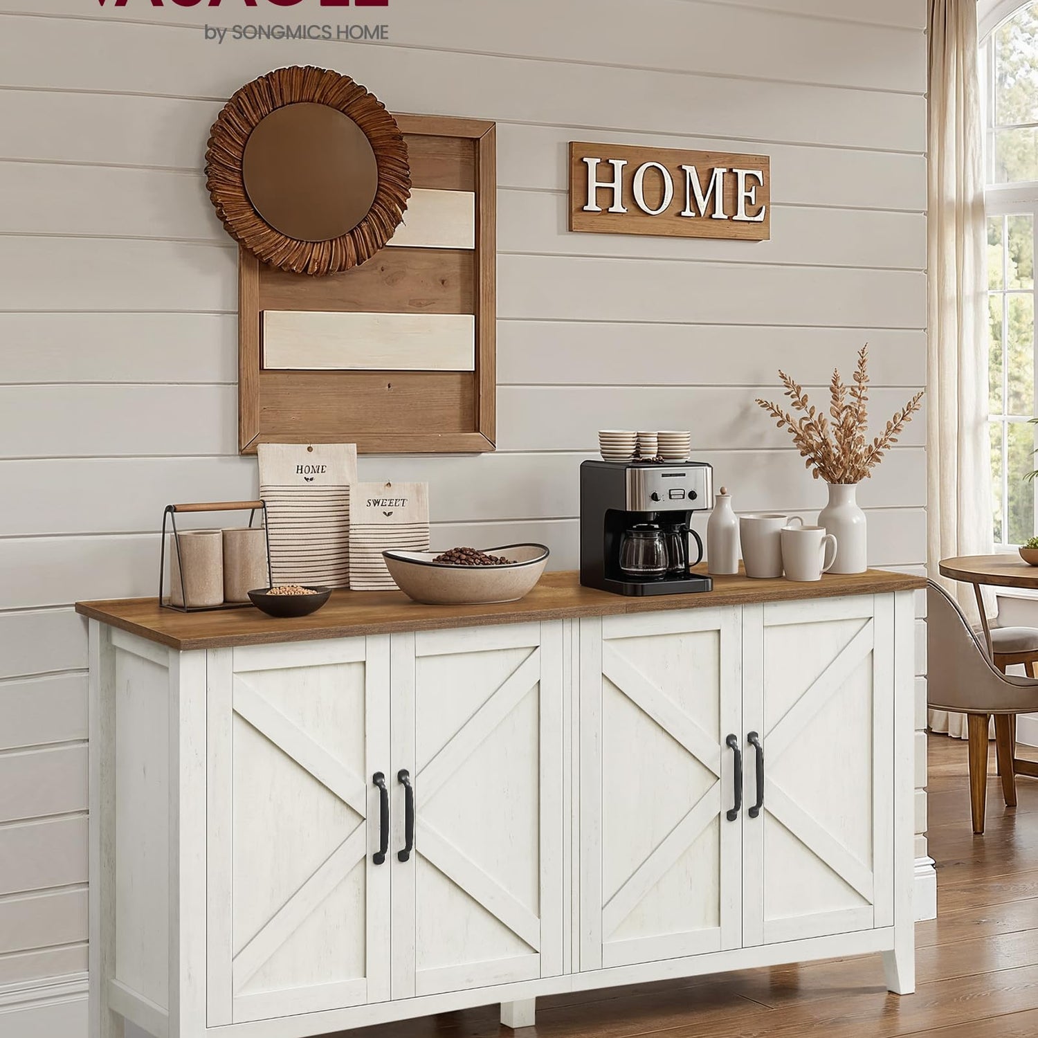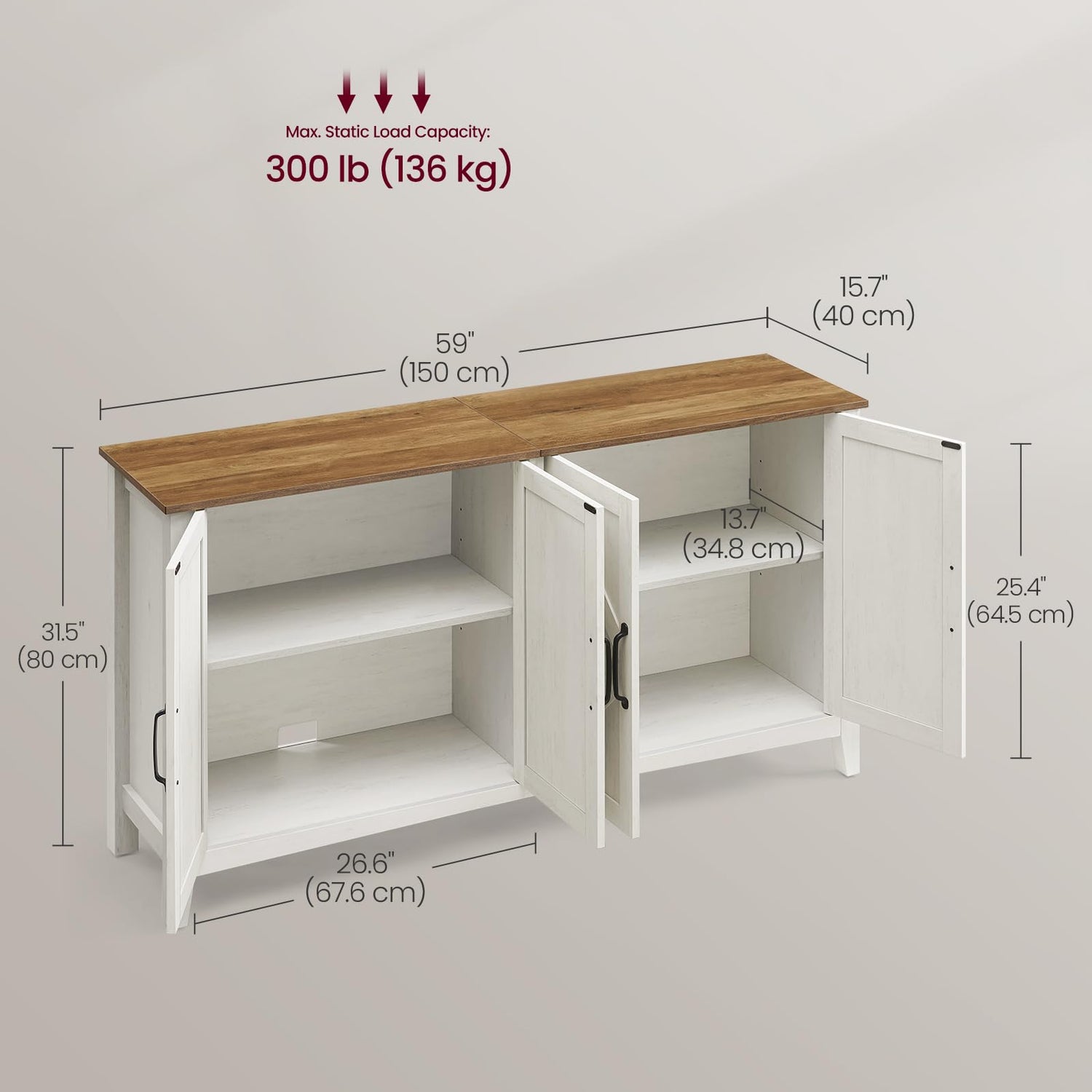 VASAGLE Storage Cabinet, Buffet Cabinet, Sideboard, Credenza, with Adjustable Shelves, for Living Room, Entryway, Rustic White and Honey Brown ULSC381W01
