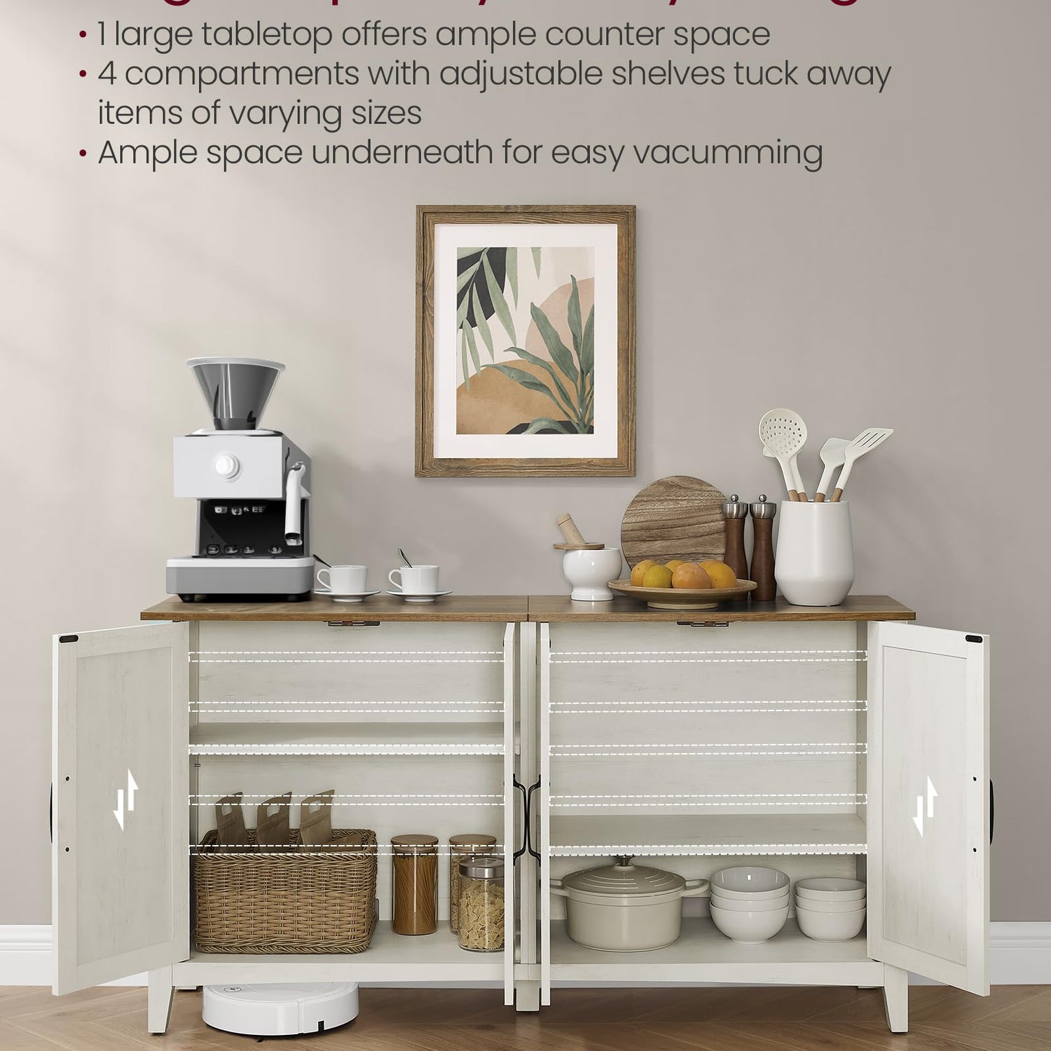 - [Storage with Farmhouse Style] Elevate your storage game with this remarkable storage cabinet! The 4-door rustic white and honey brown cabinet adds a farmhouse flair to your home while offering ample storage space