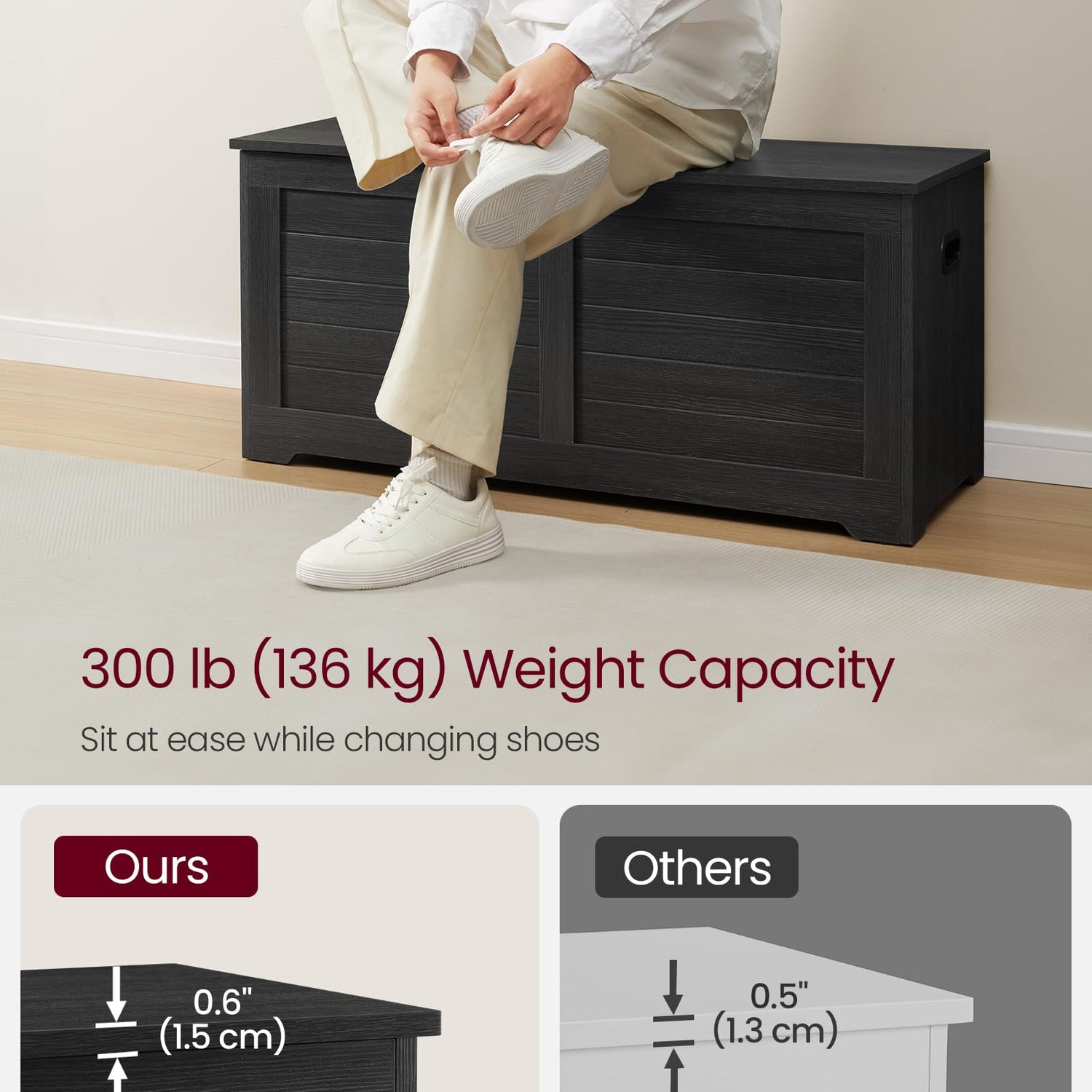 - 【GREAT LOAD CAPACITY】Made of quality particleboard, the bench supports up to 300 lb and the hidden compartment holds up to 132 lb, allowing you to sit down and change shoes at ease and store lots of items