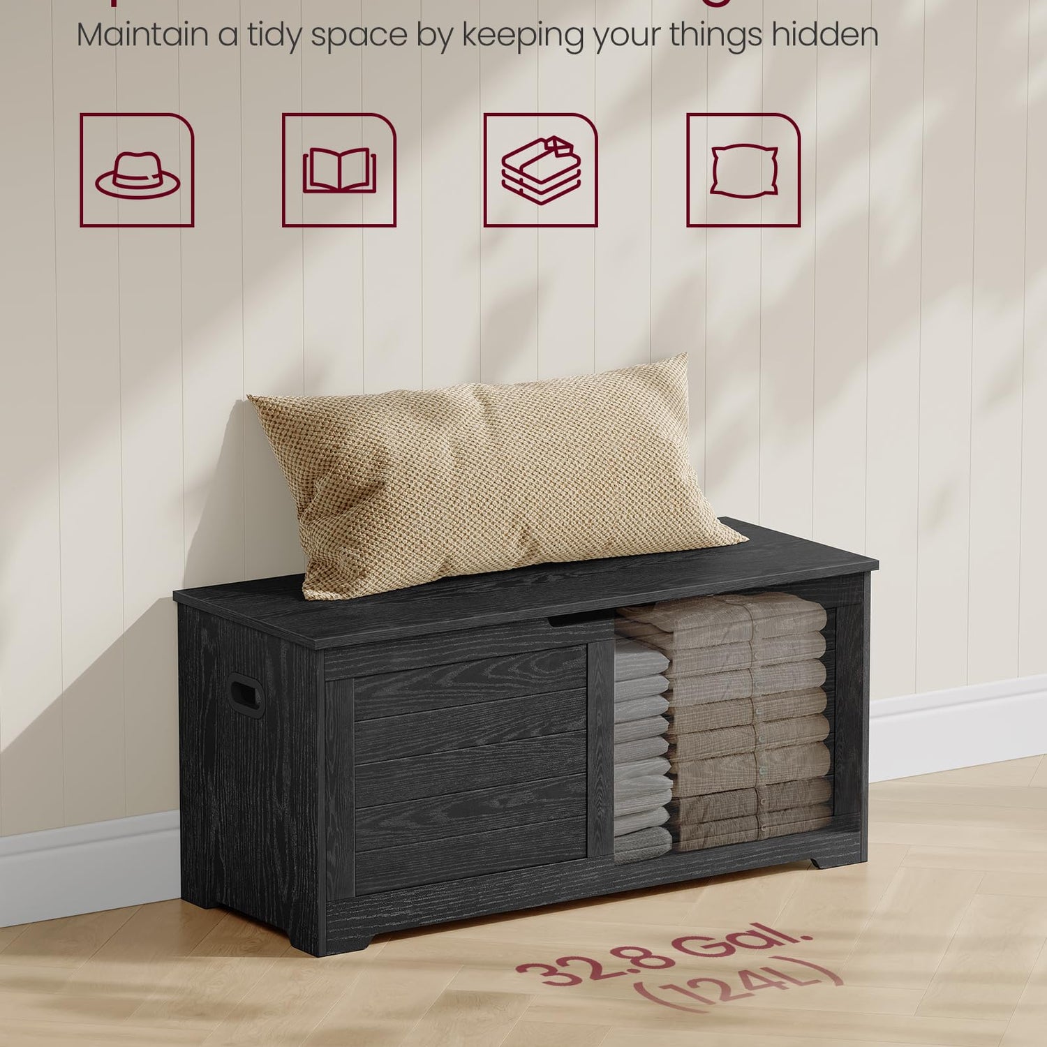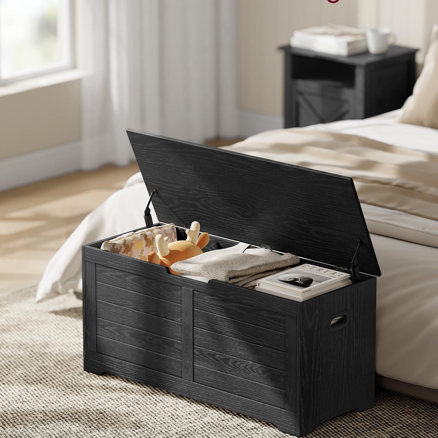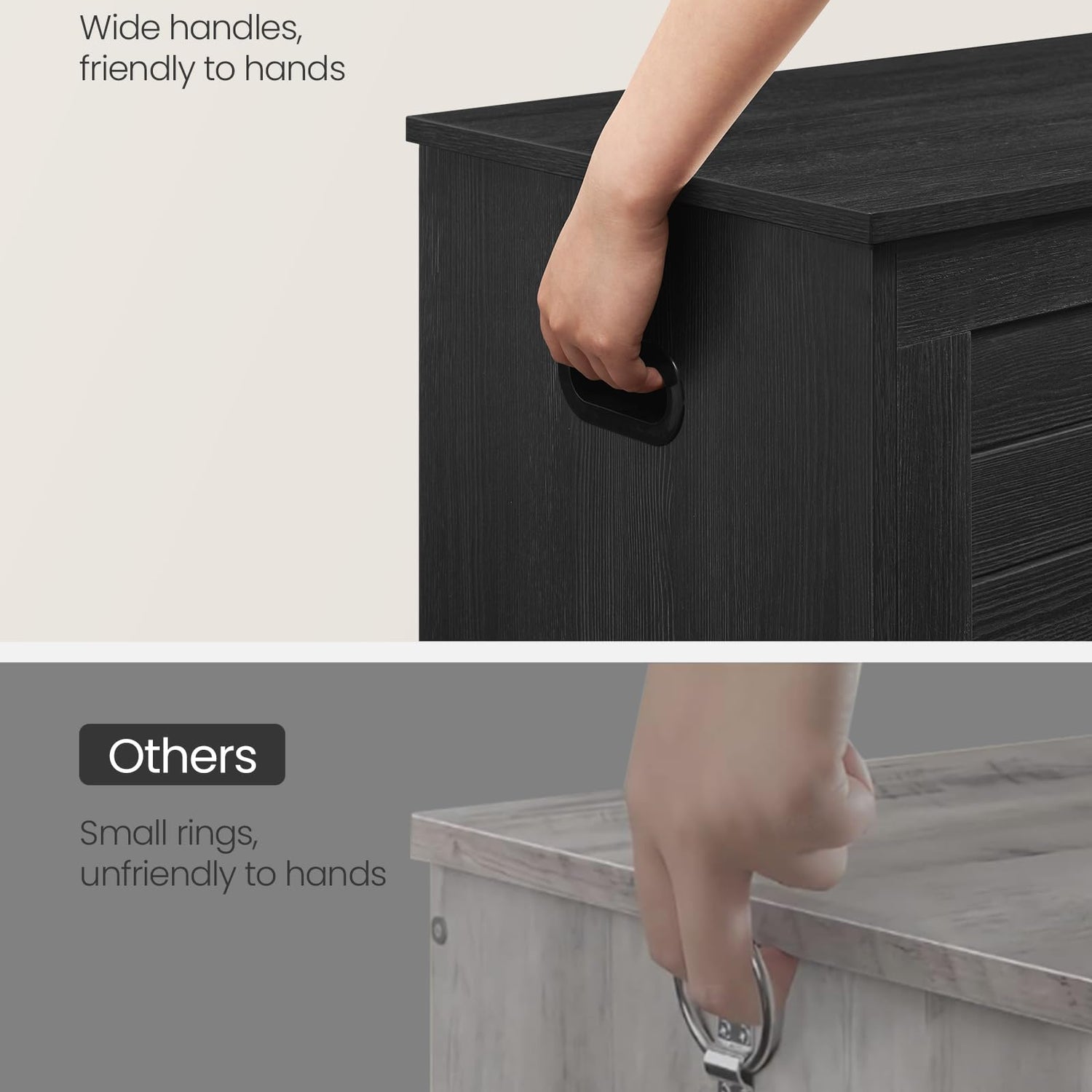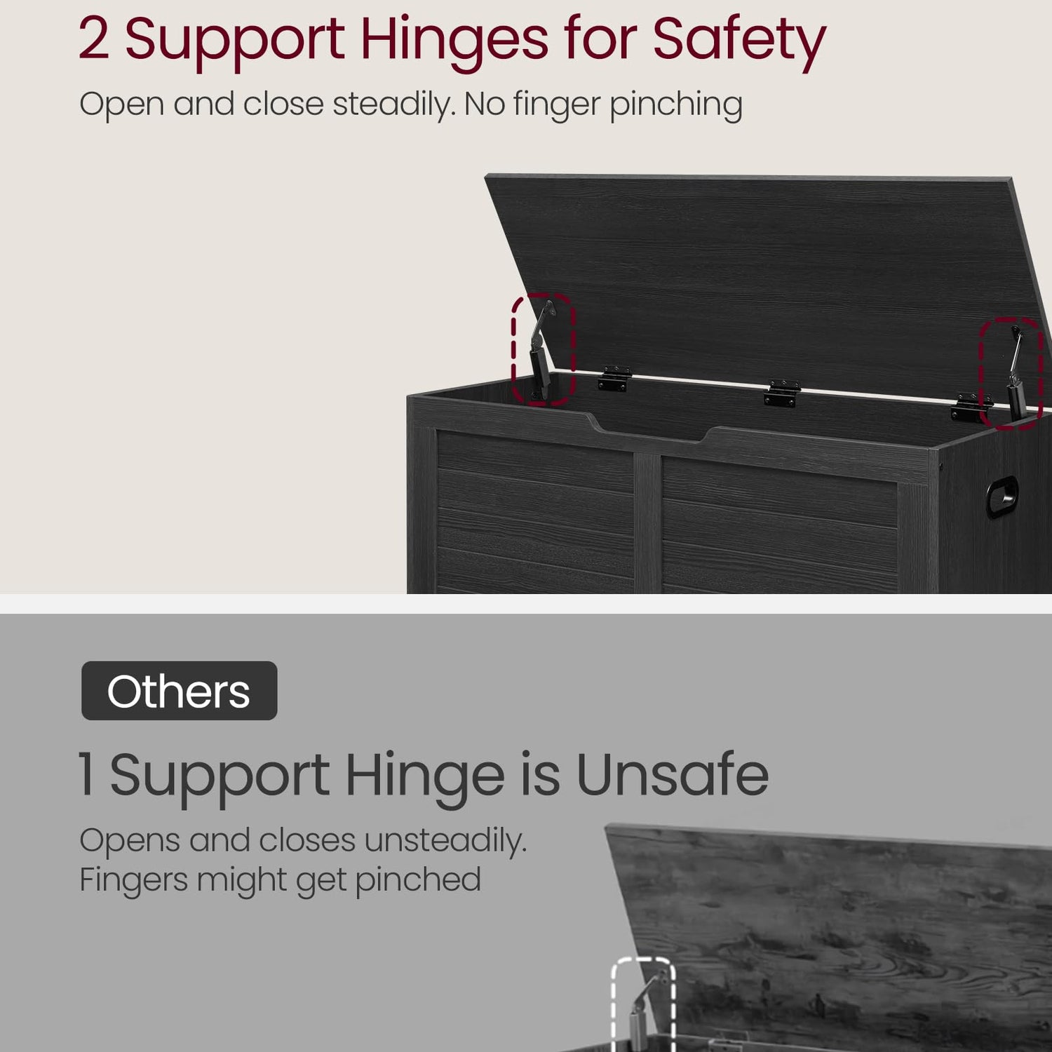 - 【2 HINGES, STEADIER AND SAFER】Thanks to the 2 quality hinges, the lid of this storage chest can stay securely open at any angle—no slamming shut, no pinched fingers!