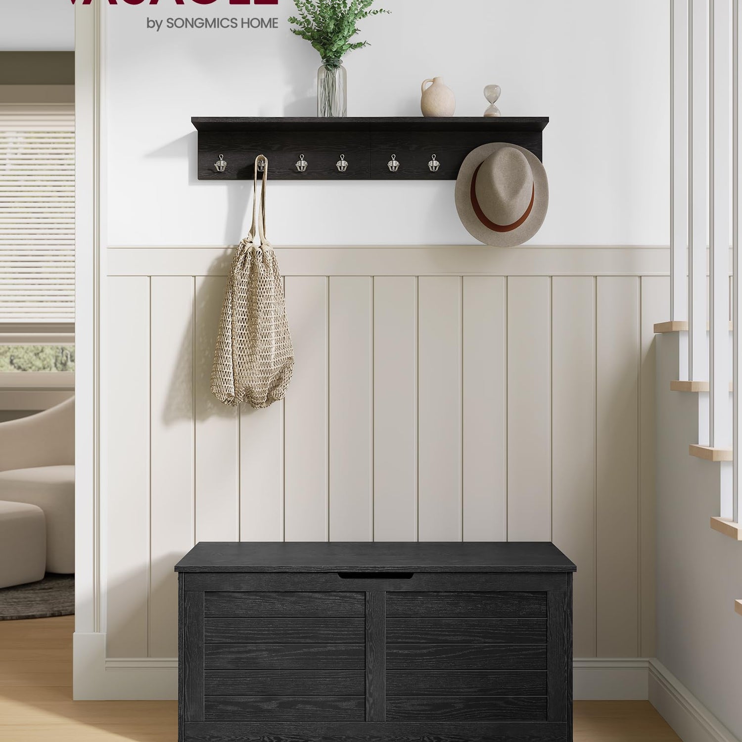 VASAGLE Storage Chest, Storage Trunk with 2 Safety Hinges, Storage Bench, Shoe Bench, Farmhouse Style, 15.7 x 39.4 x 18.1 Inches, for Entryway, Bedroom, Living Room, Ebony Black ULSB061B01