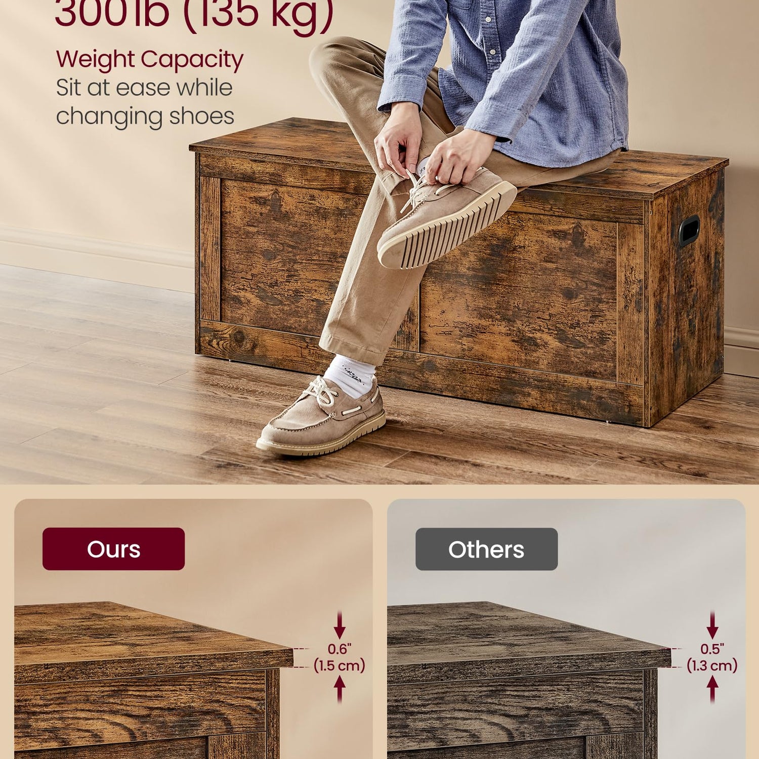 - 【STRONG AND STEADY】This shoe bench can hold up to 300 lb on top and 132 lb inside the compartment, so you can sit and change your shoes without any worries