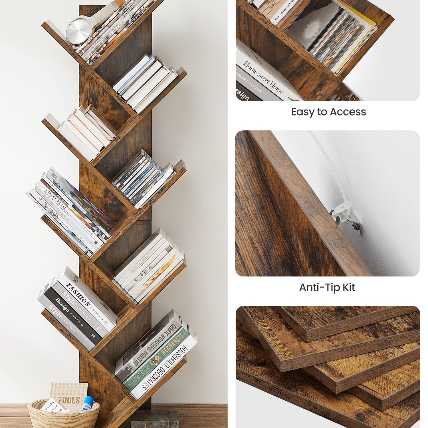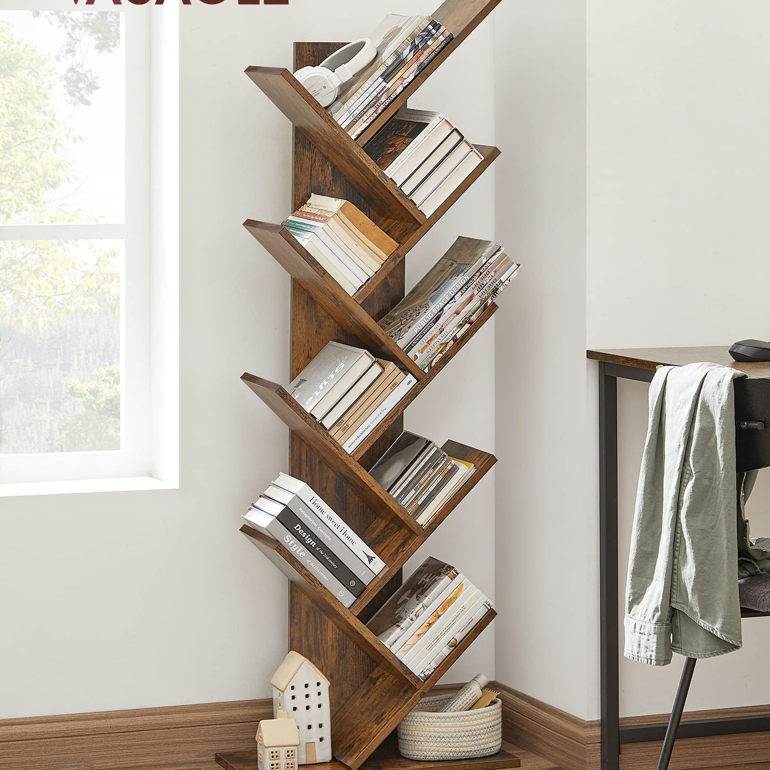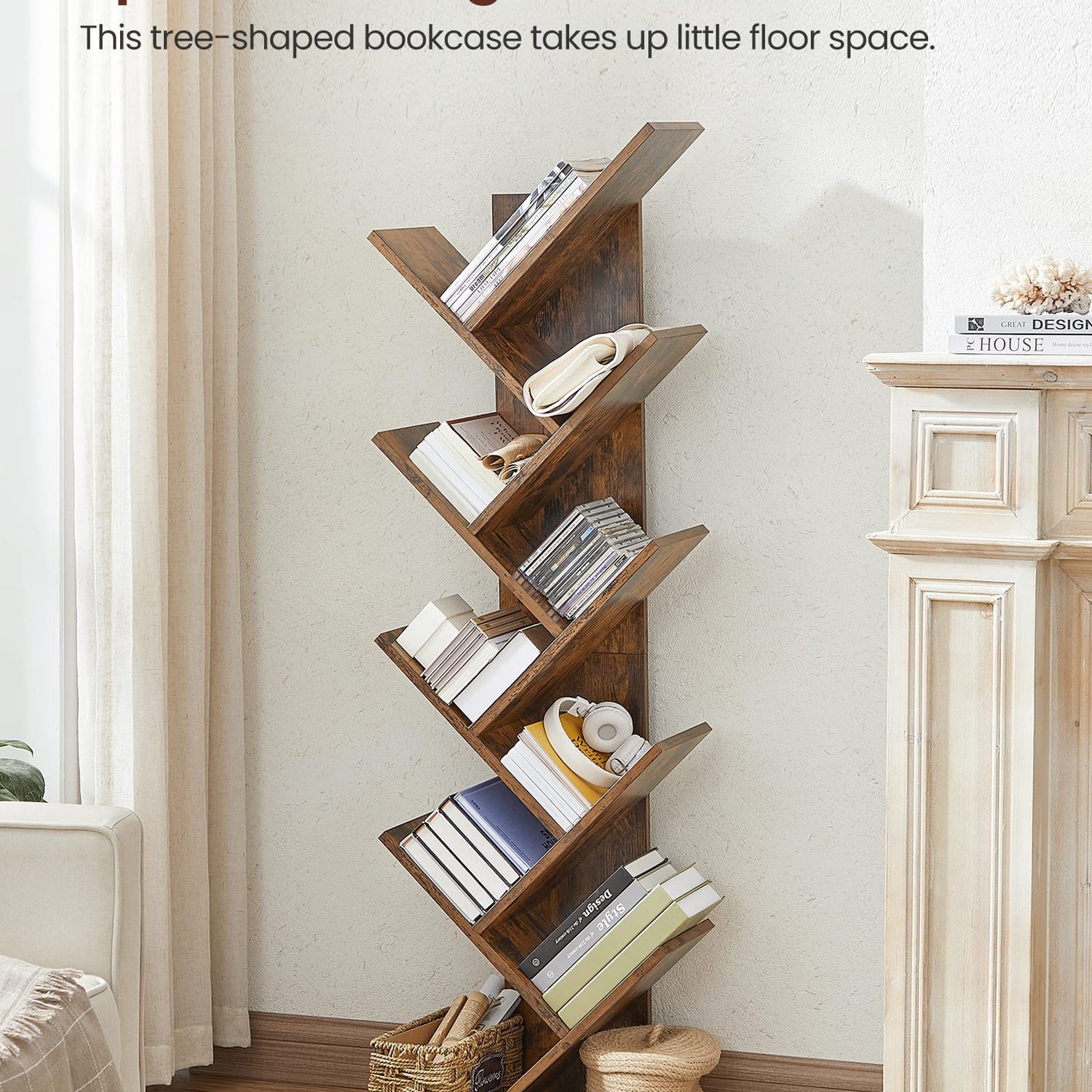 VASAGLE Tree Bookshelf, 9-Tier Bookcase, Large Bookshelf, Space-Saving Corner Shelf, Book Tree, Holds Books, CDs, Games, for Bedroom, Living Room, Home Office, Rustic Brown ULBC11BX