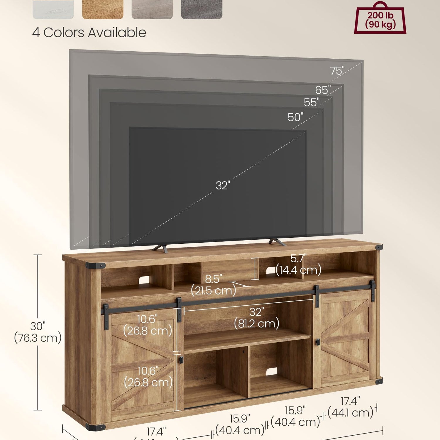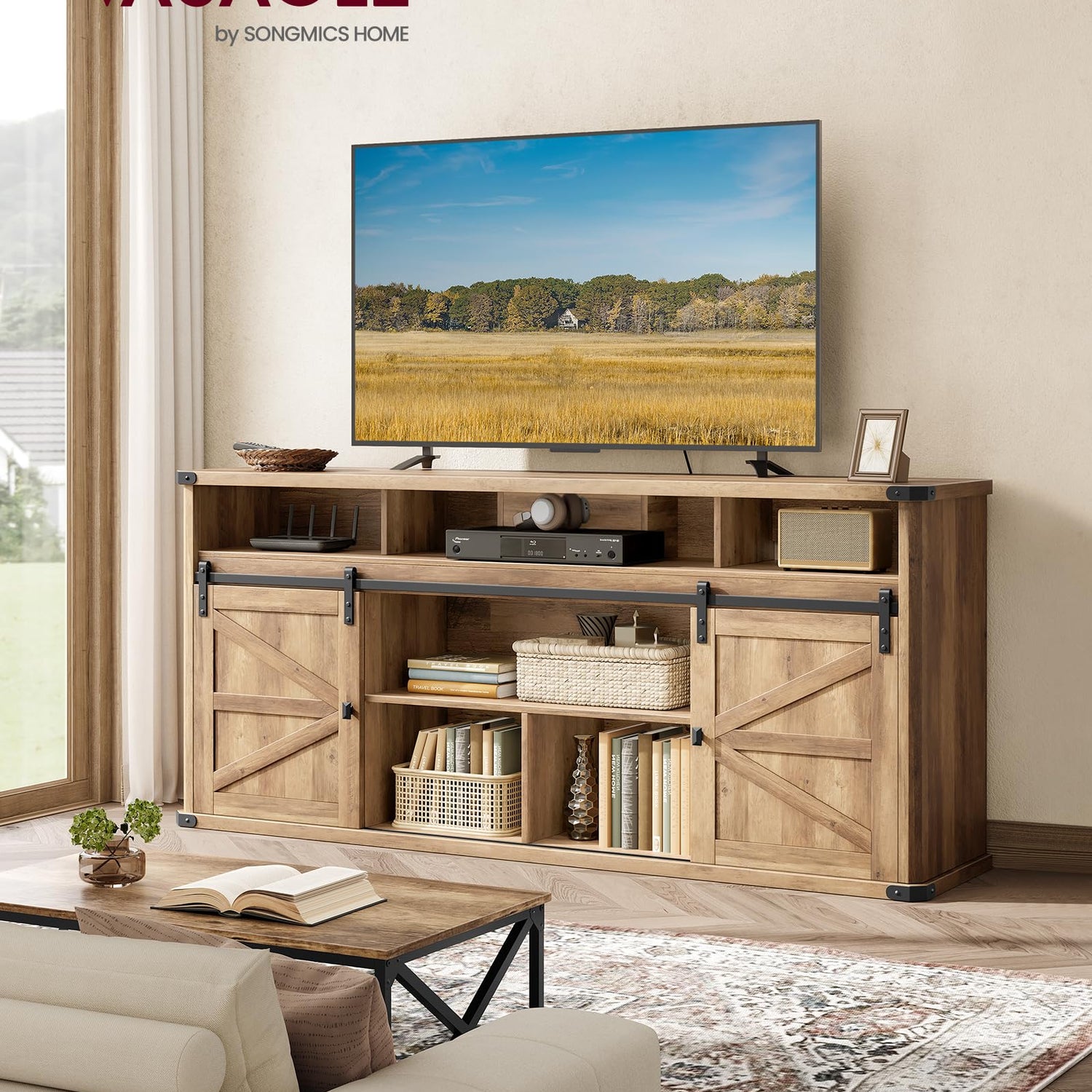 VASAGLE TV Stand for TVs up to 75 Inches, Farmhouse Entertainment Center with Sliding Barn Doors, TV Console Table for Living Room, Honey Brown ULTV323K41