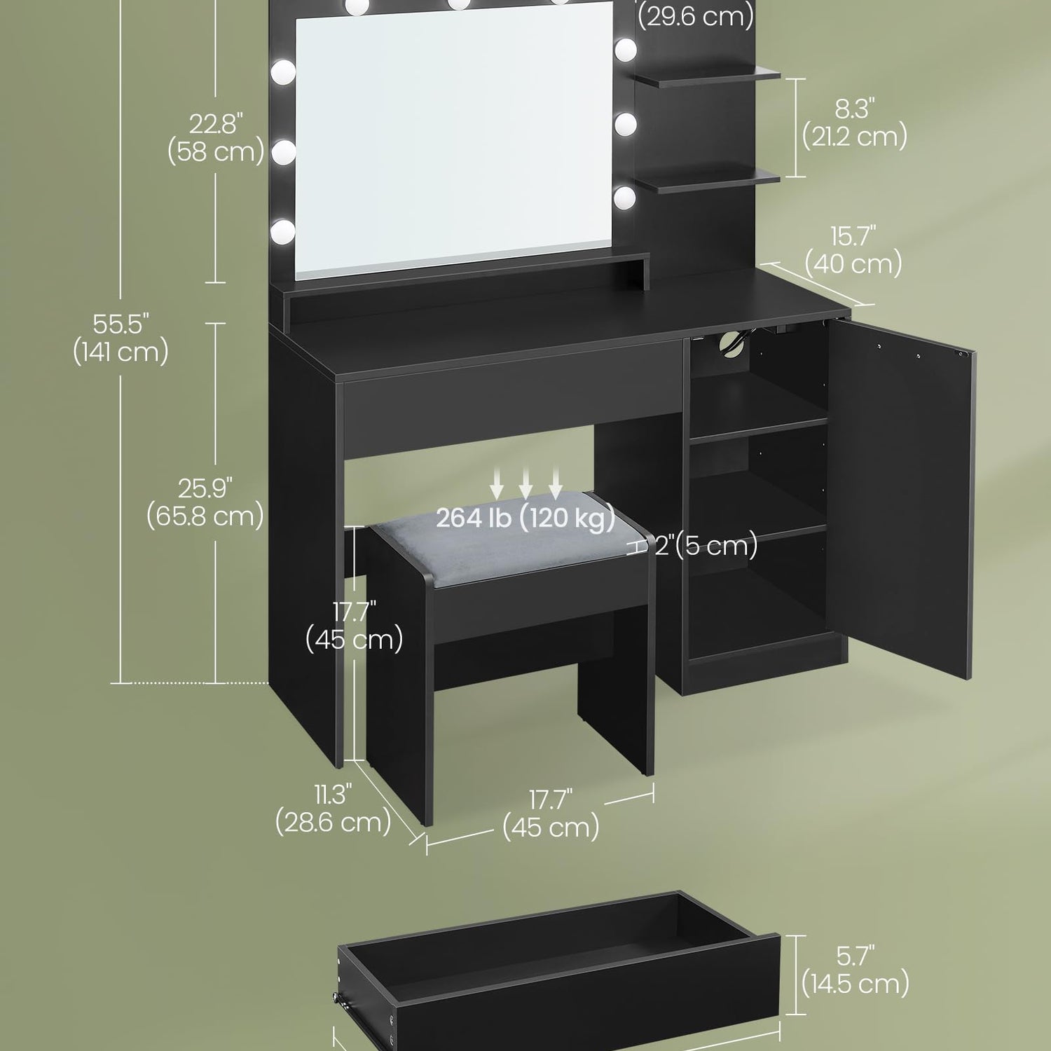 - 【VANITY TABLE SET】This vanity table set includes an upholstered stool, saving you the hassle of finding a matching piece. This cohesive set creates a harmonious look, adding a touch of elegance to your room