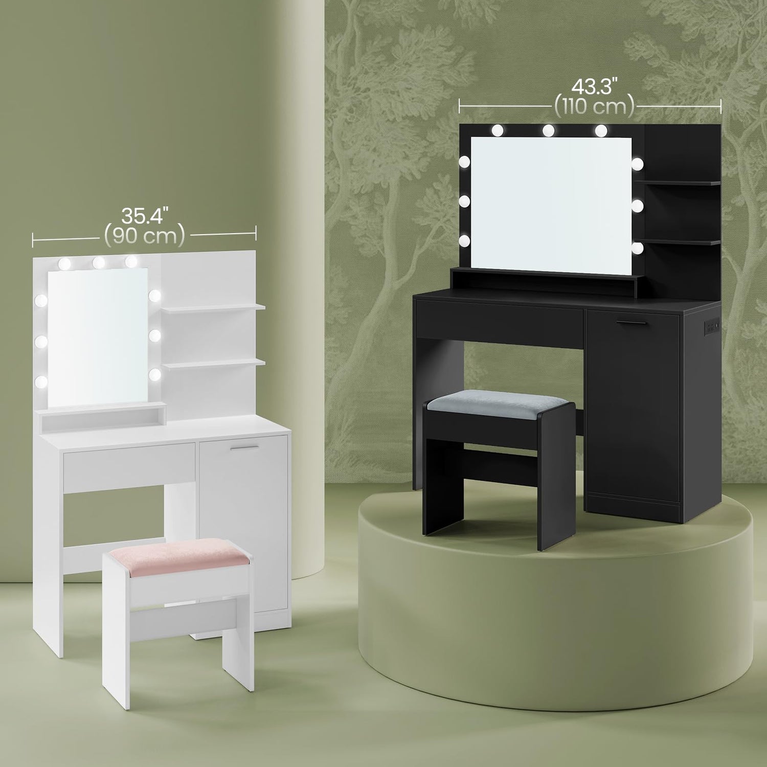 - 【VANITY MIRROR WITH LIGHTS】Enhance your beauty routine with the vanity mirror of this makeup vanity surrounded by 9 adjustable light bulbs. Customize the brightness to suit your needs and achieve flawless makeup application every time
