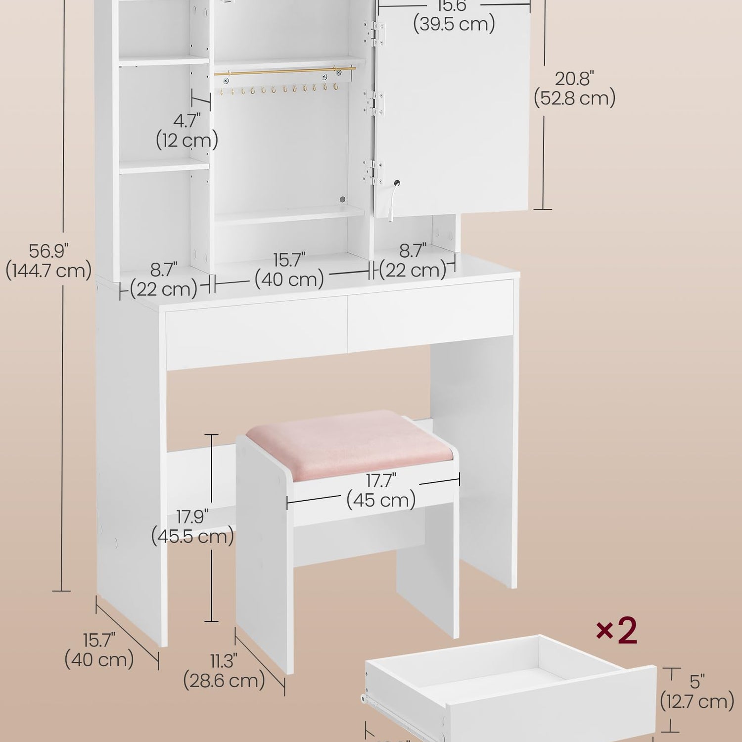 - 【COMFORTABLE SEATING】This dressing table set includes a vanity stool crafted with soft velvet and comfy foam padding, elevating your makeup routine to a comfortable experience
