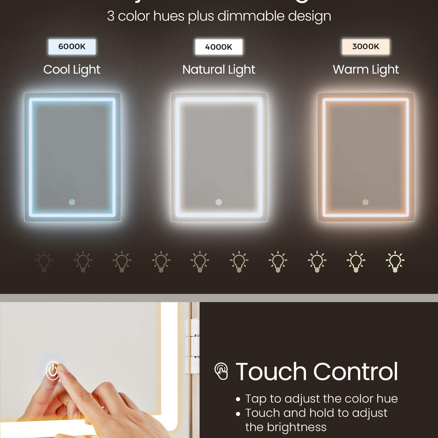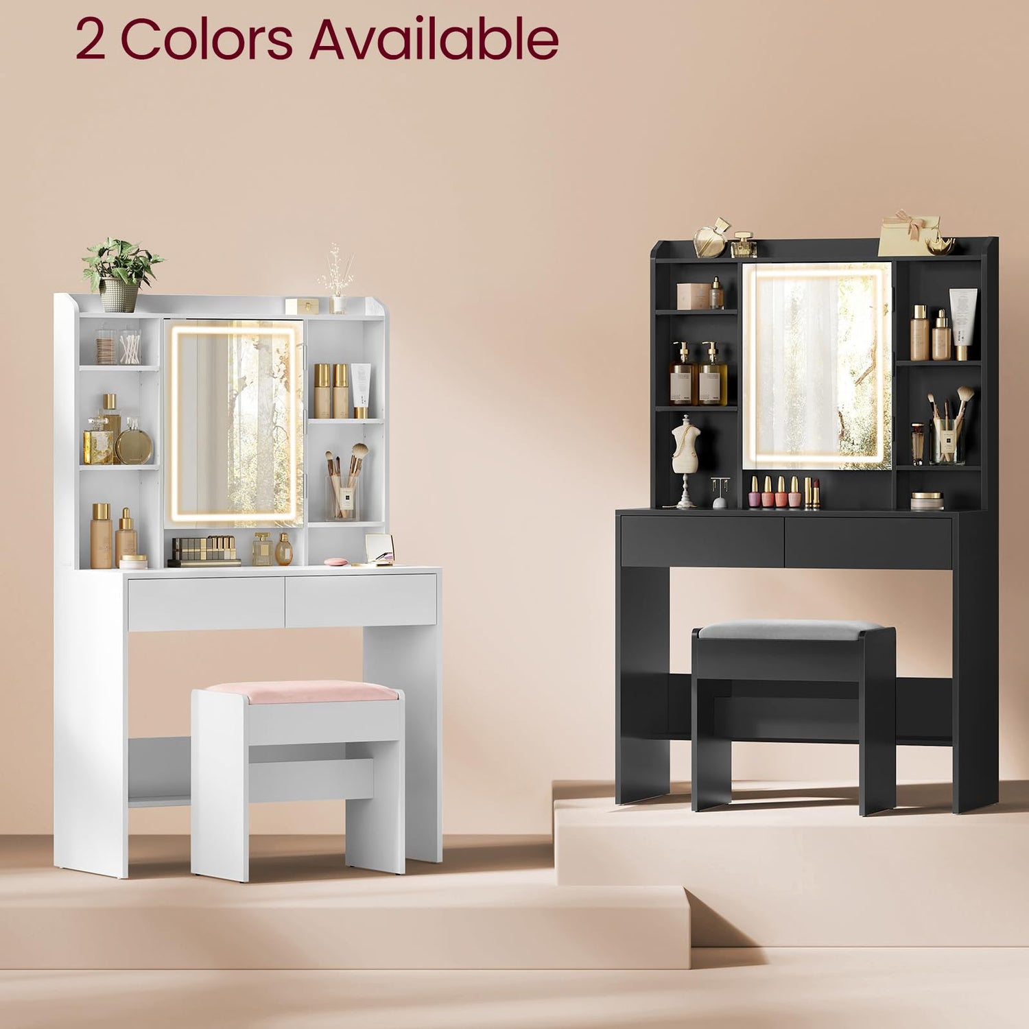 - 【CUSTOMIZABLE MIRROR LIGHTING】Swiftly switch between 3 adjustable LED light colors by shortly tapping the touch button, and set your preferred brightness level with a long press. This vanity table enhances your makeup routine every time