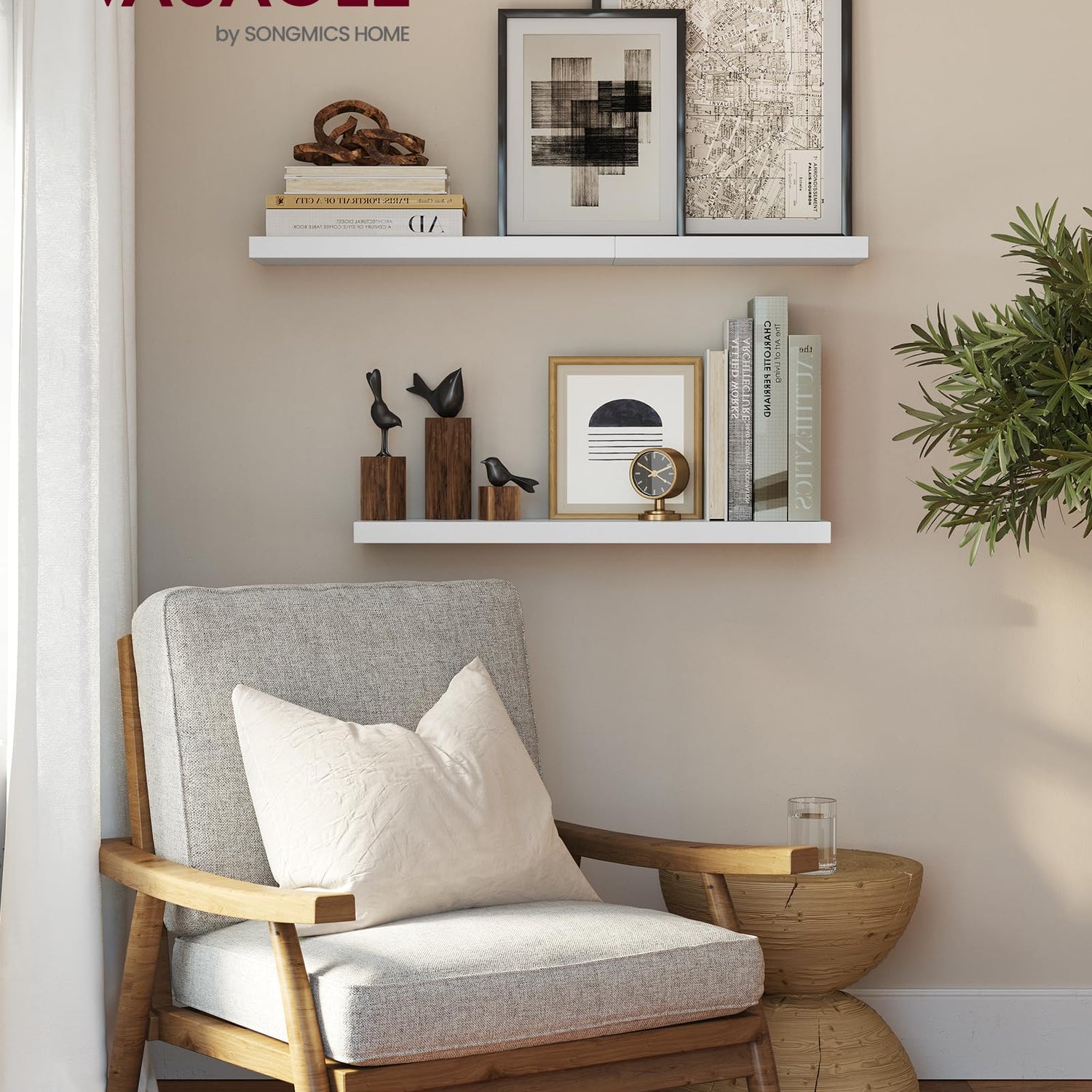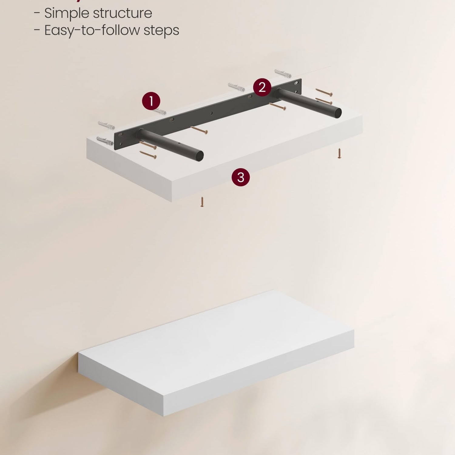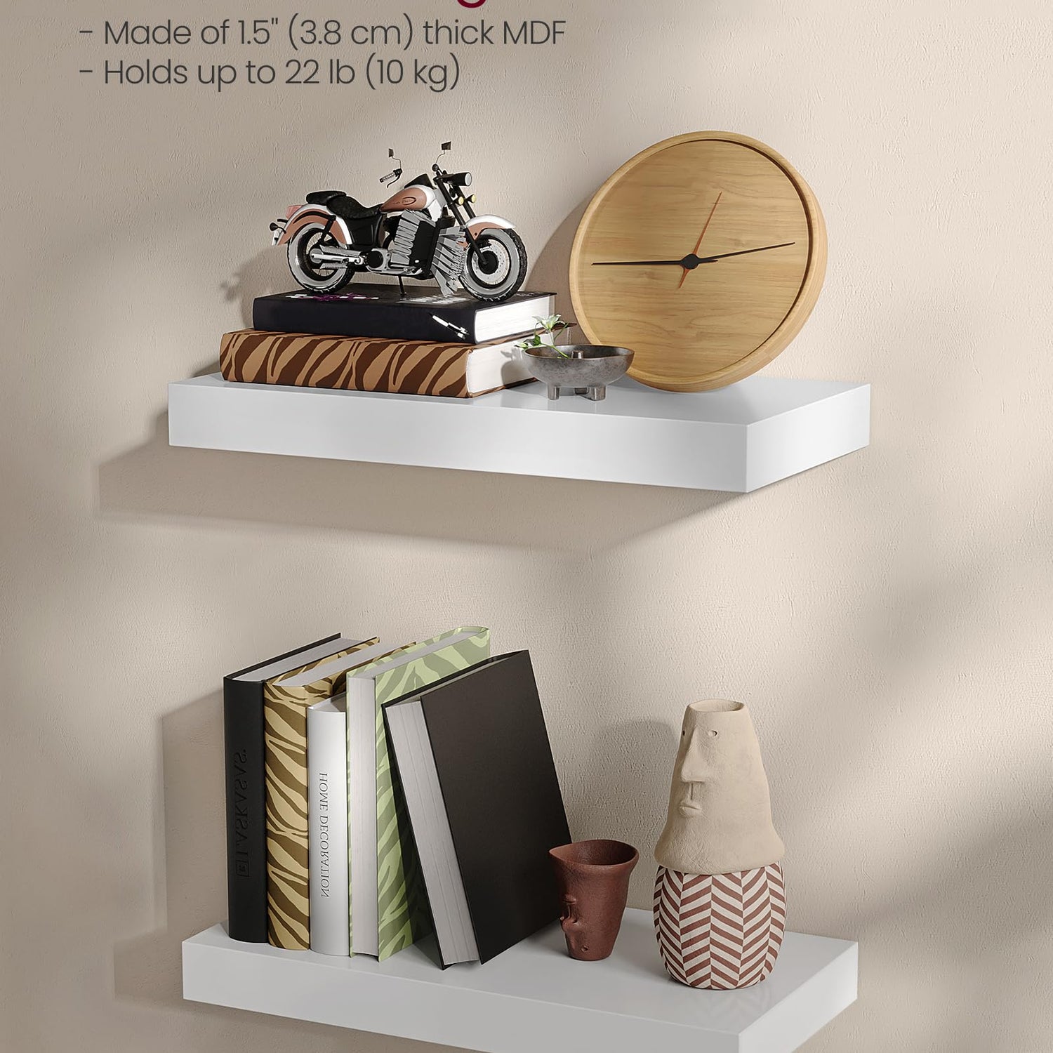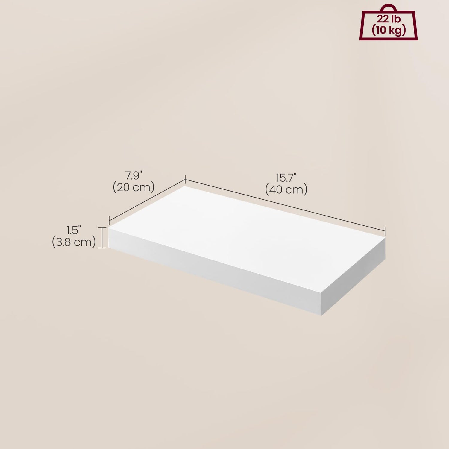 VASAGLE Wall Shelves Set of 2, Floating Shelves, Wall Mounted, 8 x 15.7 x 1.5 Inches, Display Shelves for Picture Frames, Wall Decor, Hanging Shelf for Living Room, Kitchen, White ULWS054W01