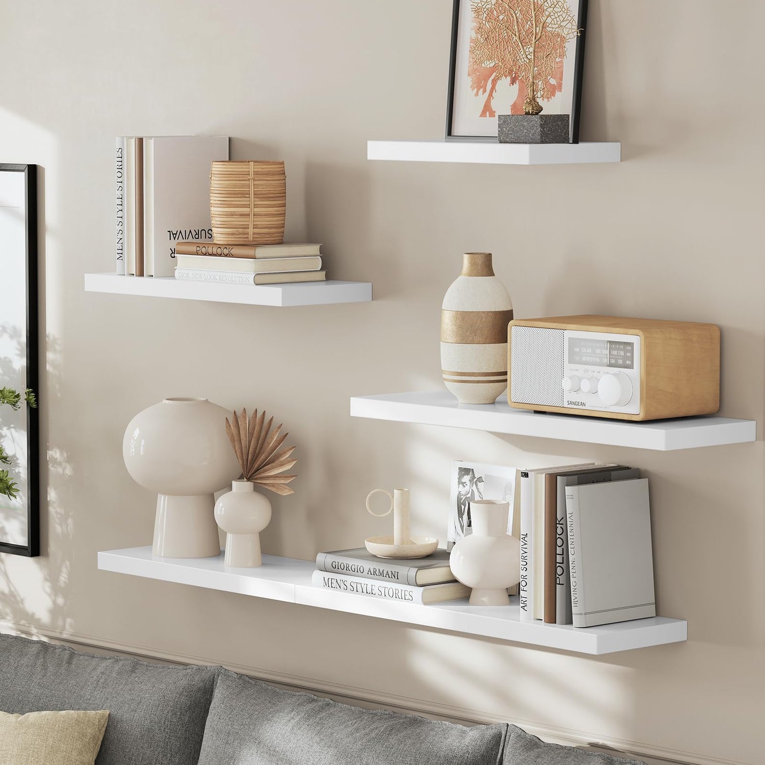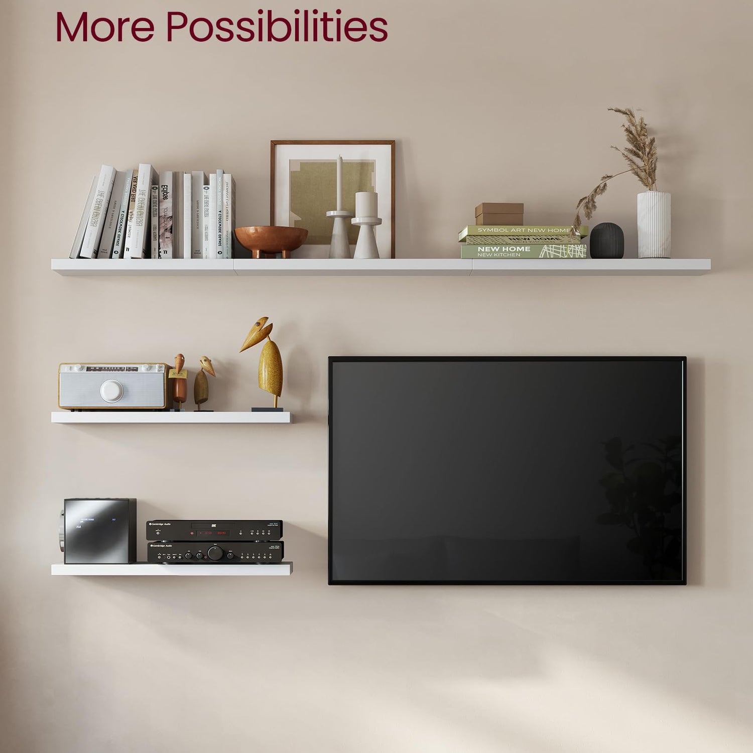 - [Fits Perfectly with Any Aesthetic] With its white surface and wood grain, this wall shelf exudes a touch of sophistication. Wherever it is placed—whether it's the living room, study, bedroom, hallway, or kitchen—it becomes a real eye-catcher